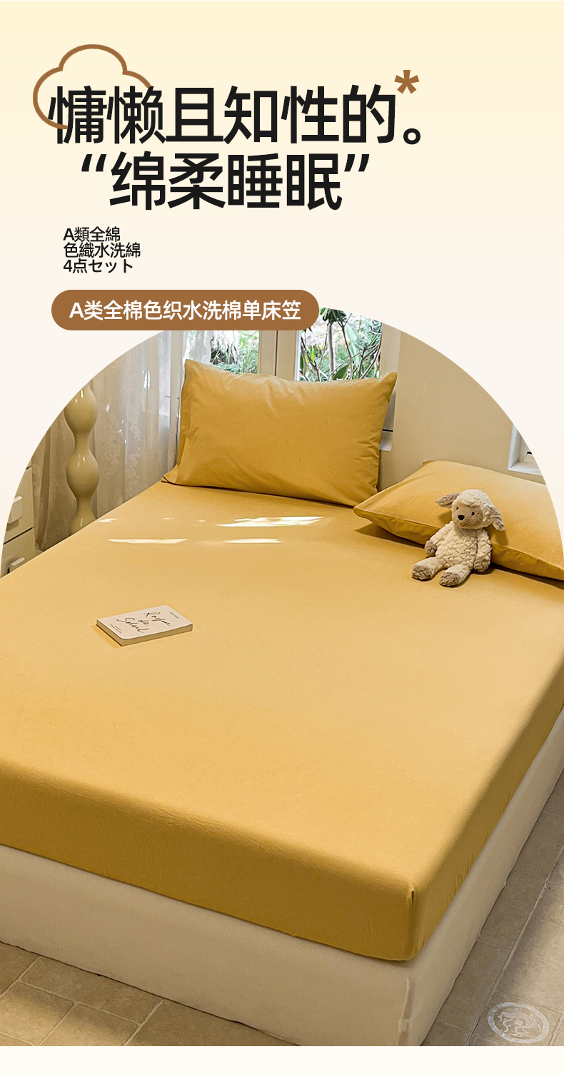 (总)蓝邻家纺 2025新款A类全棉纯棉水洗棉纯色贴标系列四件套-风格二,粉末蓝,高级灰,公主粉,贵族白,焦糖色,柠檬黄,牛仔兰,千黛紫,时尚绿,丝绒绿,小雏菊,星辰灰,优雅紫