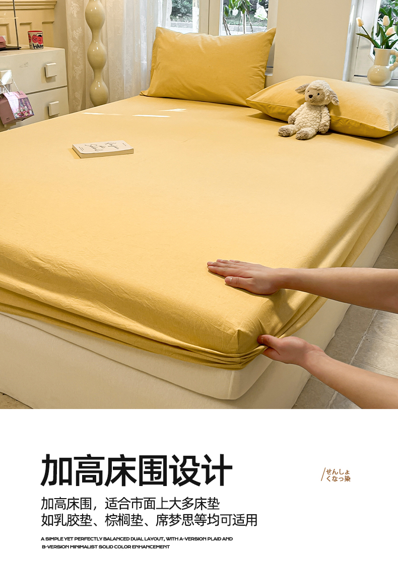 蓝邻 2024新款全棉无印风全棉色织水洗棉单品床笠 千鸟格-黄
