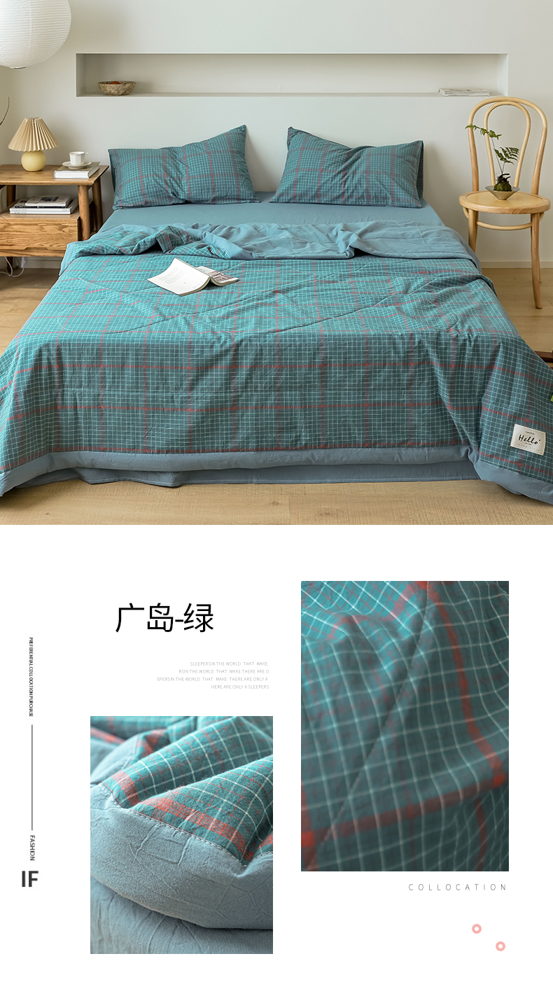 • 91家纺网 家纺一手货源 找家纺 【直播爆款】24新品A类抗菌全棉色织水洗棉夏被四件套夏凉被空调被-广岛-绿