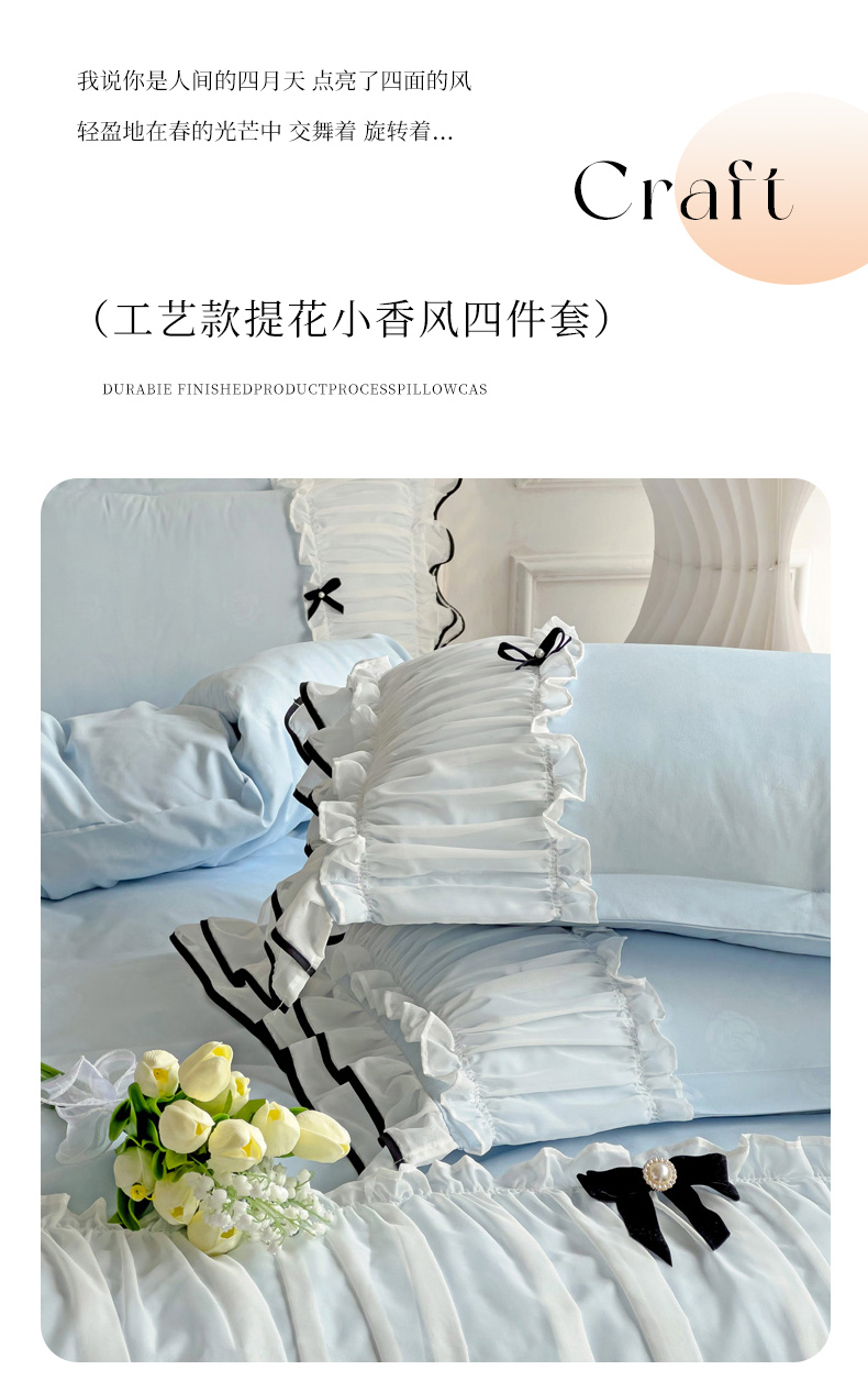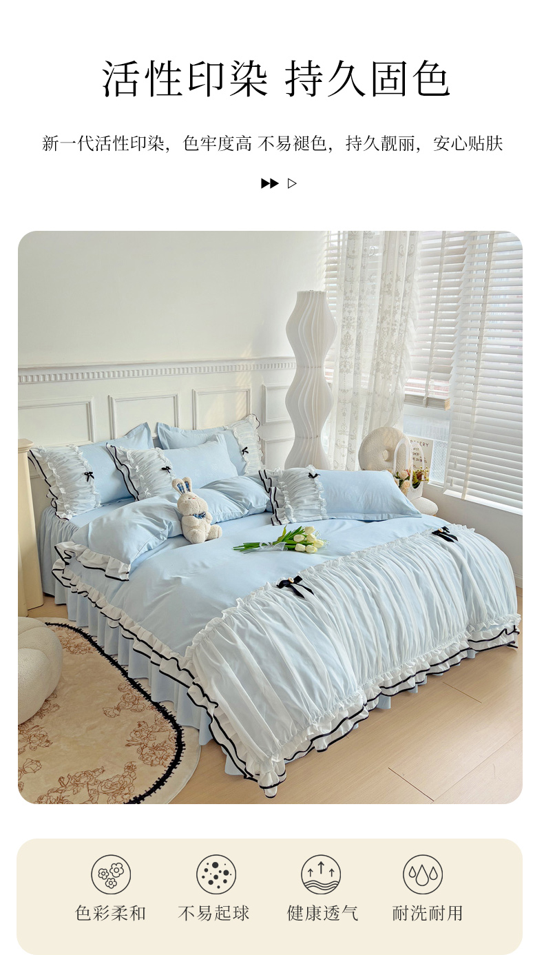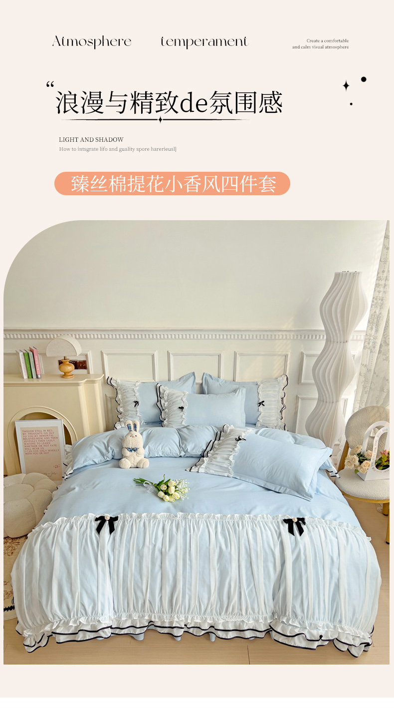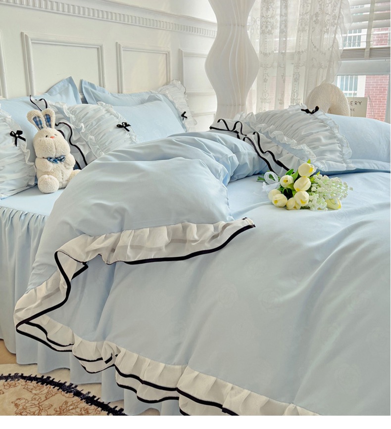 当前位置: 91家纺网 > 商品网购 > 床品套件 > 四件套 > 化纤活性四件套 > 包小包 2024新款臻丝棉小香风提花双层花边韩版公主风四件套(提供买家秀) 小香风-蓝色