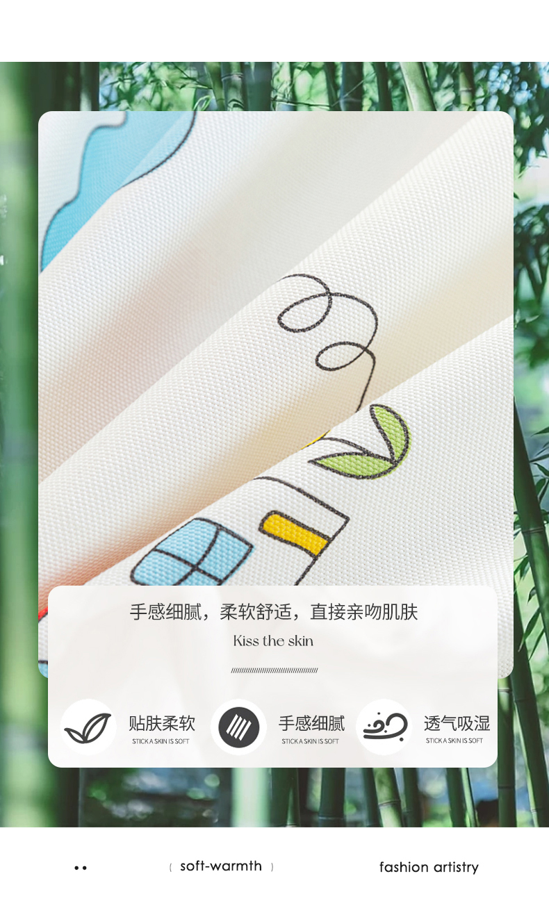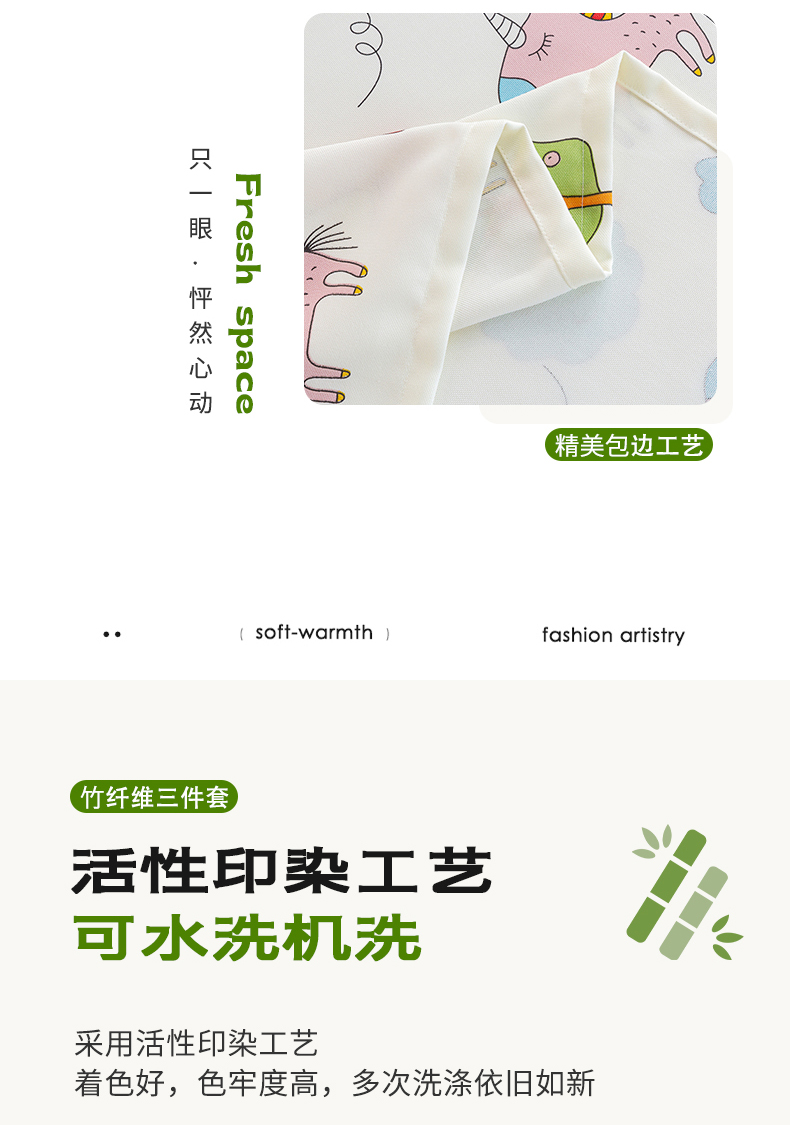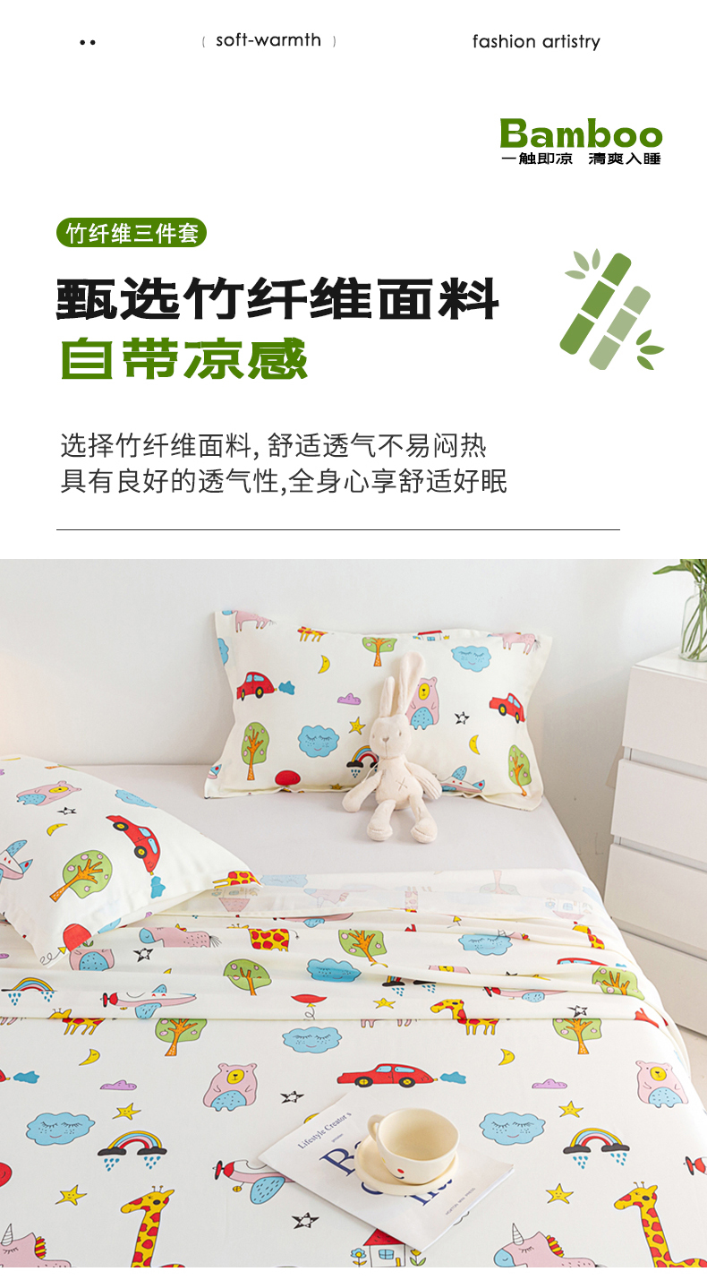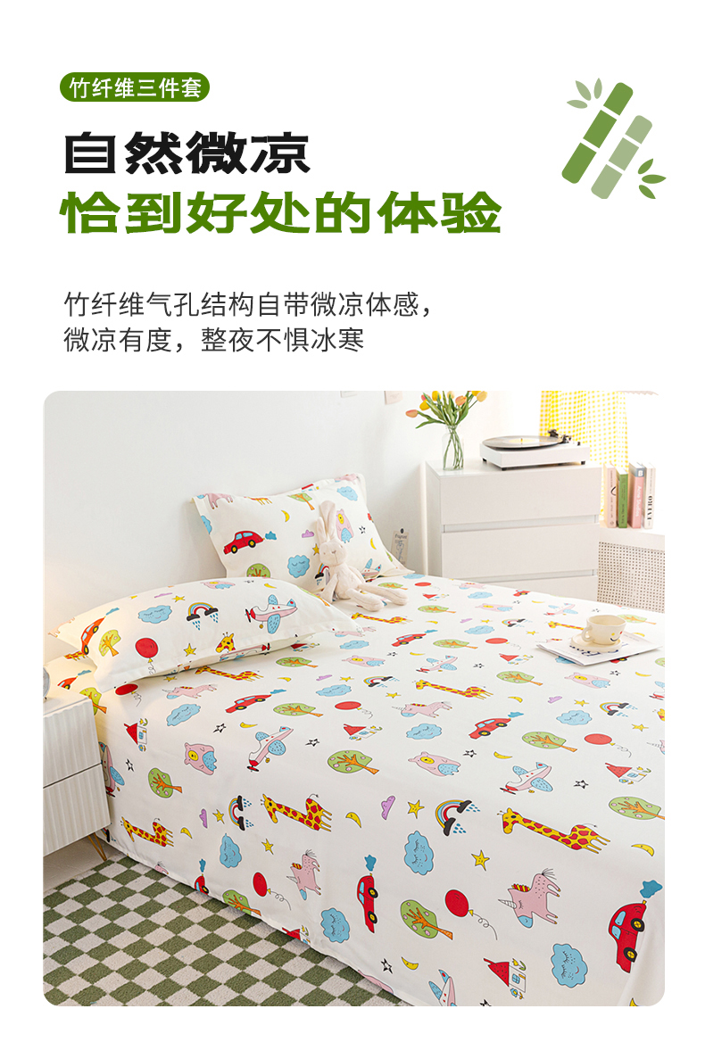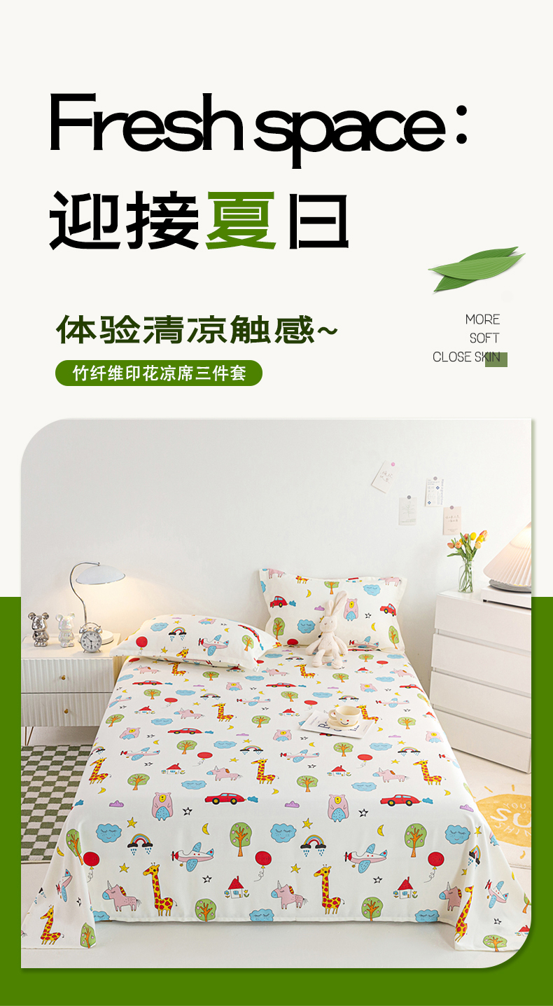商品名称:金泰莱 2025新款印花竹纤维凉席三件套软凉席竹席盖毯子 动物乐园-米