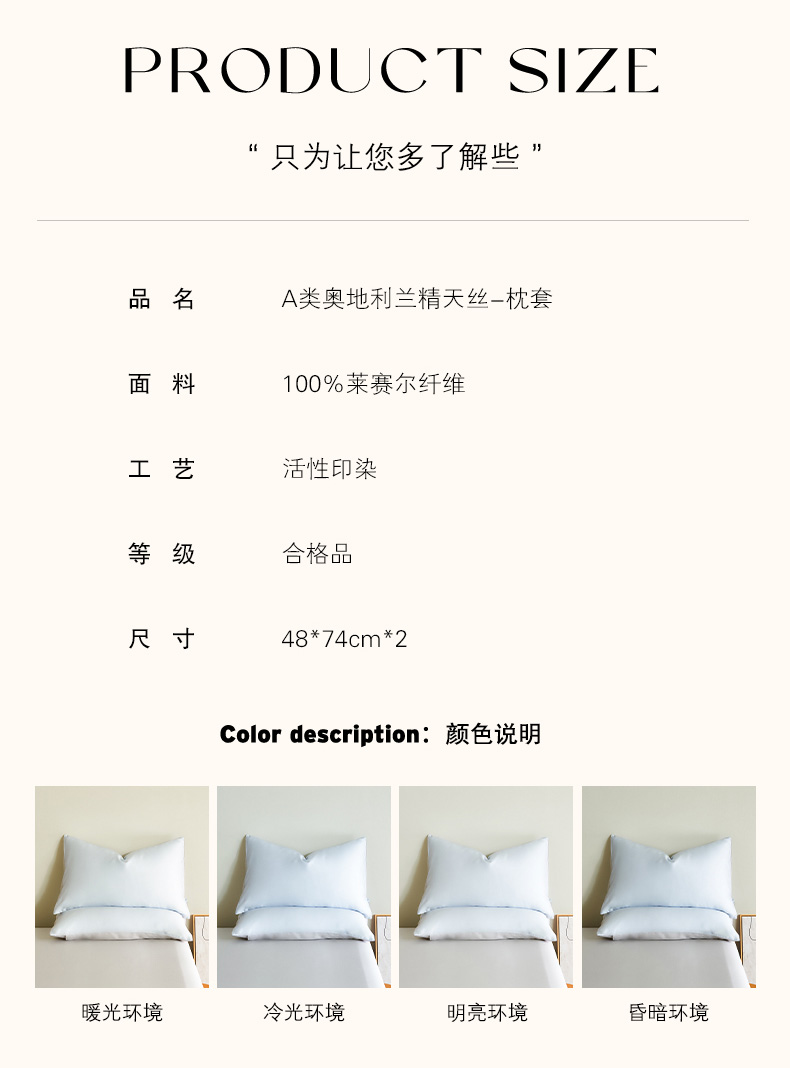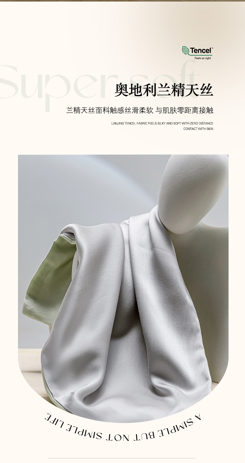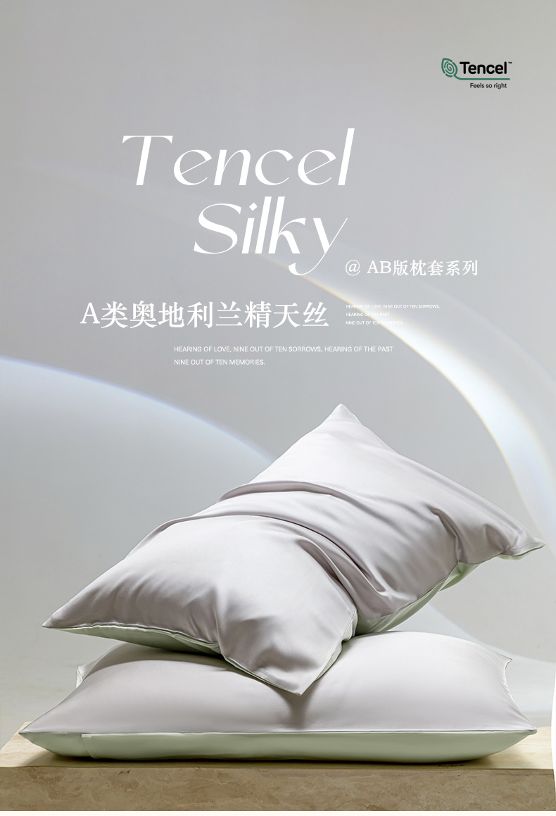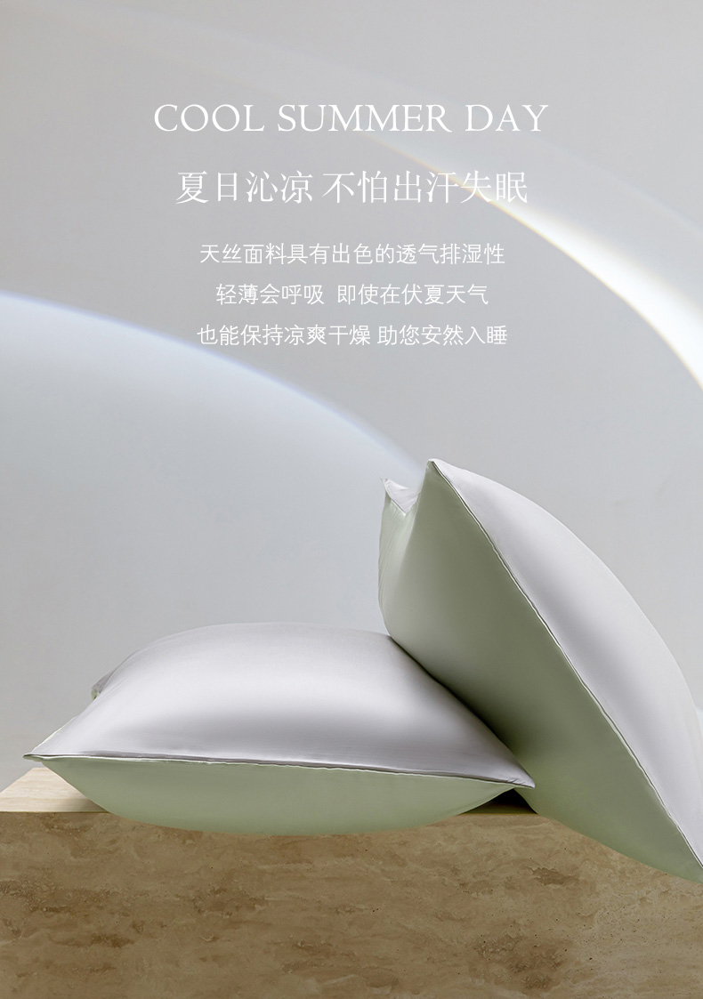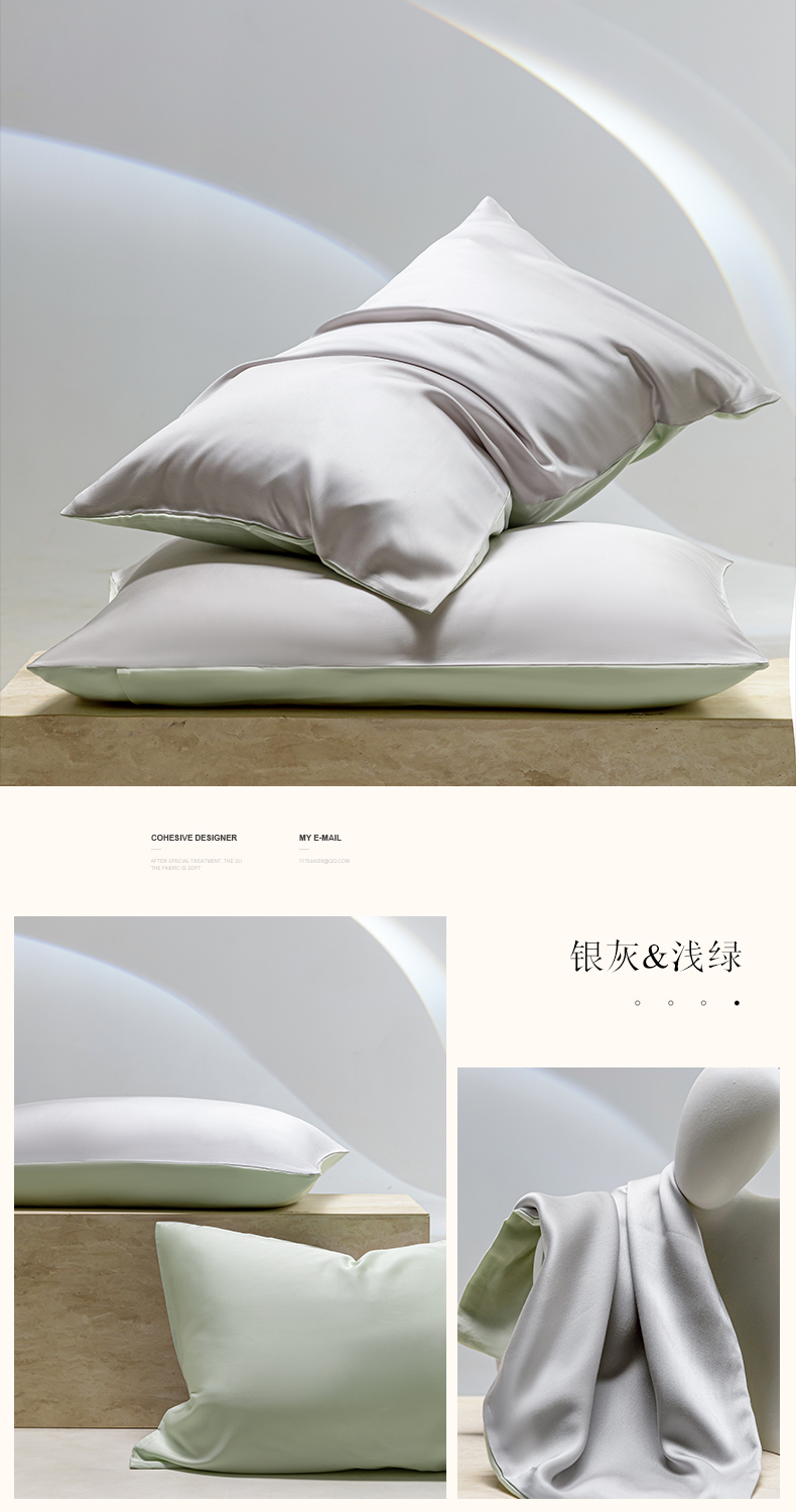 商品名称:云栖家居 202460支A类兰精天丝系列单品枕套(风格一) 银灰+浅绿