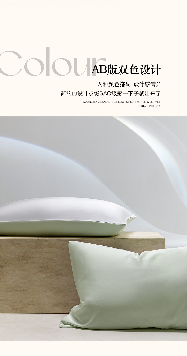云栖家居 202460支A类兰精天丝系列单品枕套(风格一) 银灰+浅绿