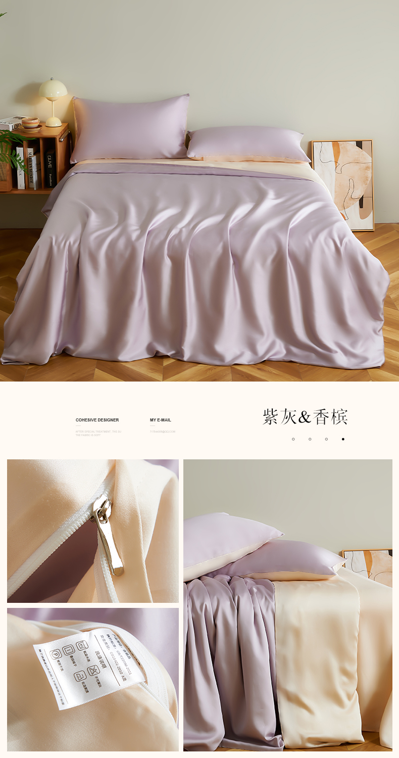 商品名称:云栖家居 202460支A类兰精天丝系列单品被套(风格二) 紫灰&香槟
