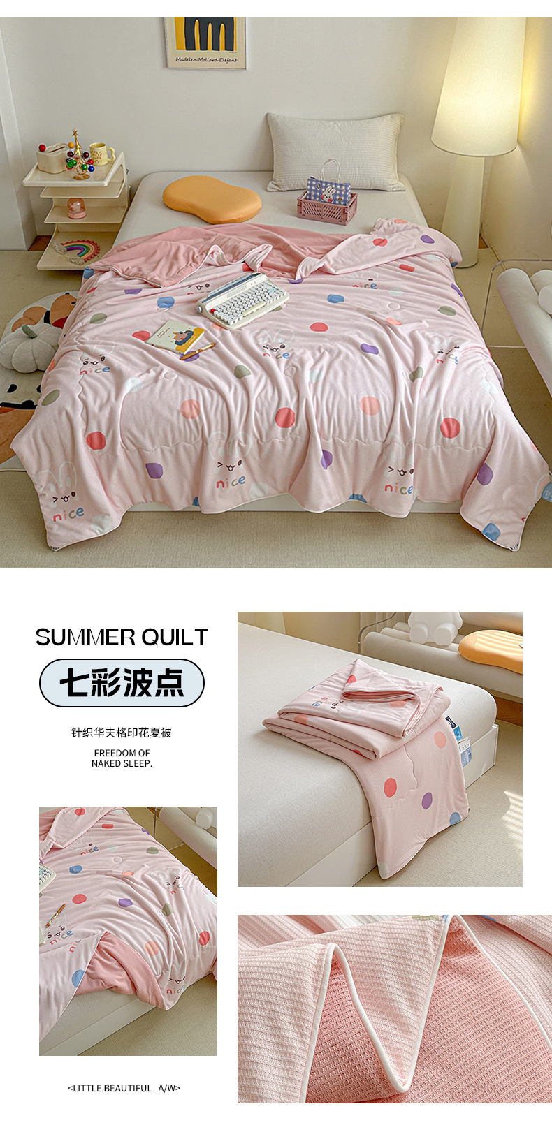 商品名称:源舜家纺 2025新款印花系列针织华夫格夏被 七彩波点