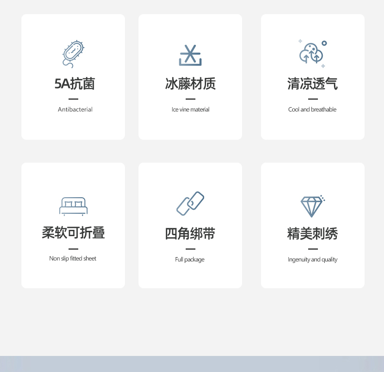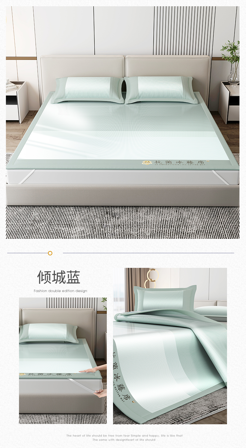 商品名称:鑫姿席业 2025新款渐变款亲肤舒适5A抗菌冰丝席 倾城蓝(床笠款)