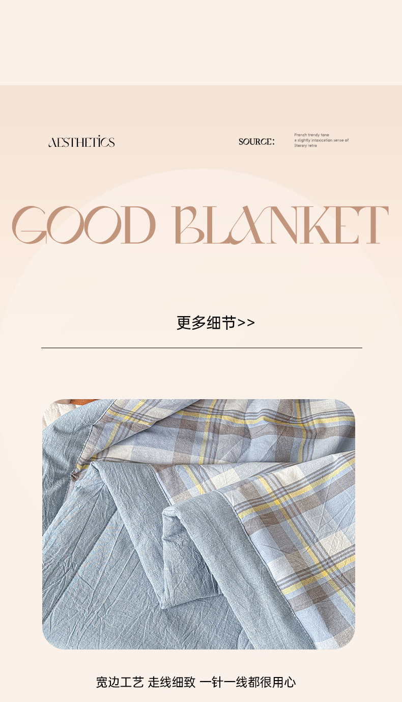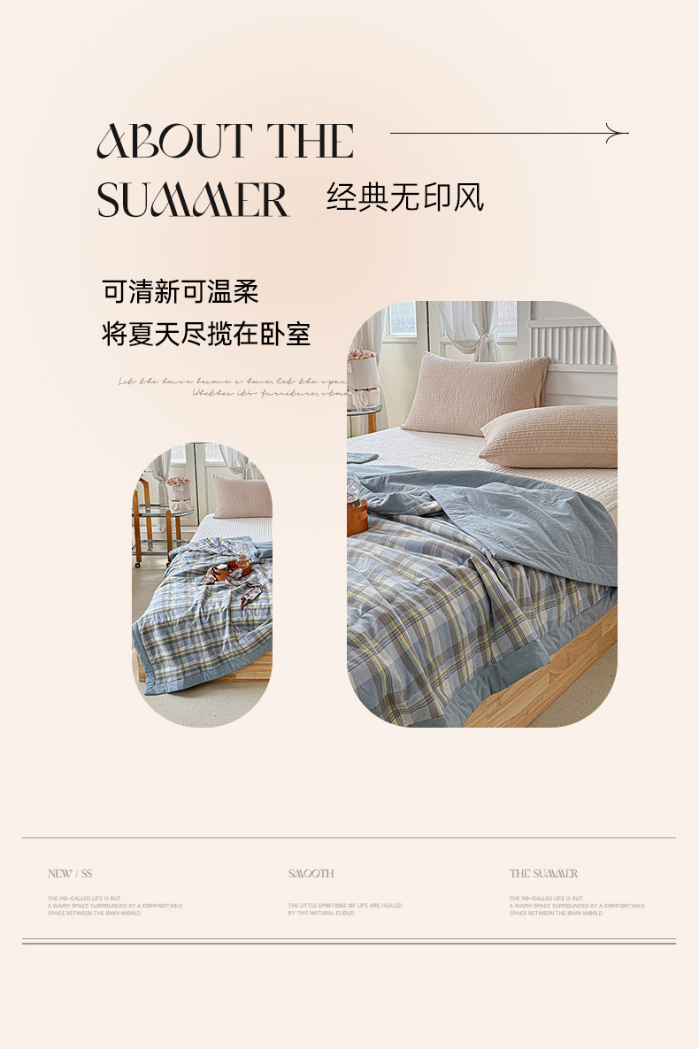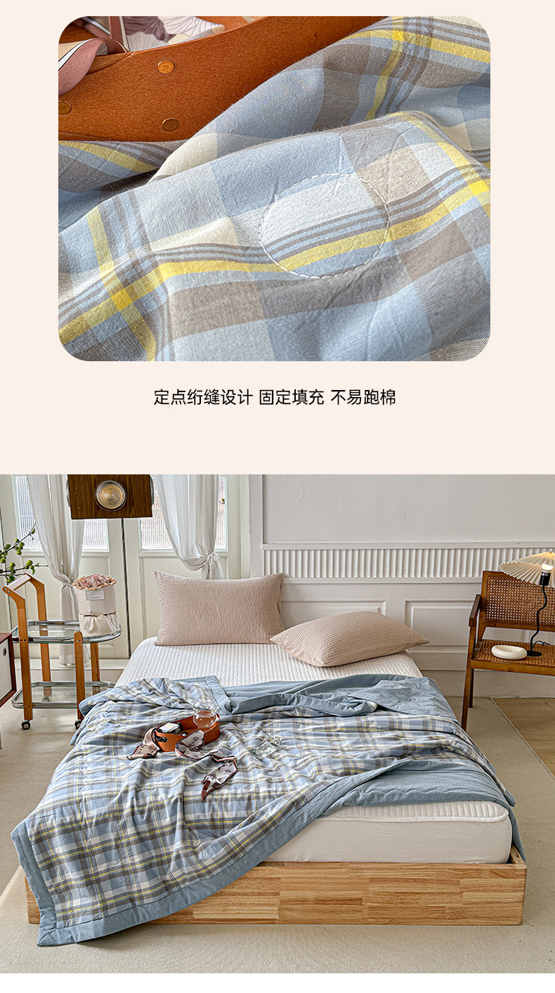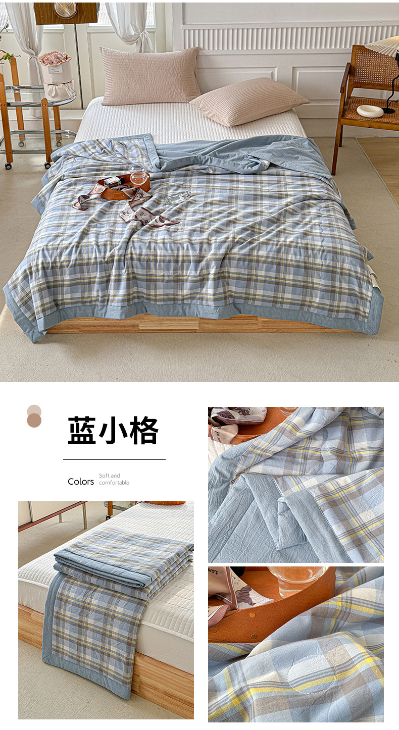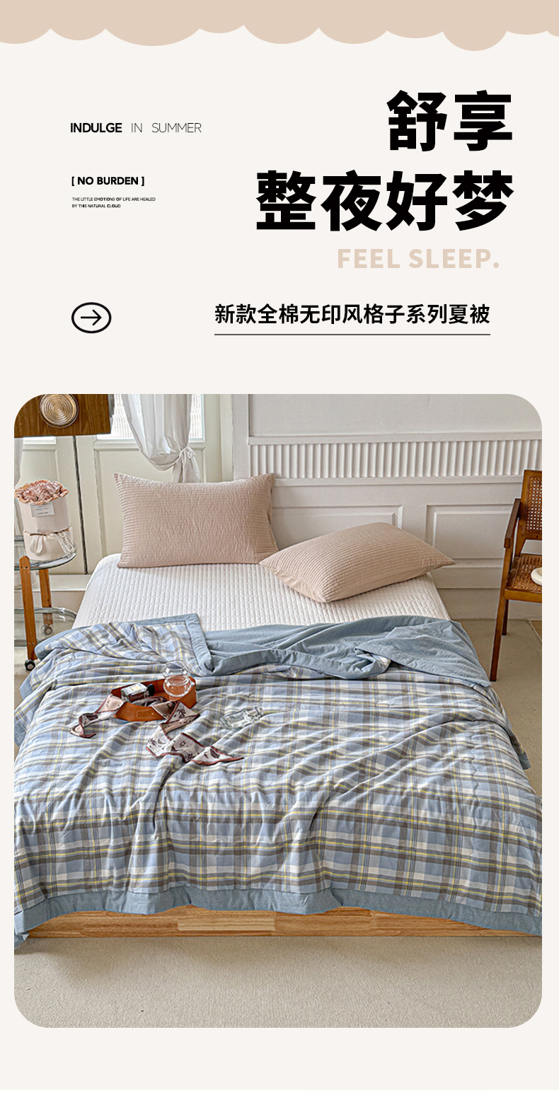 源舜家纺 2025新款全棉色织无印夏被 蓝小格