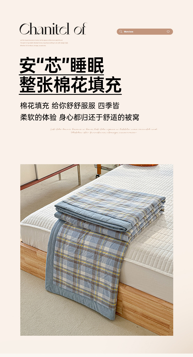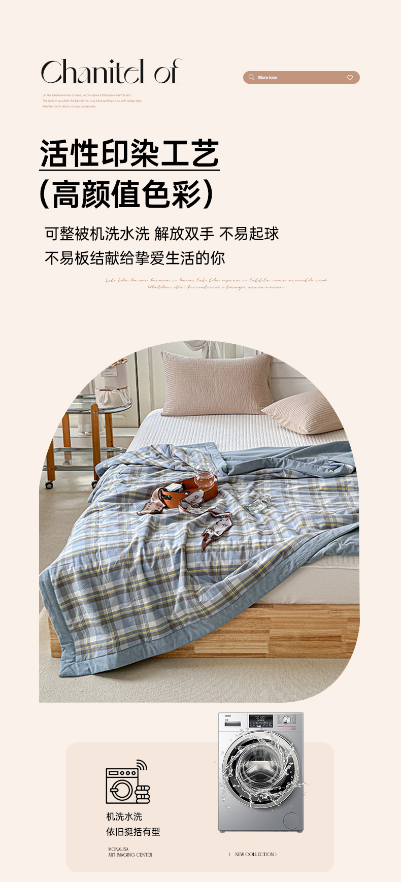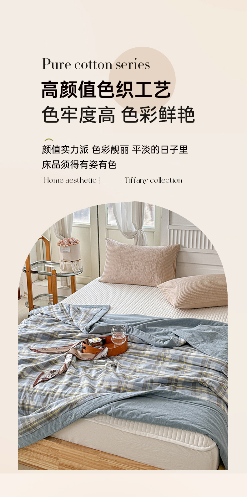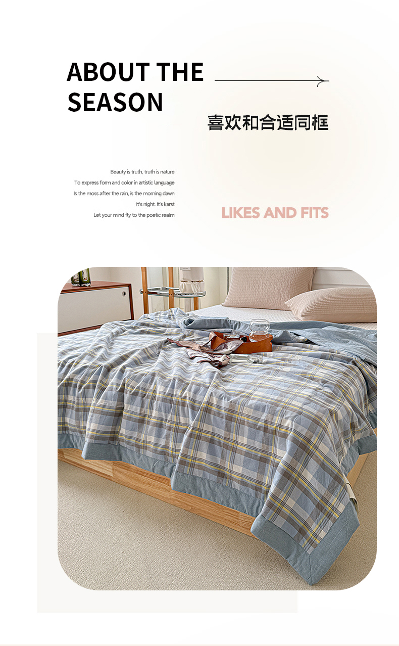 源舜家纺 2025新款全棉色织无印夏被 蓝小格