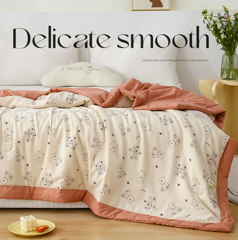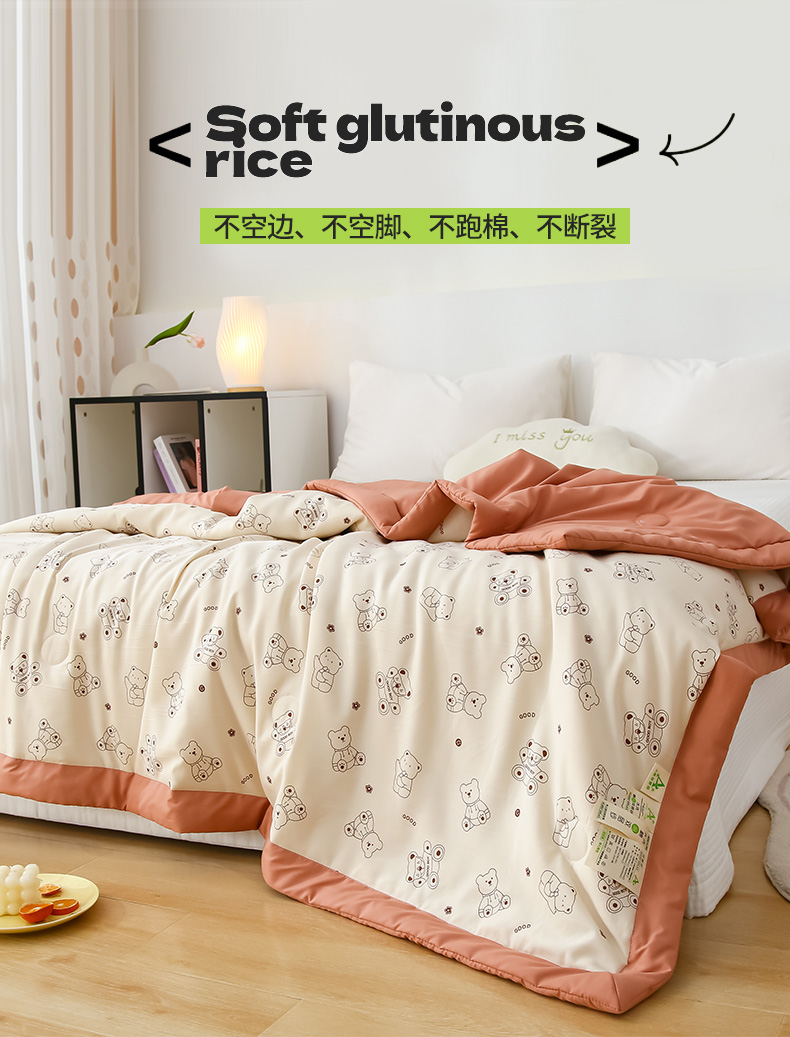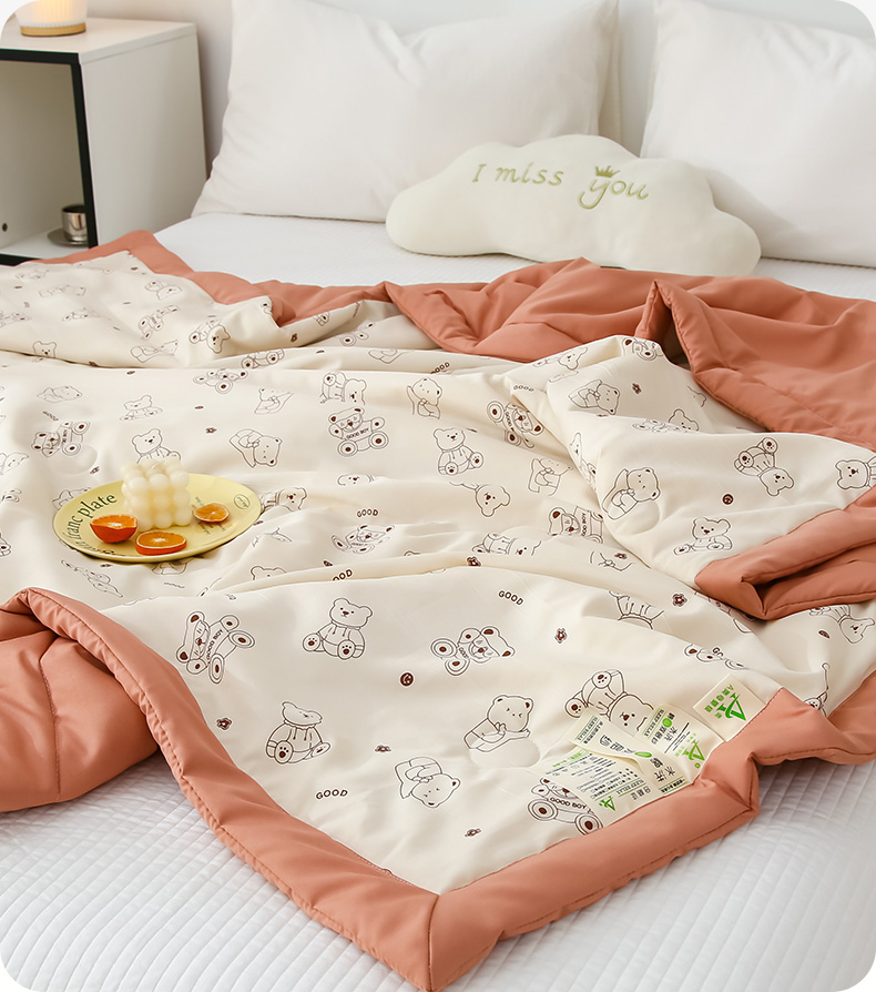 江山被业 2025新款水洗棉麻双层纱大豆夏凉被 小熊嘟嘟