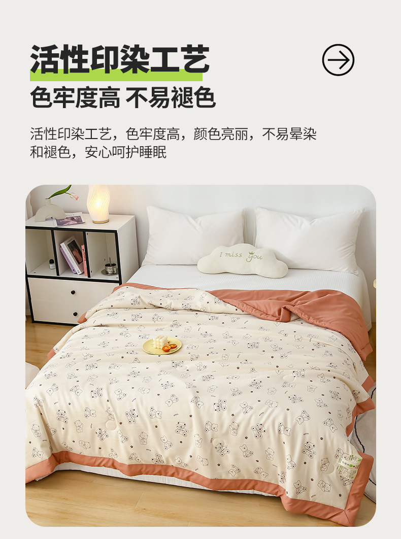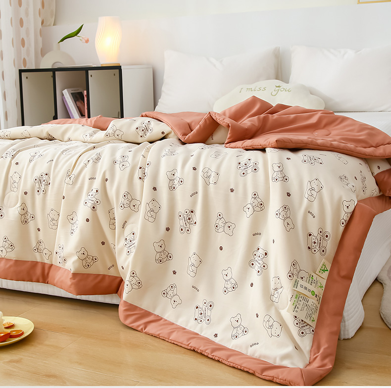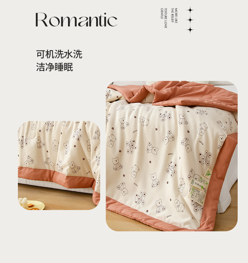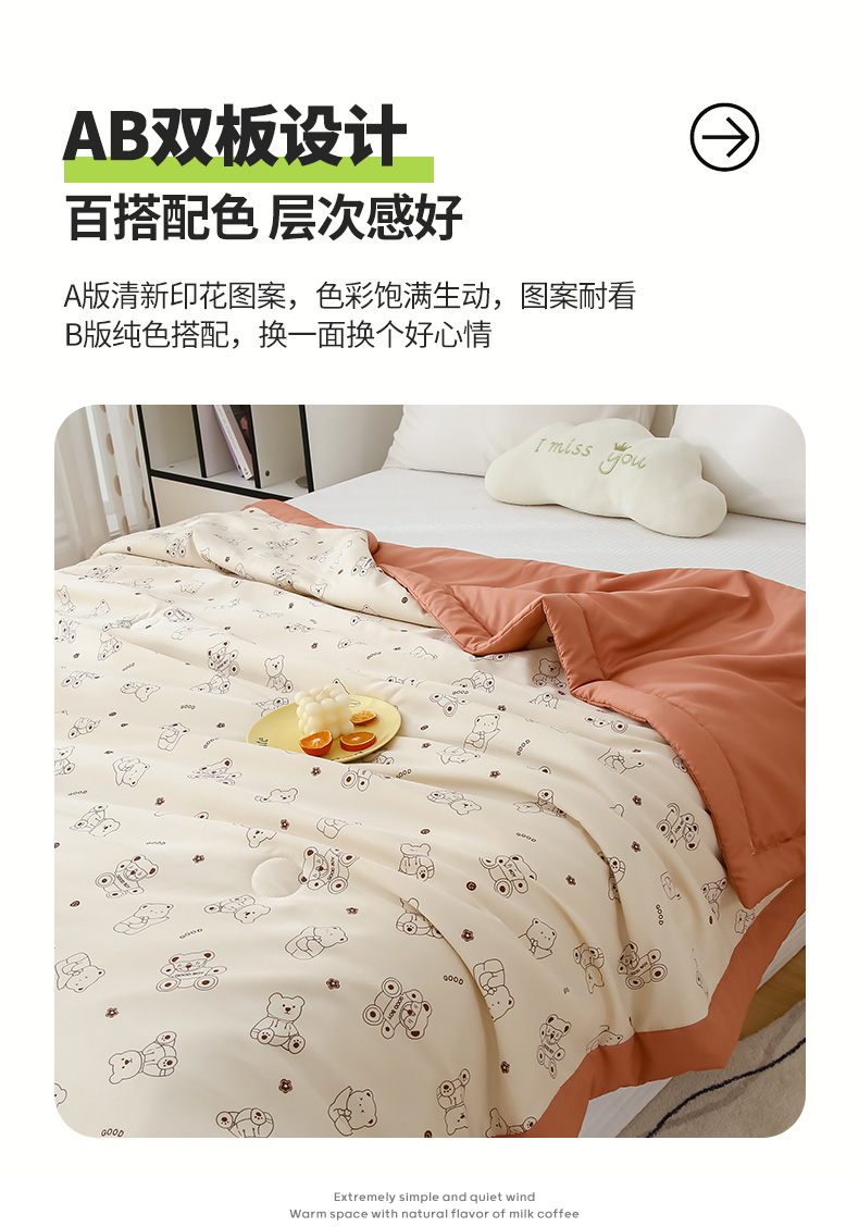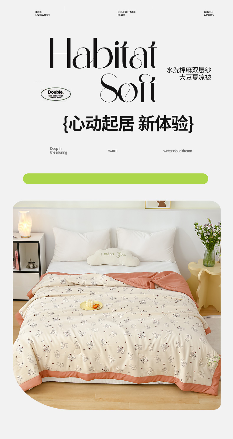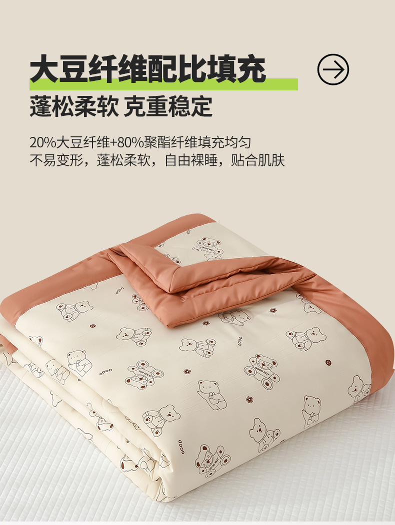 商品名称:江山被业 2025新款水洗棉麻双层纱大豆夏凉被 小熊嘟嘟