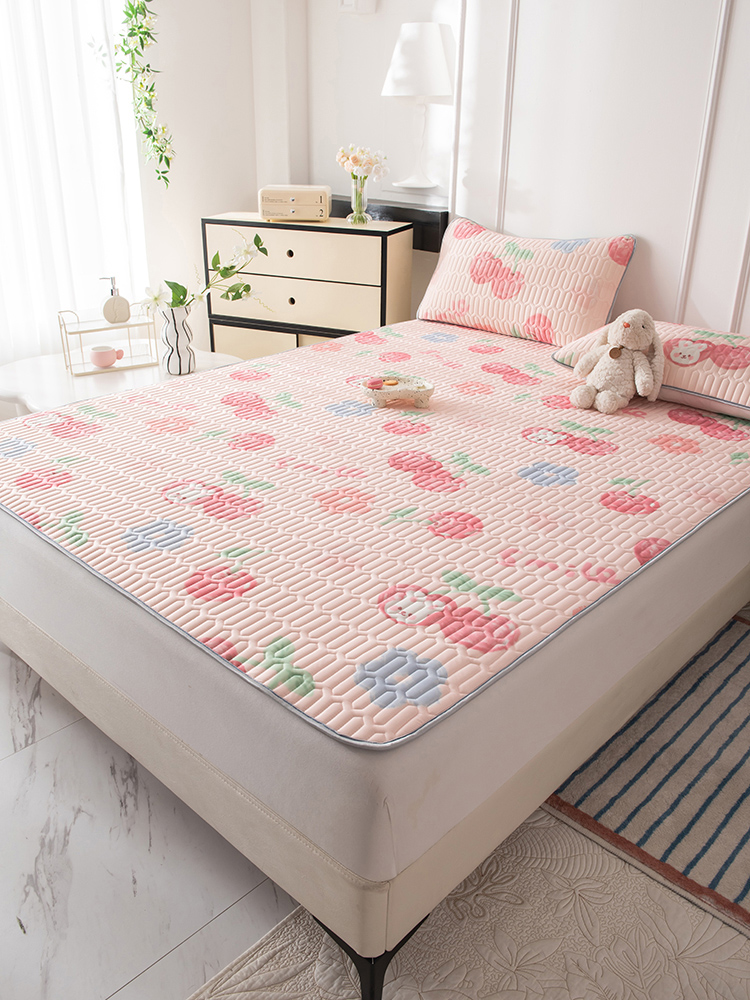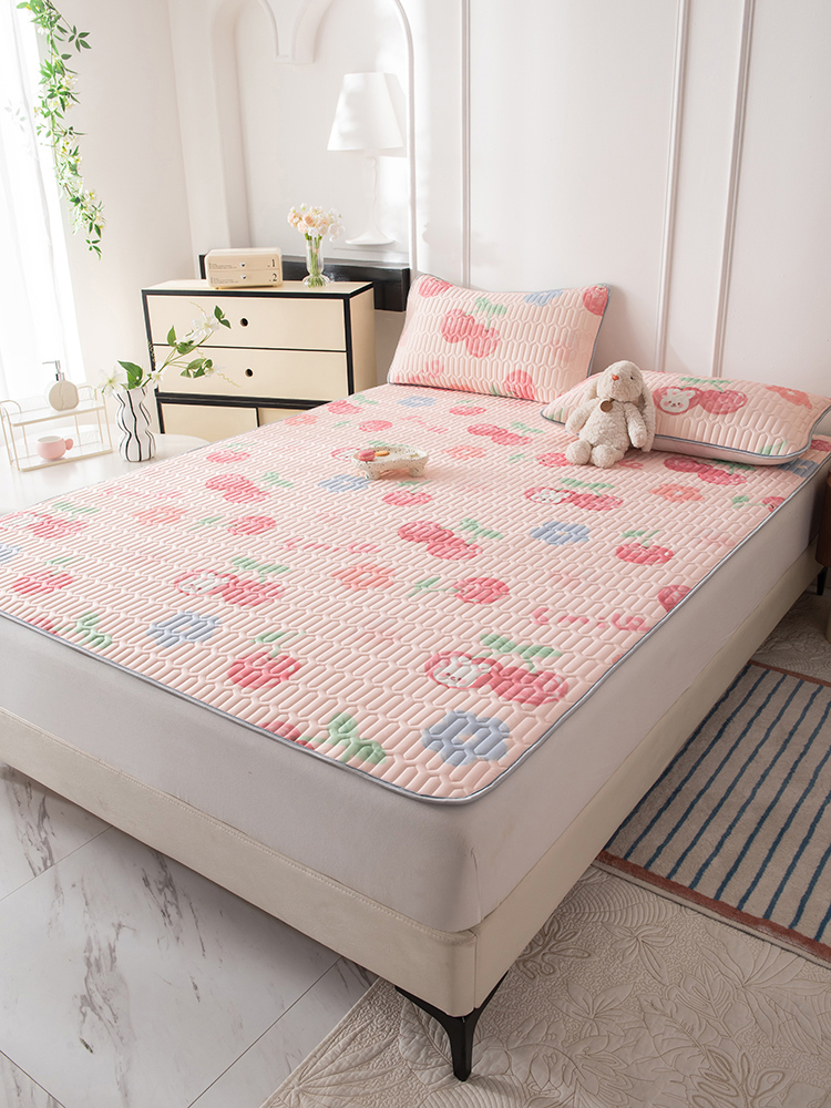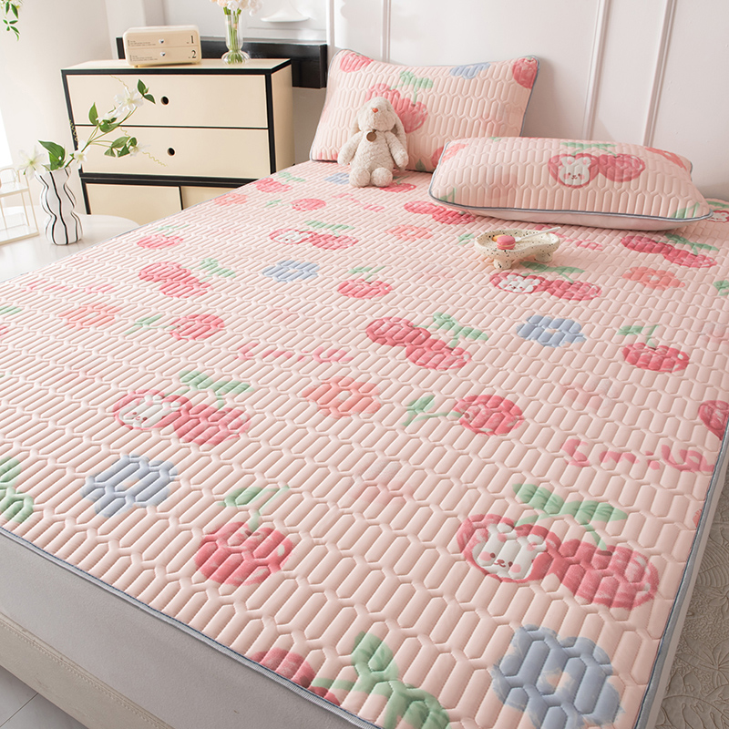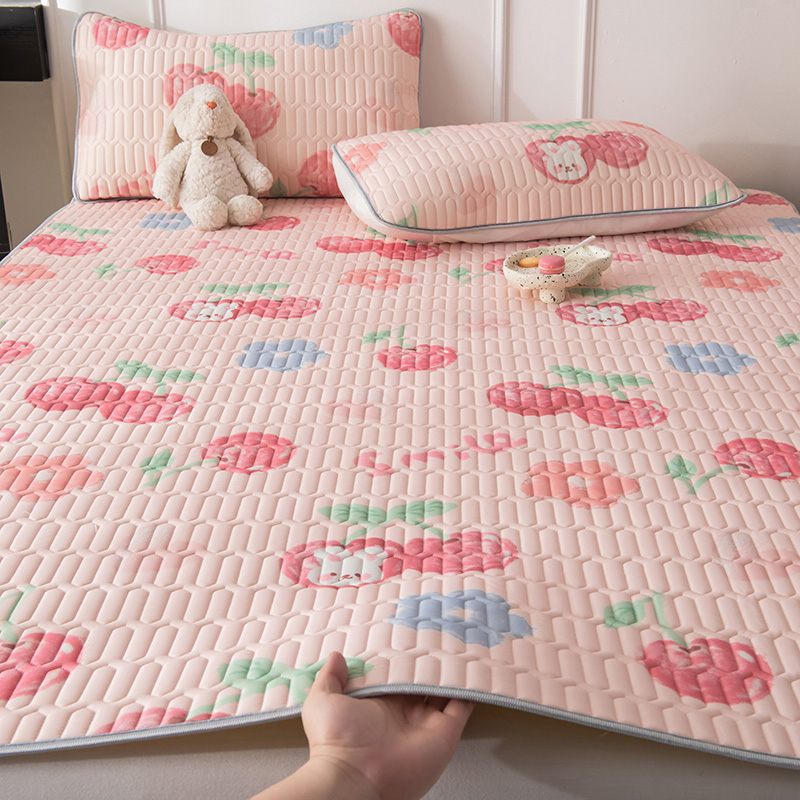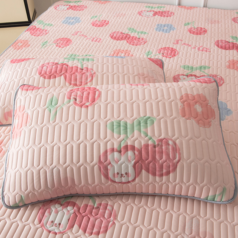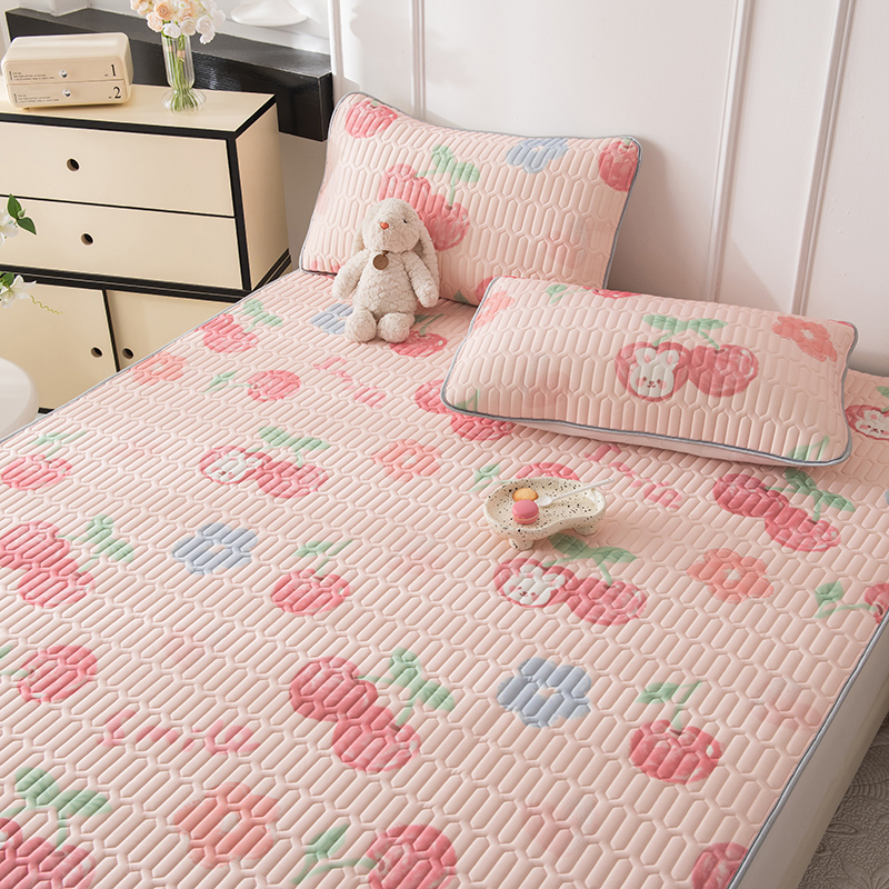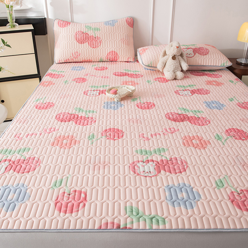 佳梦达 新款0.4厚度纯色凉感丝乳胶凉席三件套(风格二) 樱桃萌兔