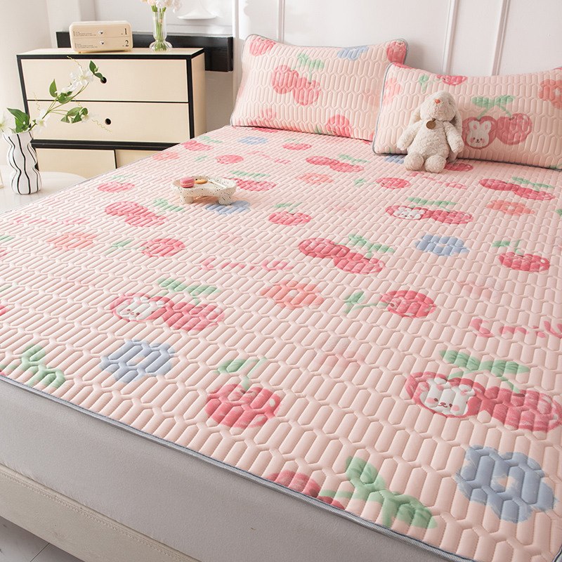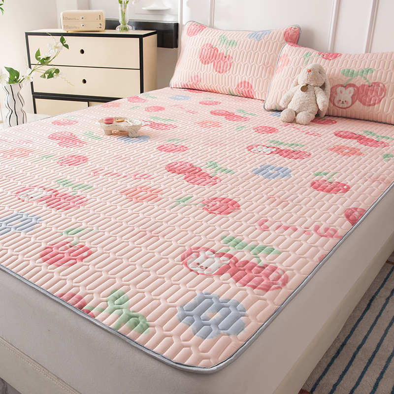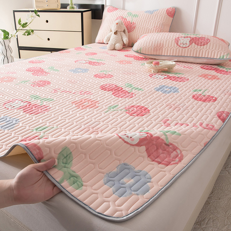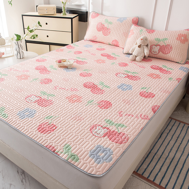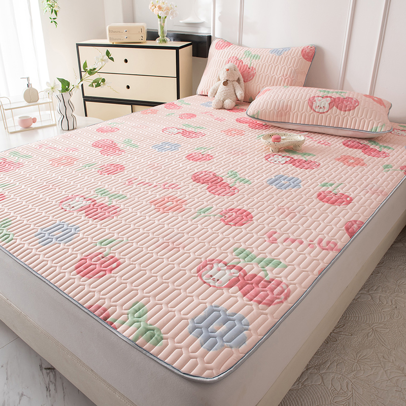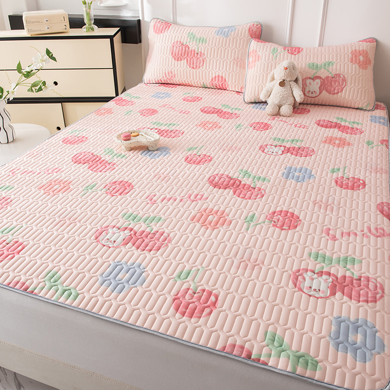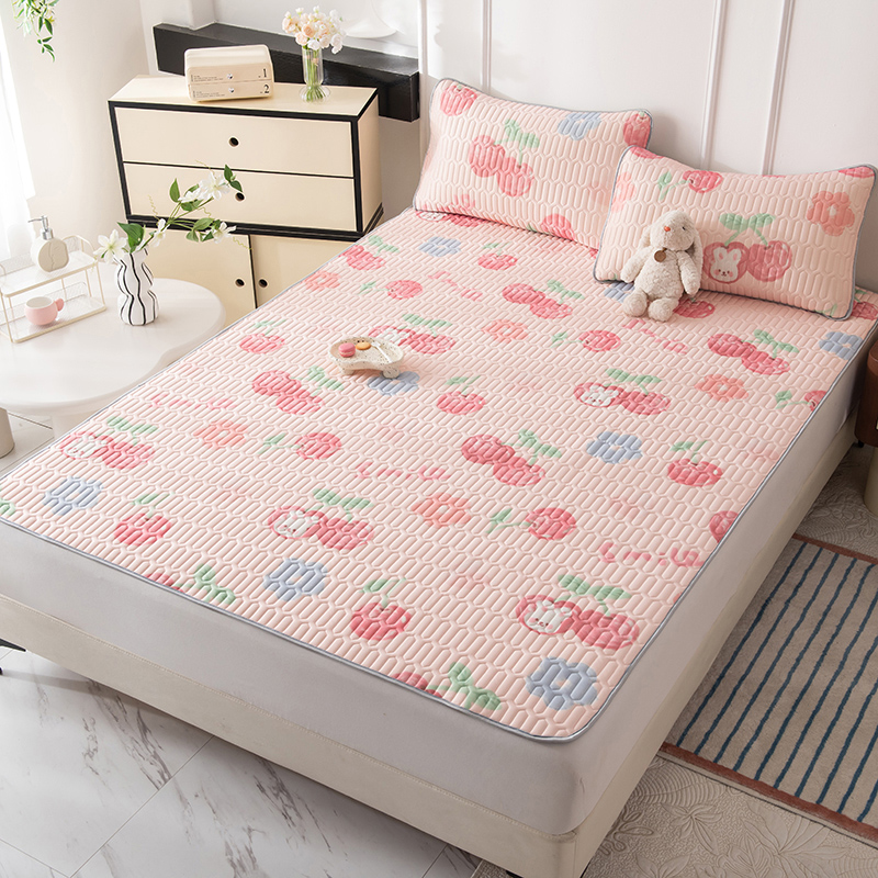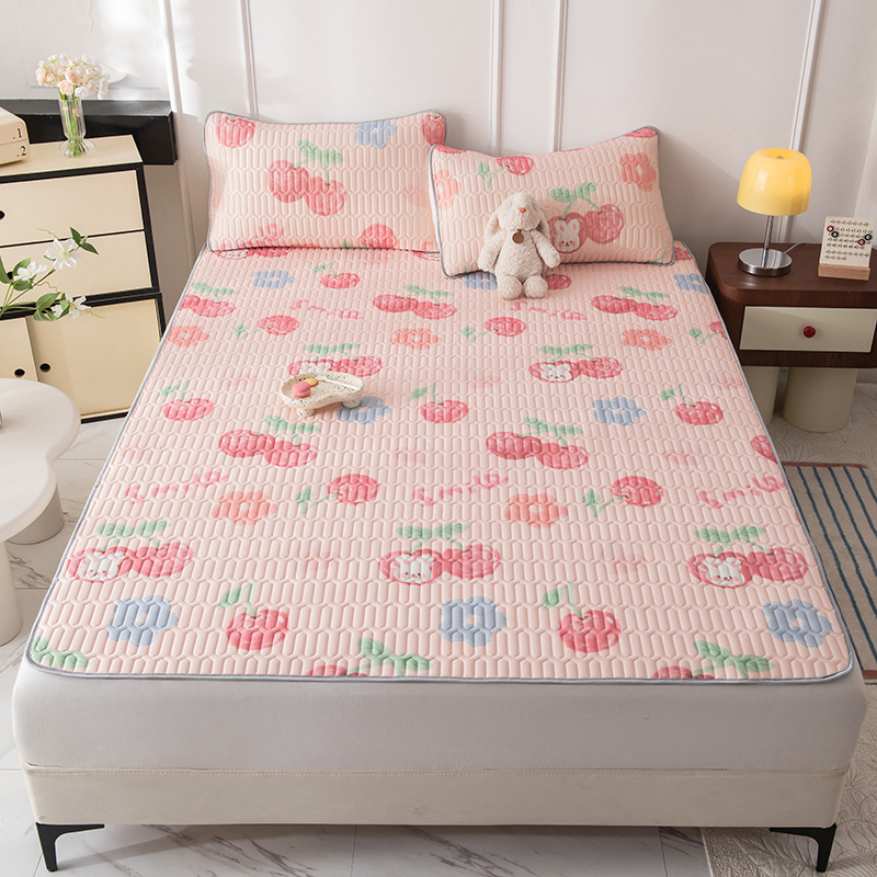 佳梦达 新款0.4厚度纯色凉感丝乳胶凉席三件套(风格二) 樱桃萌兔