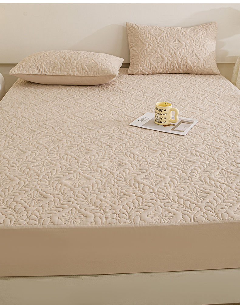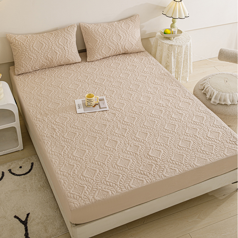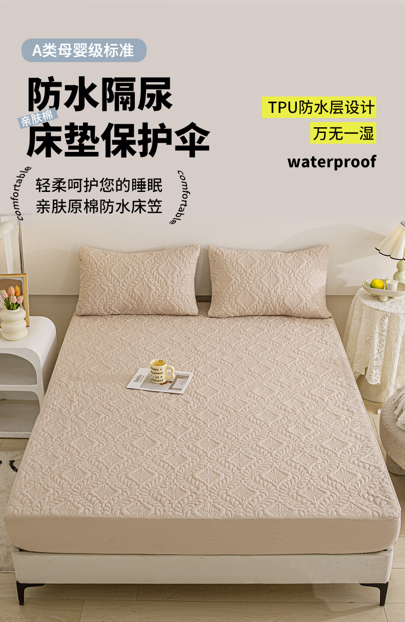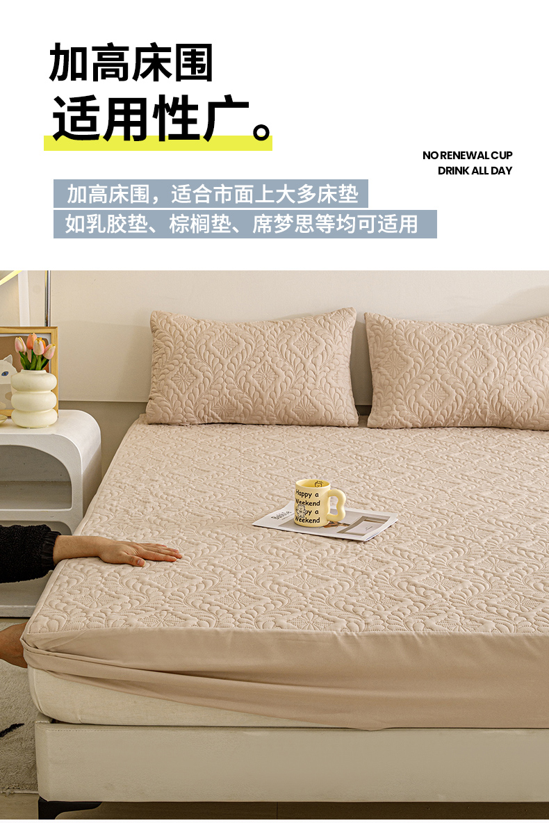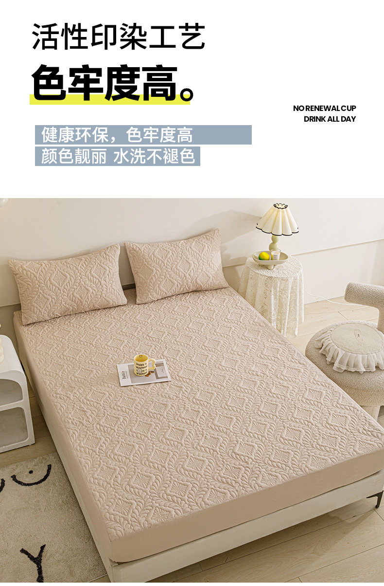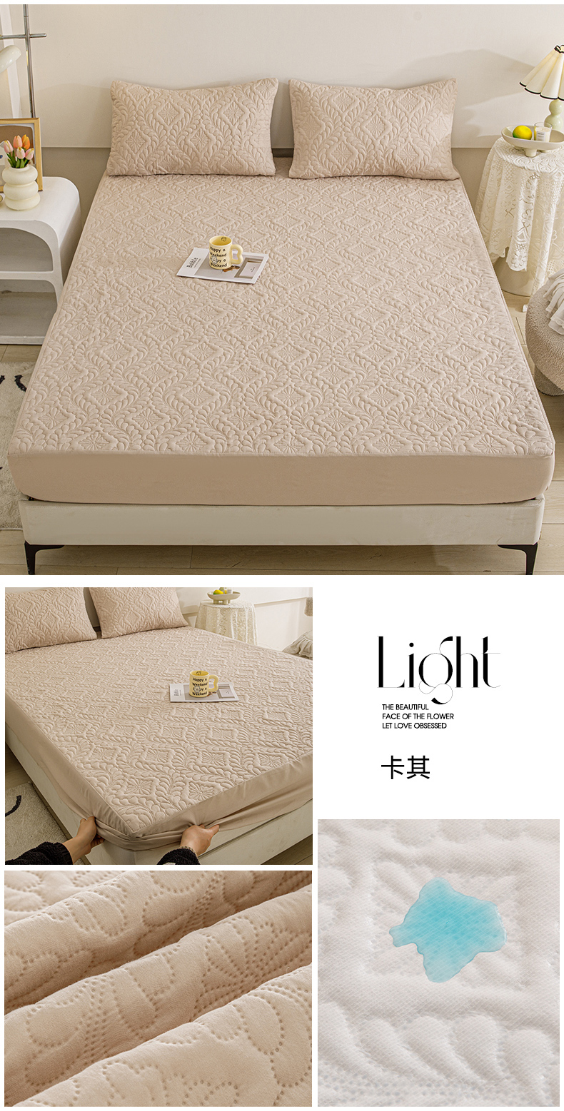 • 91家纺网 家纺一手货源 找家纺 恒尚居 2024新款凤尾花磨毛夹棉防水床笠【支持定做】 卡其
