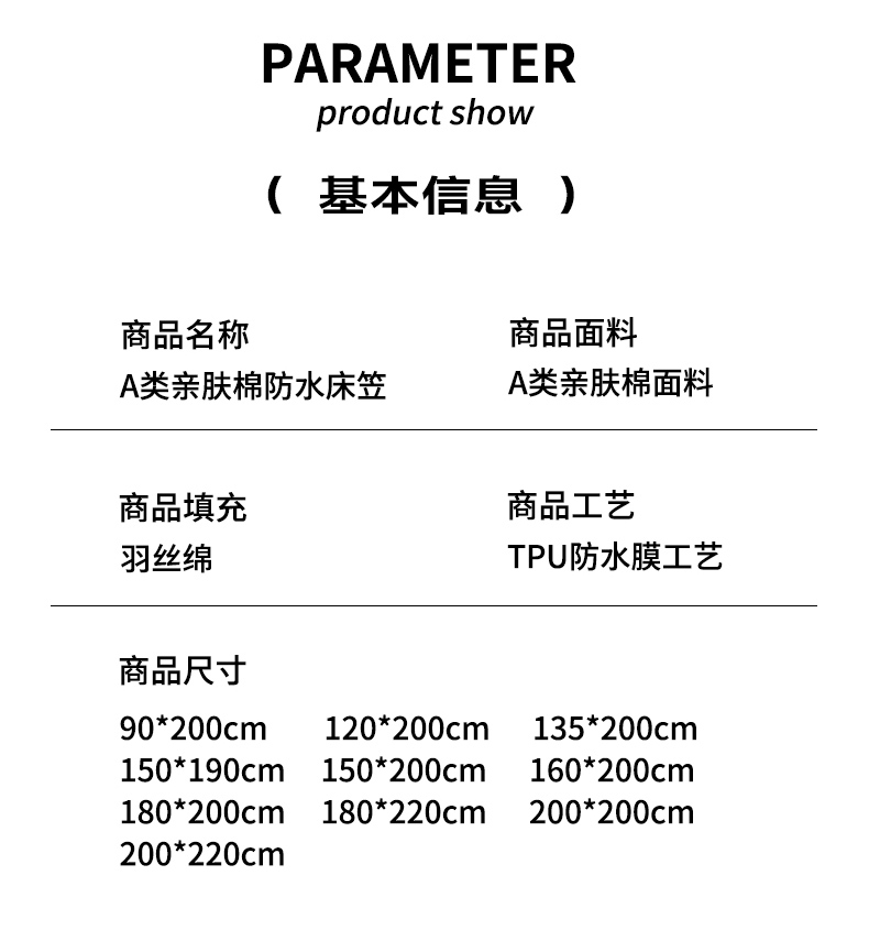[{"sp_id":11,"sp_name":"\u989c\u8272\u5206\u7c7b","sp_format":2,"sp_list":[{"sp_value_id":671,"sp_value_name":"\u5361\u5176","sp_value_image":{"id":999,"path":"https:\/\/img3.91jf.com\/ghelp\/2024\/20240410\/29e43cb1-c5ed-4c78-bfa4-8616c753007d20240410171457667.jpg_30_30.jpg"},"sp_value_video":{"id":0,"img":"","path":"","time":0,"download_num":0,"play_num":0},"price":"21.00","storage":500,"weight":"0.800","is_check_weight":0,"plus_price":"","sp_sort":28}]},{"sp_id":24,"sp_name":"\u5e8a\u5355\/\u5e8a\u7b20\u5c3a\u5bf8","sp_format":1,"sp_list":[{"sp_value_id":213,"sp_value_name":"90*200cm","sp_value_image":{"id":0,"path":""},"sp_value_video":{"id":0,"img":"","path":"","time":0,"download_num":0,"play_num":0},"price":"21.00","storage":0,"weight":"0.800","is_check_weight":0,"plus_price":"","sp_sort":5},{"sp_value_id":214,"sp_value_name":"120*200cm","sp_value_image":{"id":0,"path":""},"sp_value_video":{"id":0,"img":"","path":"","time":0,"download_num":0,"play_num":0},"price":"28.00","storage":0,"weight":"0.900","is_check_weight":0,"plus_price":"","sp_sort":6},{"sp_value_id":215,"sp_value_name":"135*200cm","sp_value_image":{"id":0,"path":""},"sp_value_video":{"id":0,"img":"","path":"","time":0,"download_num":0,"play_num":0},"price":"31.00","storage":0,"weight":"1.000","is_check_weight":0,"plus_price":"","sp_sort":7},{"sp_value_id":217,"sp_value_name":"150*190cm","sp_value_image":{"id":0,"path":""},"sp_value_video":{"id":0,"img":"","path":"","time":0,"download_num":0,"play_num":0},"price":"31.00","storage":100,"weight":"1.200","is_check_weight":0,"plus_price":"","sp_sort":9},{"sp_value_id":218,"sp_value_name":"150*200cm","sp_value_image":{"id":0,"path":""},"sp_value_video":{"id":0,"img":"","path":"","time":0,"download_num":0,"play_num":0},"price":"31.00","storage":100,"weight":"1.300","is_check_weight":0,"plus_price":"","sp_sort":10},{"sp_value_id":219,"sp_value_name":"160*200cm","sp_value_image":{"id":0,"path":""},"sp_value_video":{"id":0,"img":"","path":"","time":0,"download_num":0,"play_num":0},"price":"34.00","storage":0,"weight":"1.400","is_check_weight":0,"plus_price":"","sp_sort":11},{"sp_value_id":220,"sp_value_name":"180*200cm","sp_value_image":{"id":0,"path":""},"sp_value_video":{"id":0,"img":"","path":"","time":0,"download_num":0,"play_num":0},"price":"34.00","storage":100,"weight":"1.500","is_check_weight":0,"plus_price":"","sp_sort":12},{"sp_value_id":221,"sp_value_name":"180*220cm","sp_value_image":{"id":0,"path":""},"sp_value_video":{"id":0,"img":"","path":"","time":0,"download_num":0,"play_num":0},"price":"39.00","storage":0,"weight":"1.500","is_check_weight":0,"plus_price":"","sp_sort":13},{"sp_value_id":222,"sp_value_name":"200*220cm","sp_value_image":{"id":0,"path":""},"sp_value_video":{"id":0,"img":"","path":"","time":0,"download_num":0,"play_num":0},"price":"39.00","storage":0,"weight":"1.600","is_check_weight":0,"plus_price":"","sp_sort":14},{"sp_value_id":225,"sp_value_name":"\u6795\u5957\u4e00\u53ea","sp_value_image":{"id":0,"path":""},"sp_value_video":{"id":0,"img":"","path":"","time":0,"download_num":0,"play_num":0},"price":"5.50","storage":100,"weight":"0.250","is_check_weight":0,"plus_price":"","sp_sort":17},{"sp_value_id":226,"sp_value_name":"\u6795\u5957\u4e00\u5bf9","sp_value_image":{"id":0,"path":""},"sp_value_video":{"id":0,"img":"","path":"","time":0,"download_num":0,"play_num":0},"price":"11.00","storage":100,"weight":"0.500","is_check_weight":0,"plus_price":"","sp_sort":18}]}]