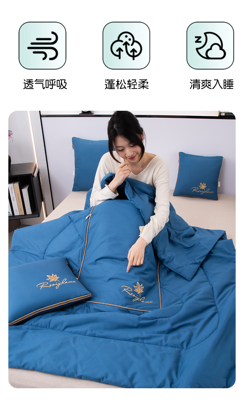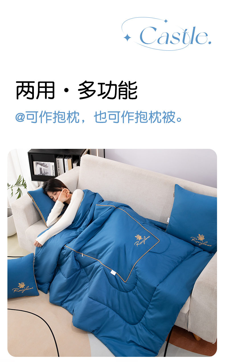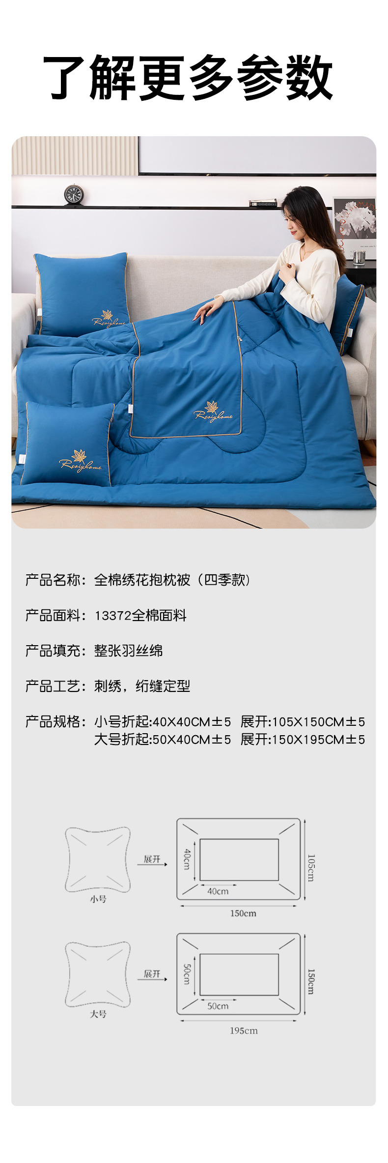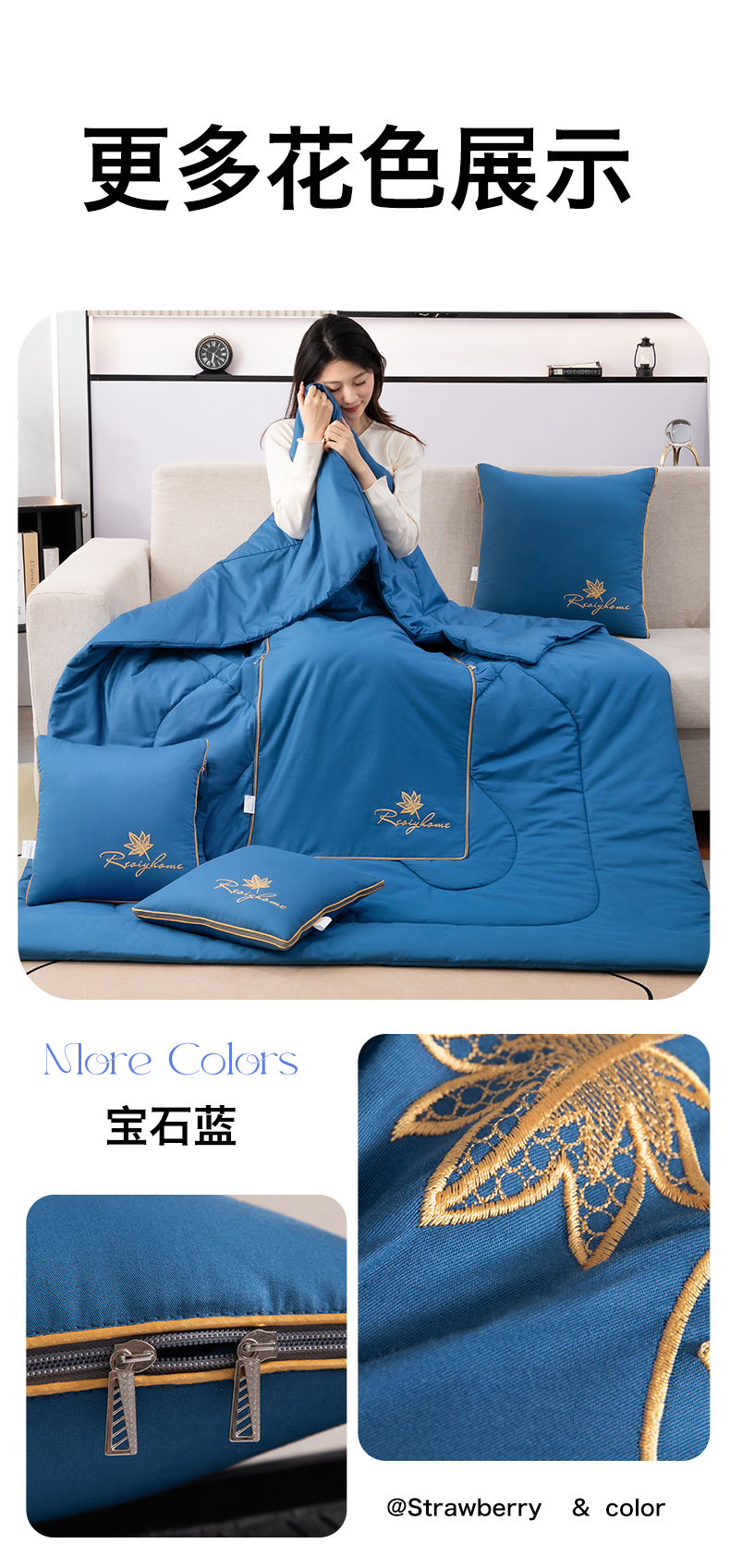 商品名称:吉利家居 2024新款全棉绣花抱枕被(四季款) 宝石蓝