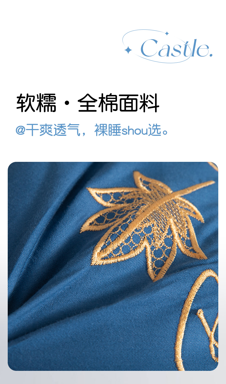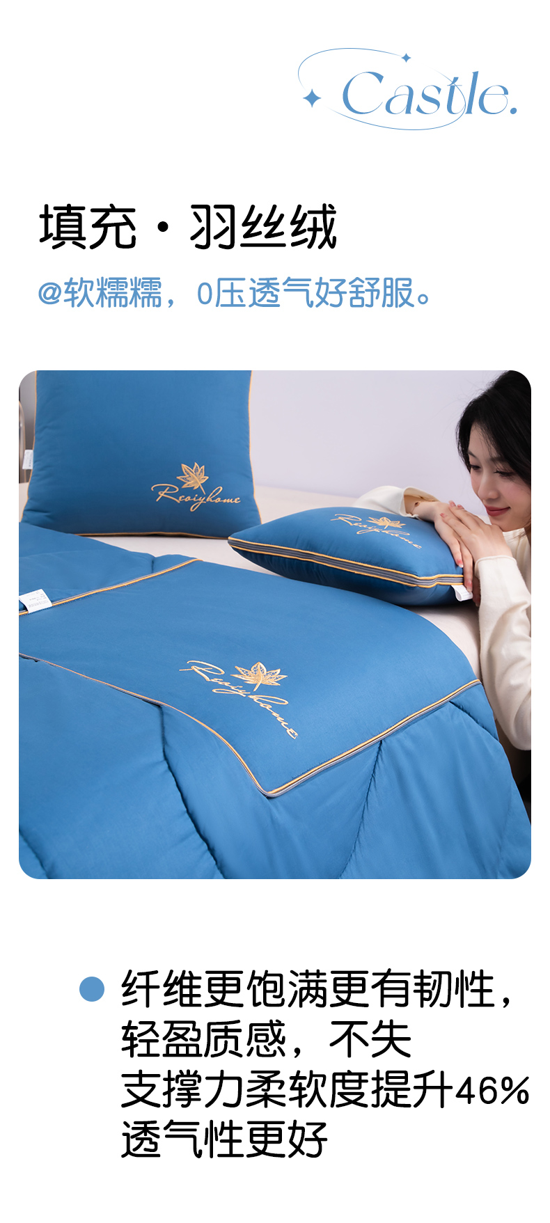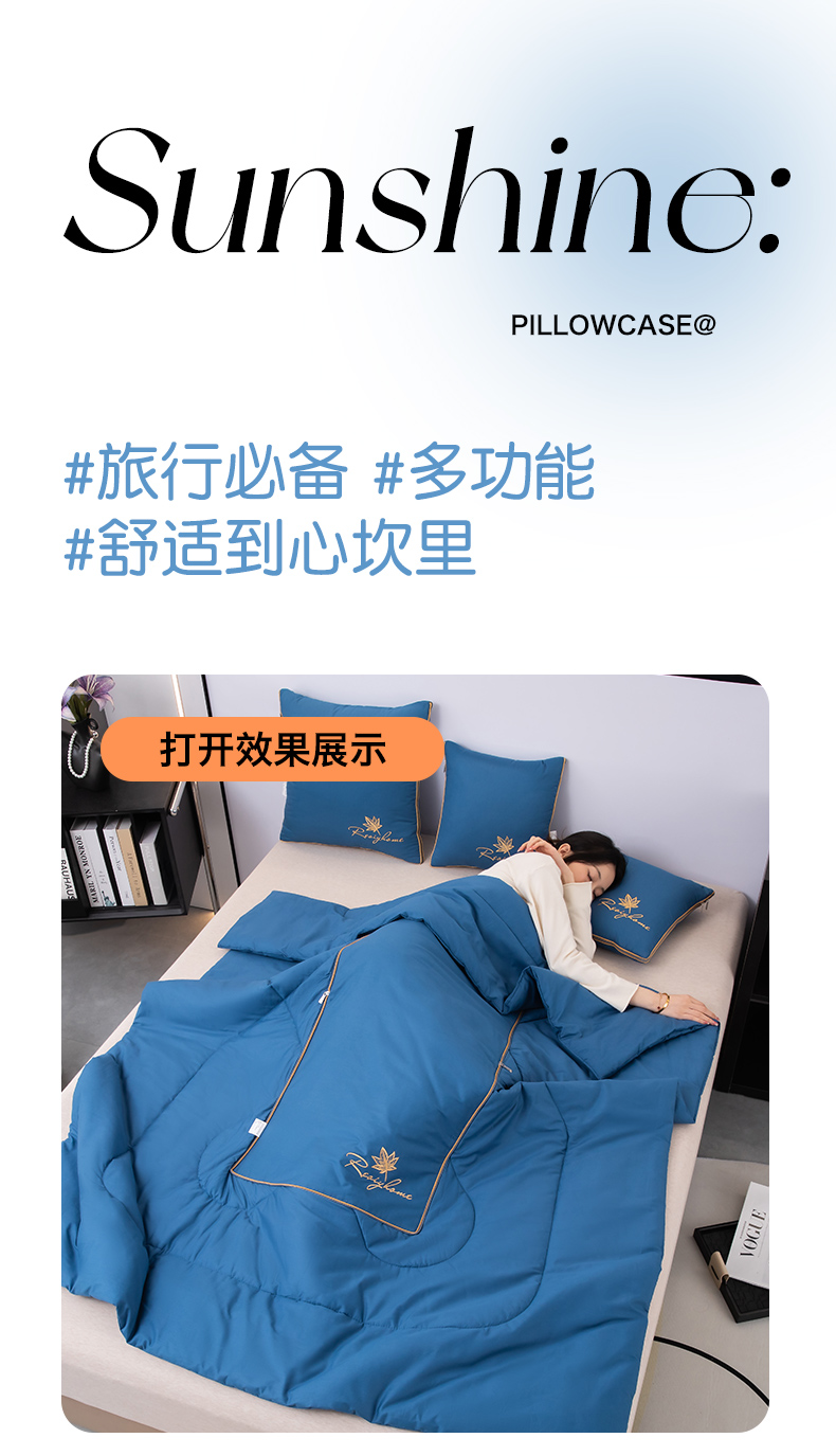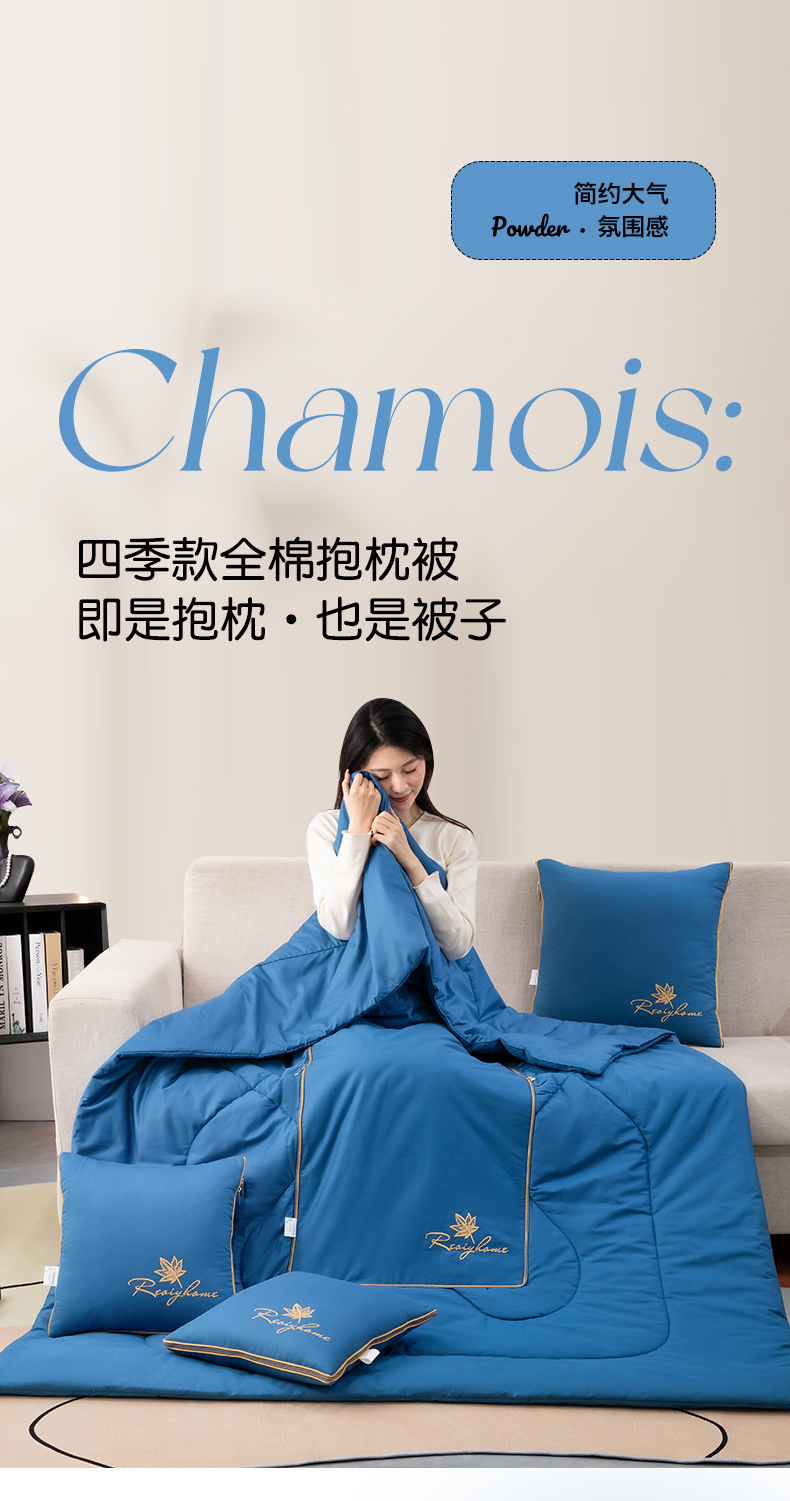商品名称:吉利家居 2024新款全棉绣花抱枕被(四季款) 宝石蓝