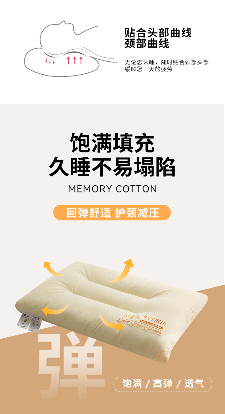 当前位置: 91家纺网 > 商品网购 > 枕头/枕芯/保健枕/颈椎枕 > 普通枕芯 > 萌番宝 2024新款A类全棉大豆蛋白枕健康好眠 A类全棉大豆蛋白酒店枕分区枕 大豆蛋白分区枕/只