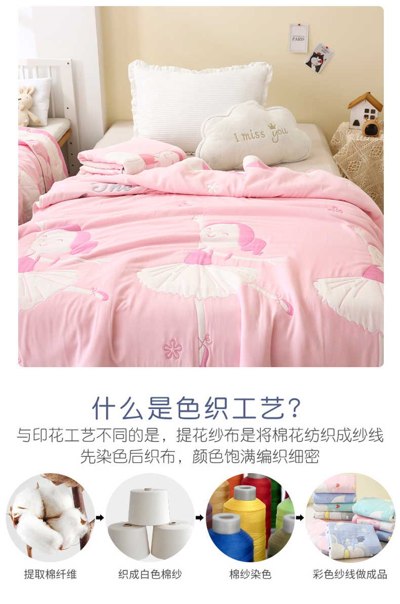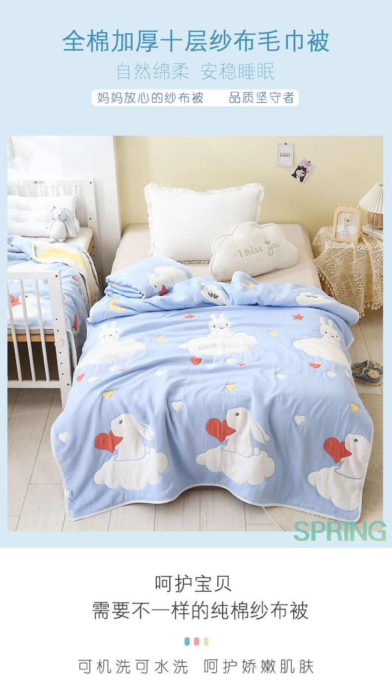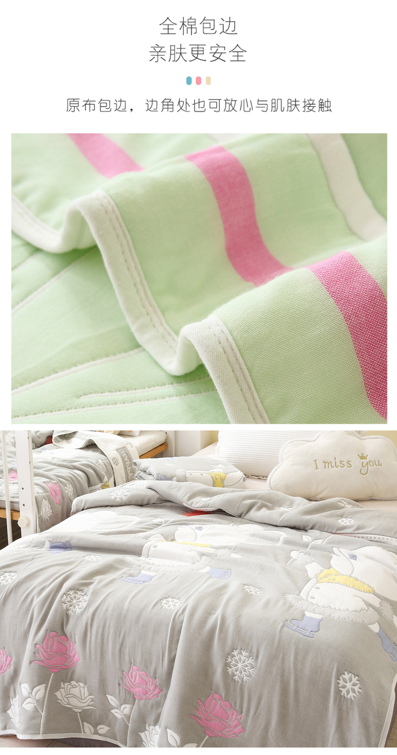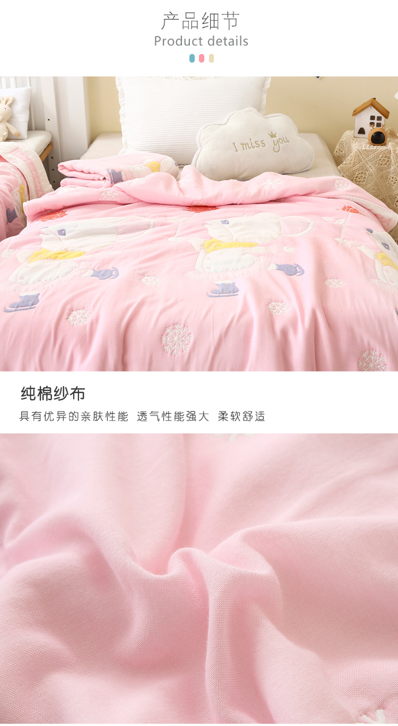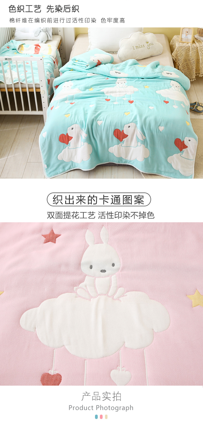 商品名称:朴尔家纺-毛巾被 2024年全棉十层纱布加厚儿童盖被毛巾被 云朵兔粉