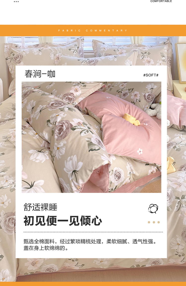 当前位置: 91家纺网 > 商品网购 > 床品套件 > 四件套 > 全棉普通四件套 > 星期三家纺2024新款全棉13372品质四件套(加老板微信有会员价) 春涧-咖