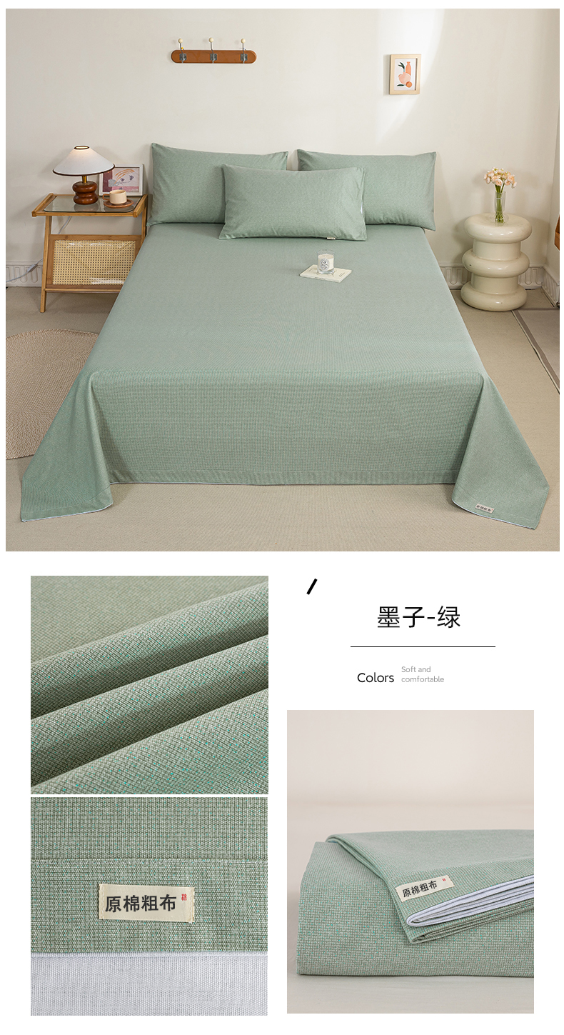 • 91家纺网 家纺一手货源 找家纺 鸣升 新款舒适透气100%全棉老粗布床单 墨子(绿)