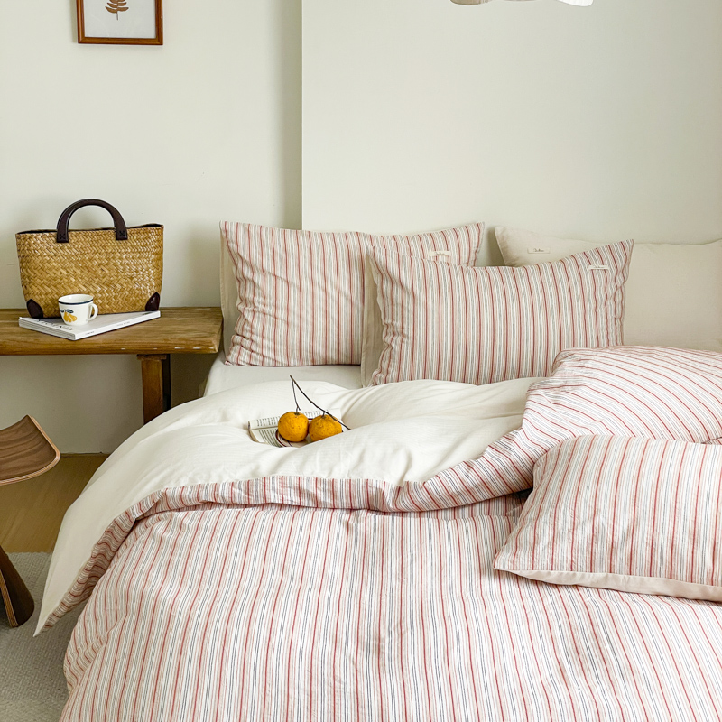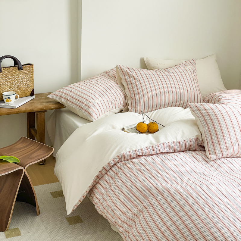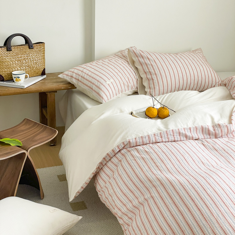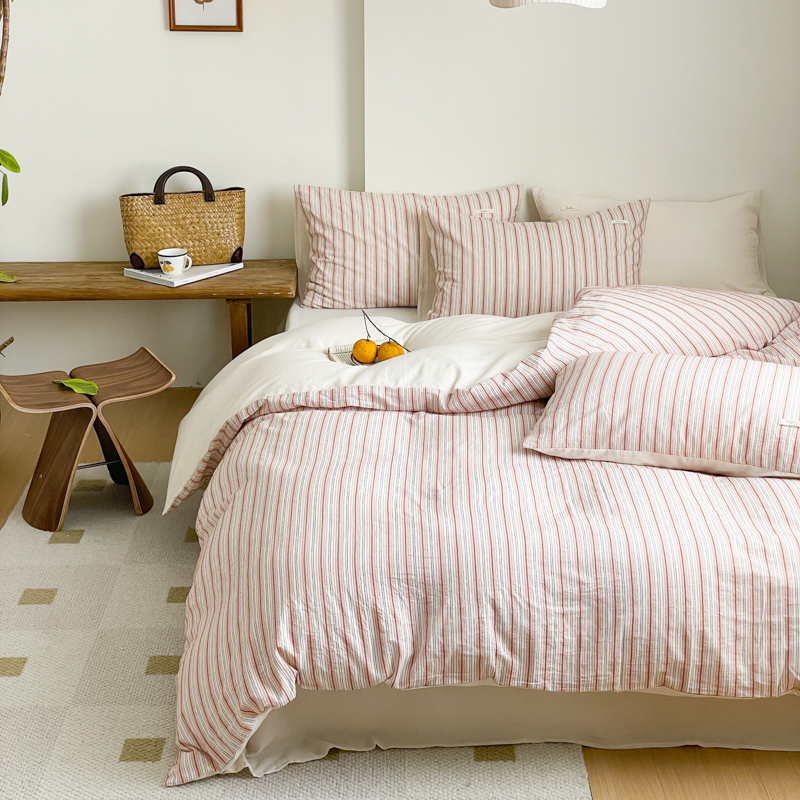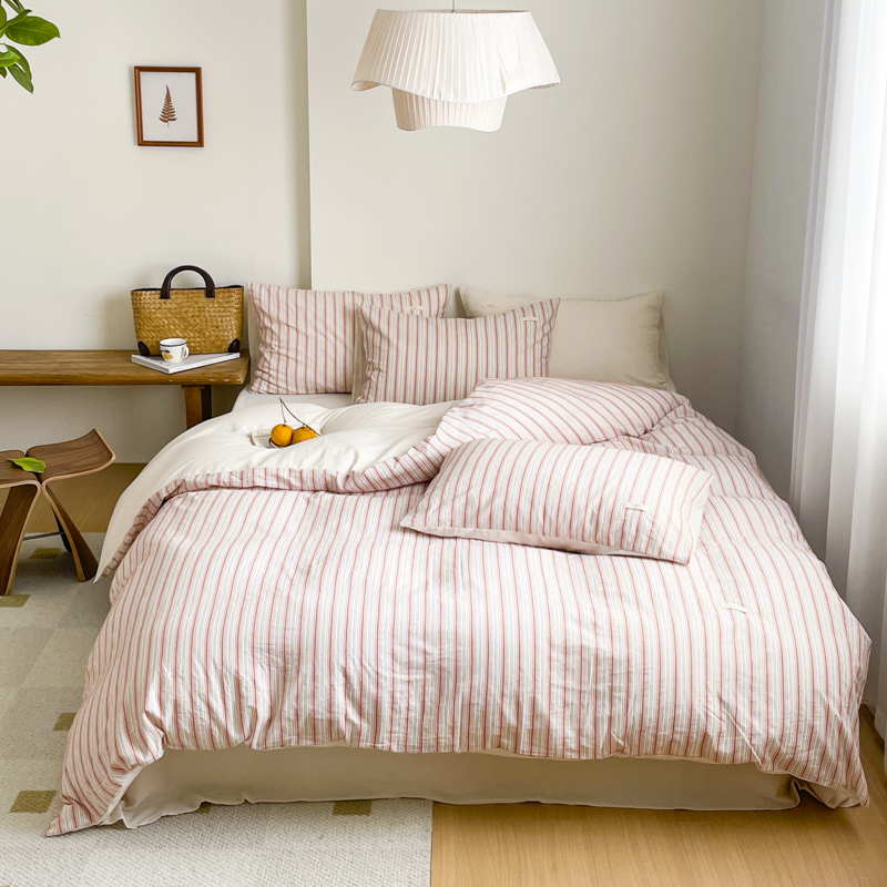 当前位置: 91家纺网 > 商品网购 > 床品套件 > 四件套 > 全棉普通四件套 > 玛奇朵 新款全棉色织立体提花四件套-海街日记 海街日记-粉橘(搭配米色床单)场景一