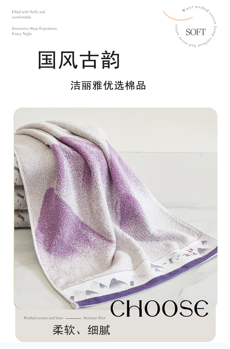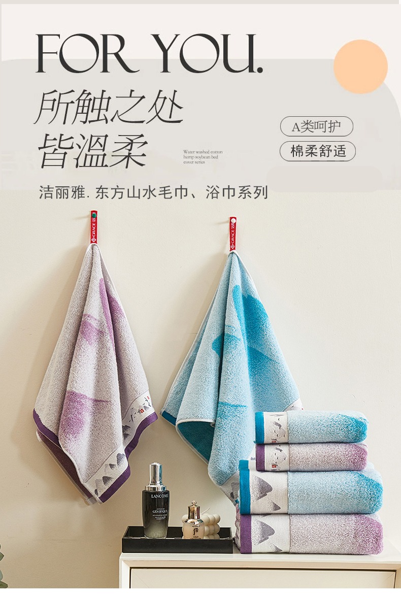 (总)棠薇家纺 2025新款洁丽雅东方山水纯棉毛巾浴巾套巾,东方山水兰 面巾:72x35cm,东方山水紫 面巾:72x35cm,东方山水兰 浴巾:140x70cm ,东方山水兰 浴巾:140x70cm