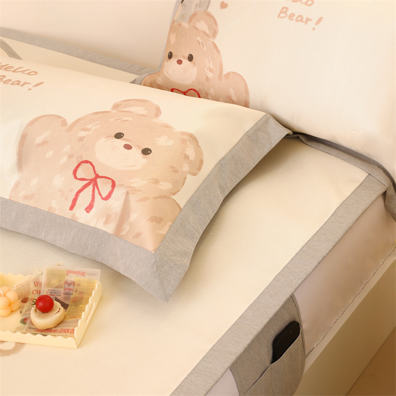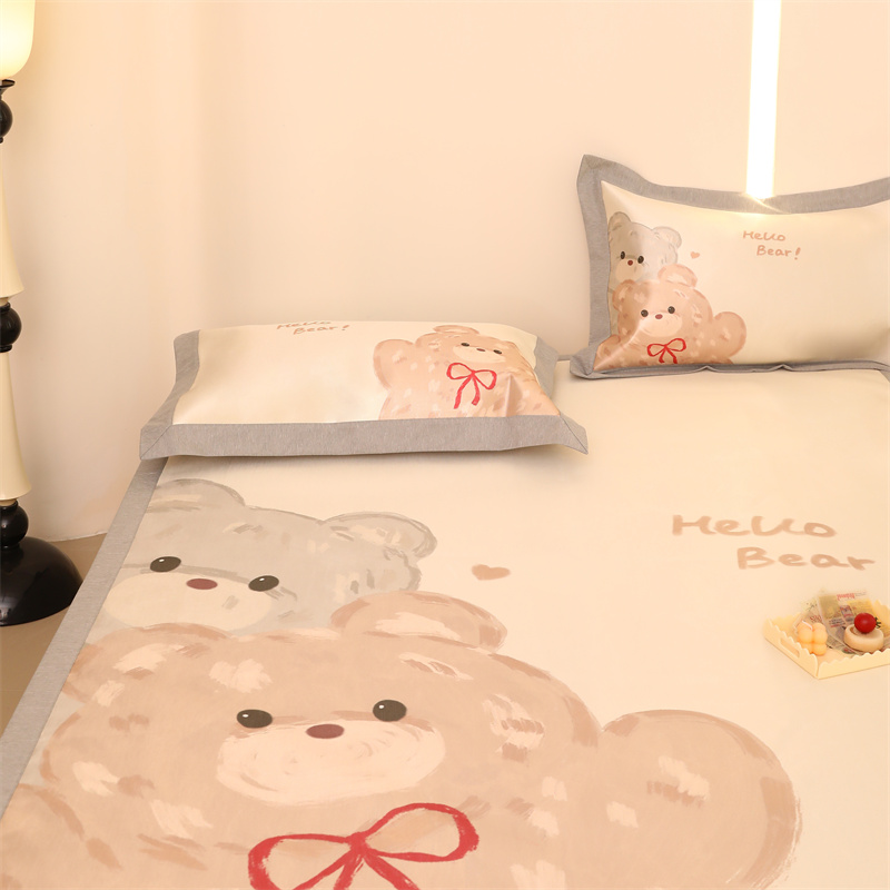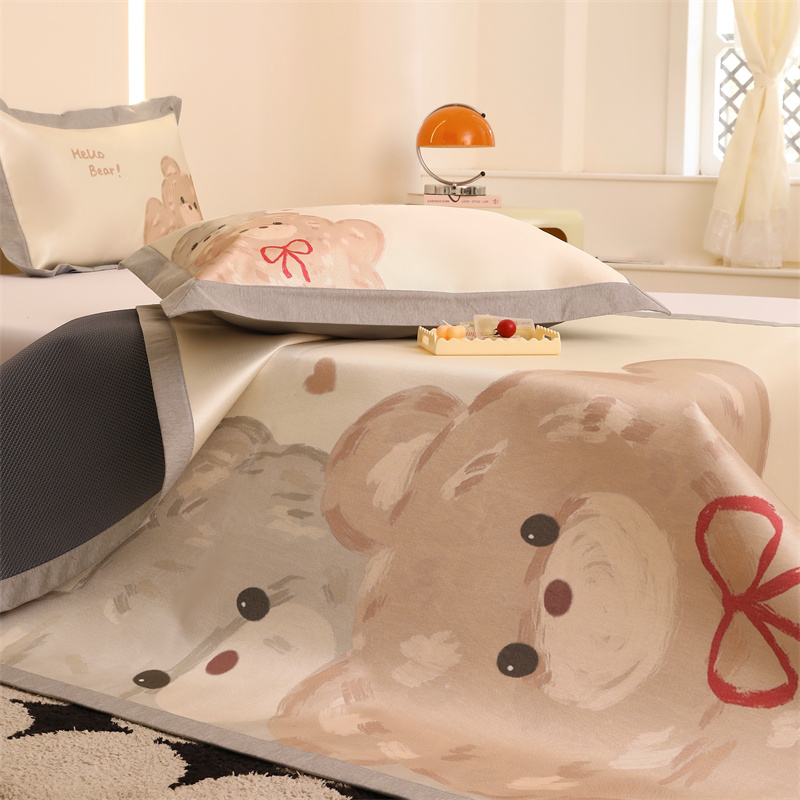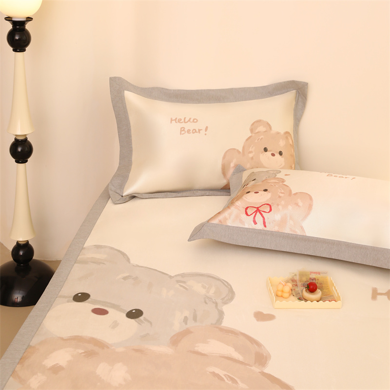 商品名称:JUICY 橘滋家纺 2024新款高级感卡通可爱数码印花冰丝席(场景二) 大眼熊仔