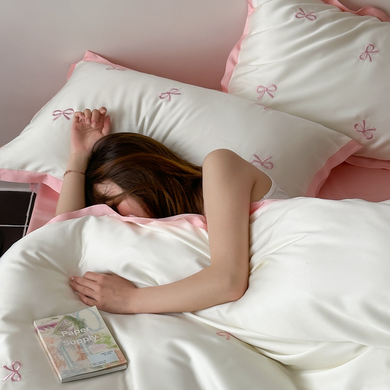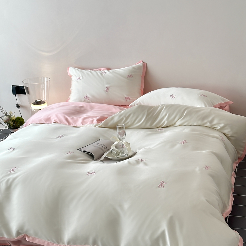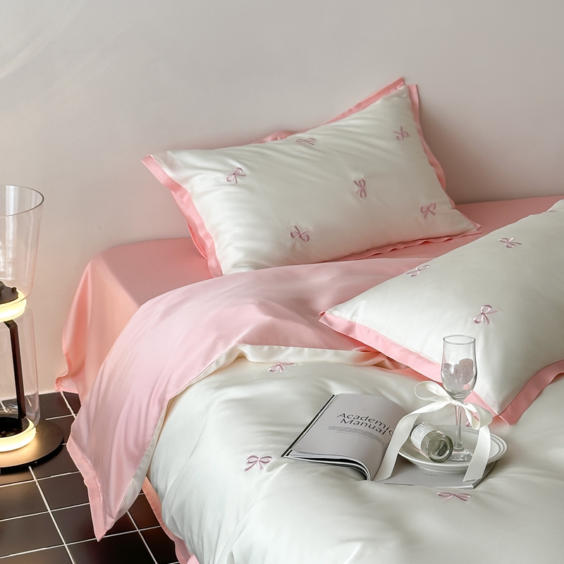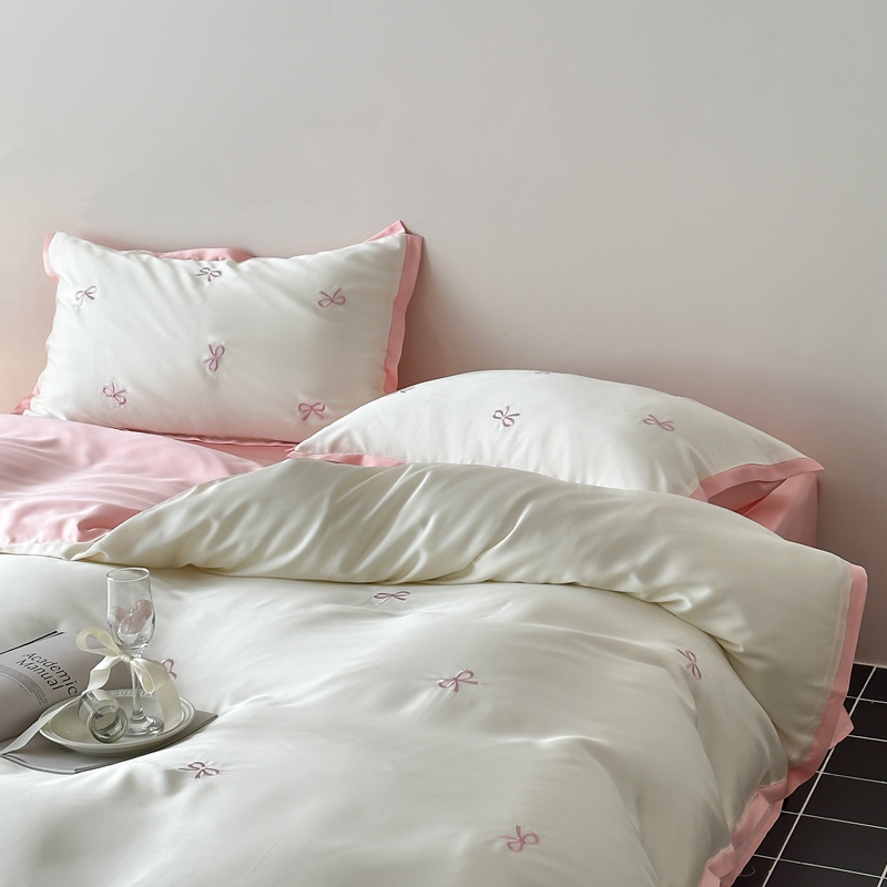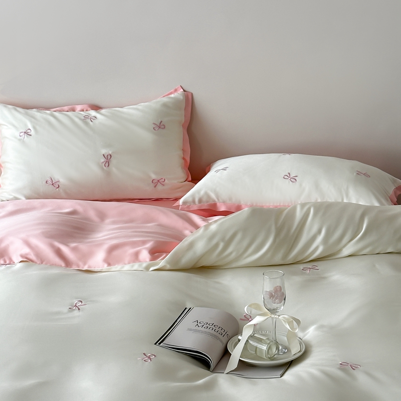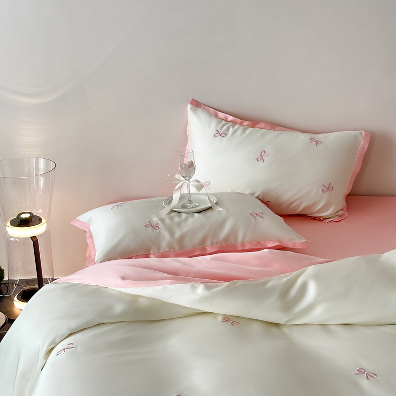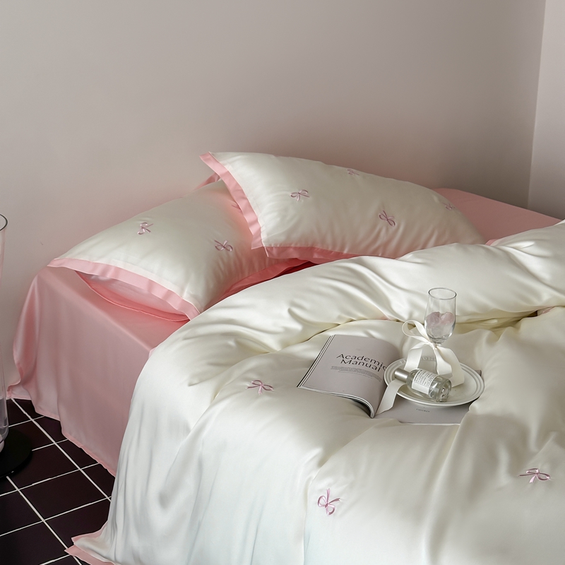 西西家居 2024新款兰精天丝蝴蝶结款四件套 蝴蝶结-桃花