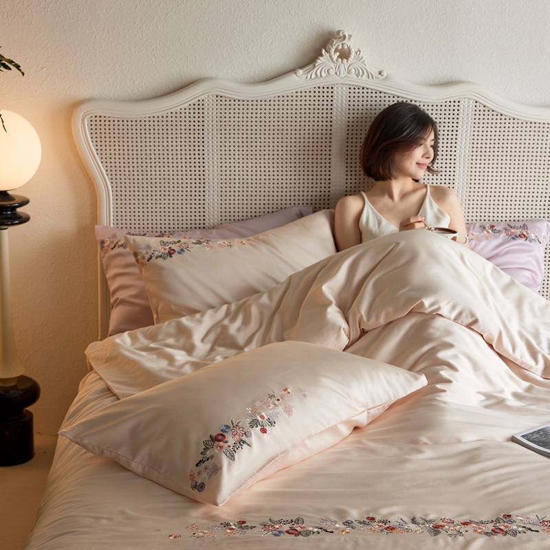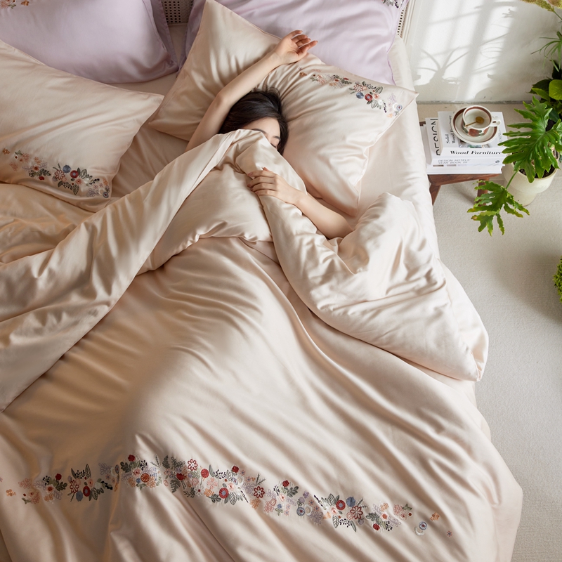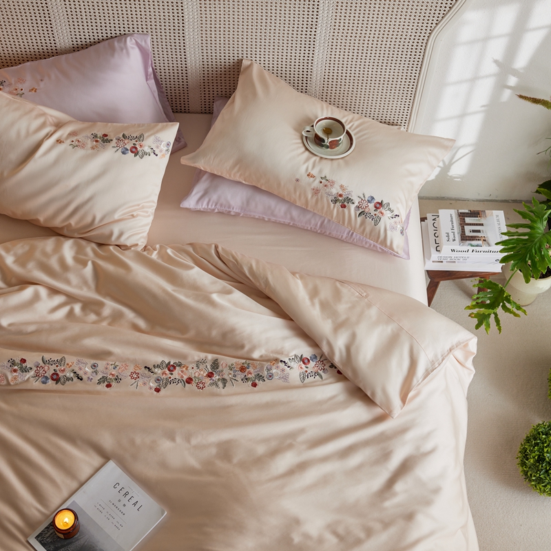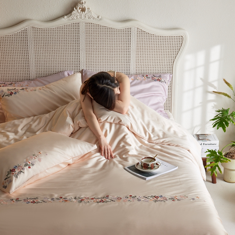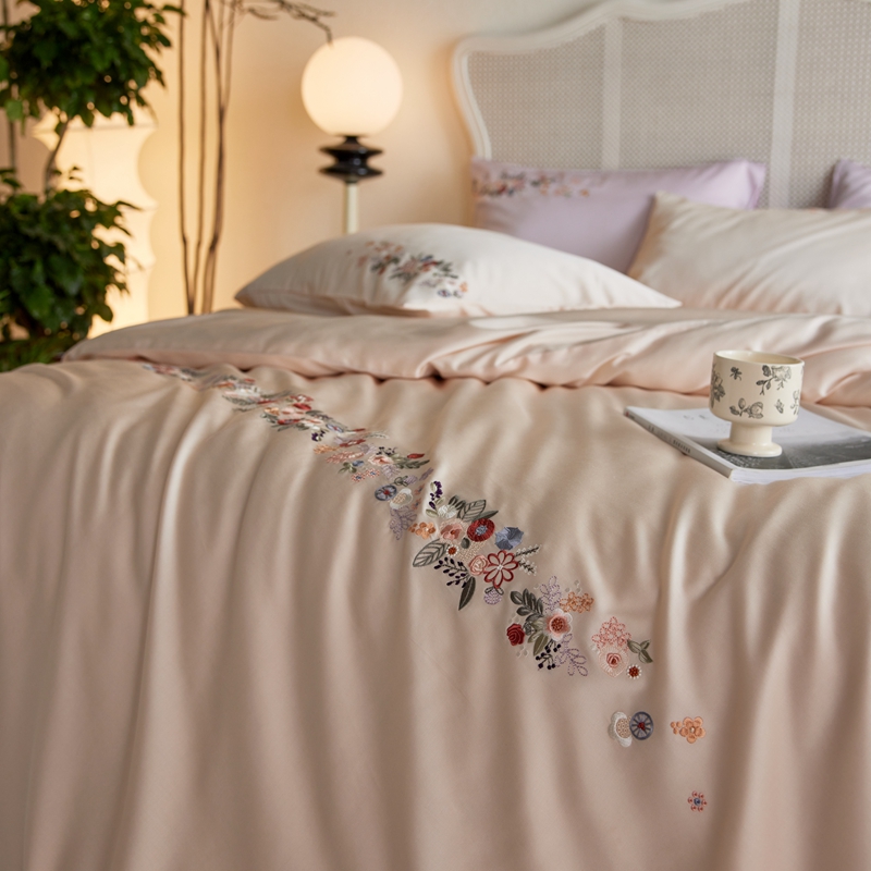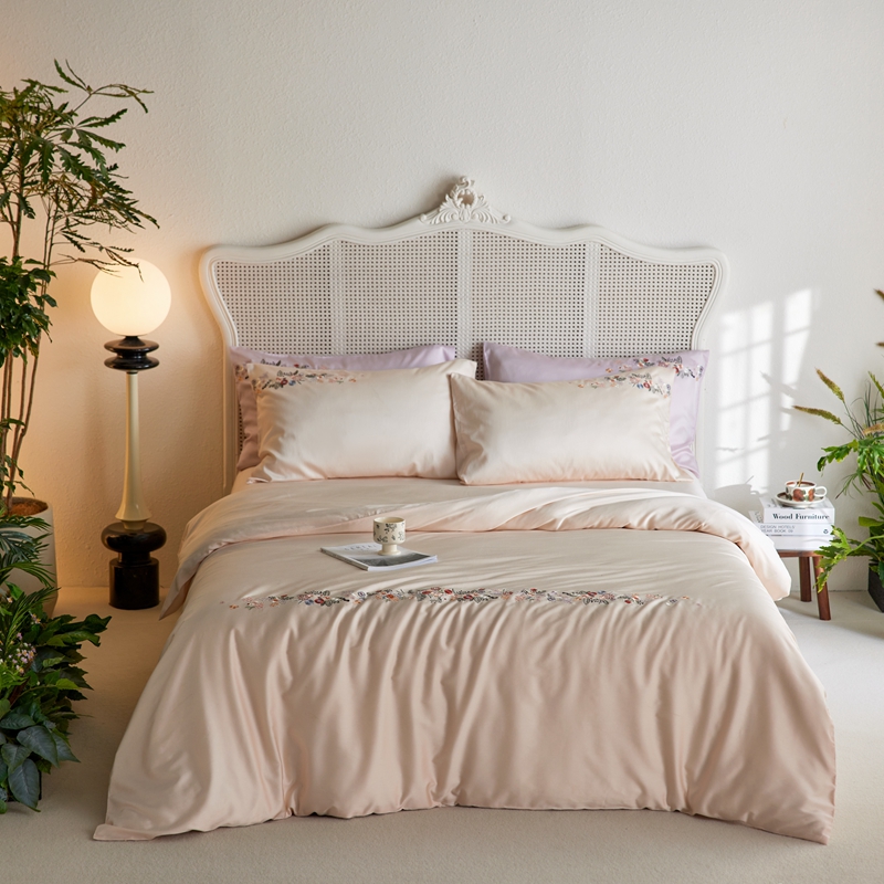 云胡 2024新款进口莱赛尔纤维棉四件套-四月 泡芙粉