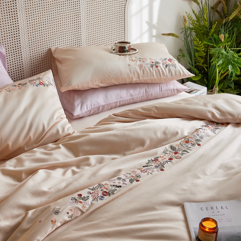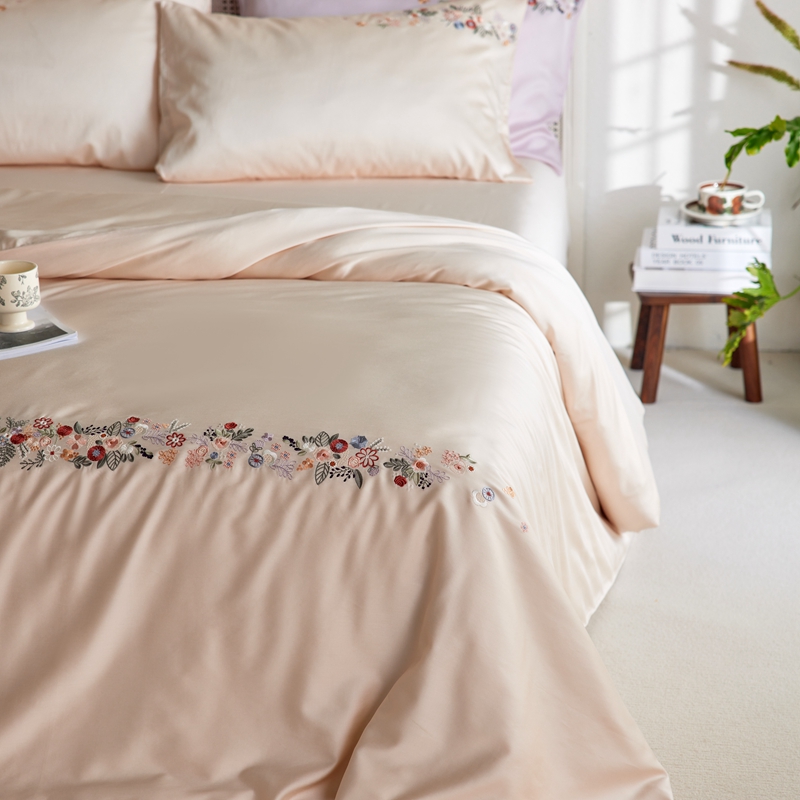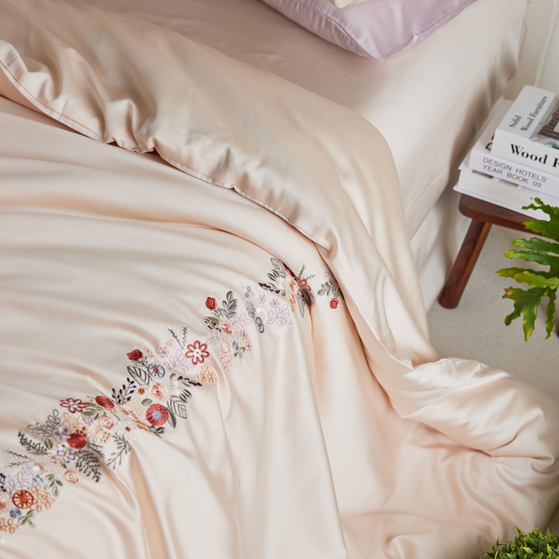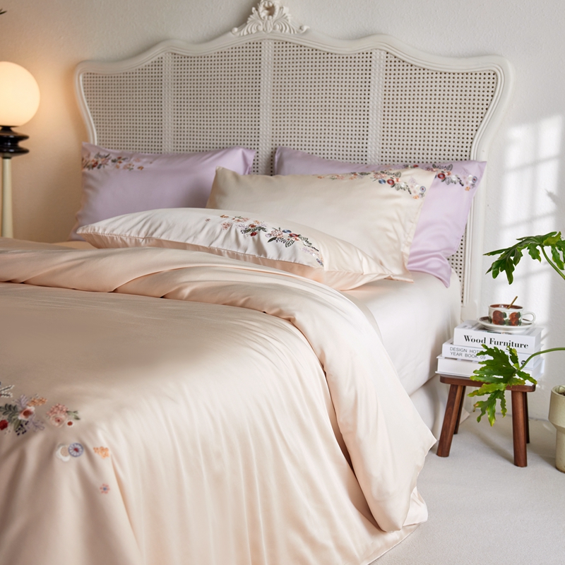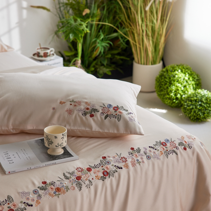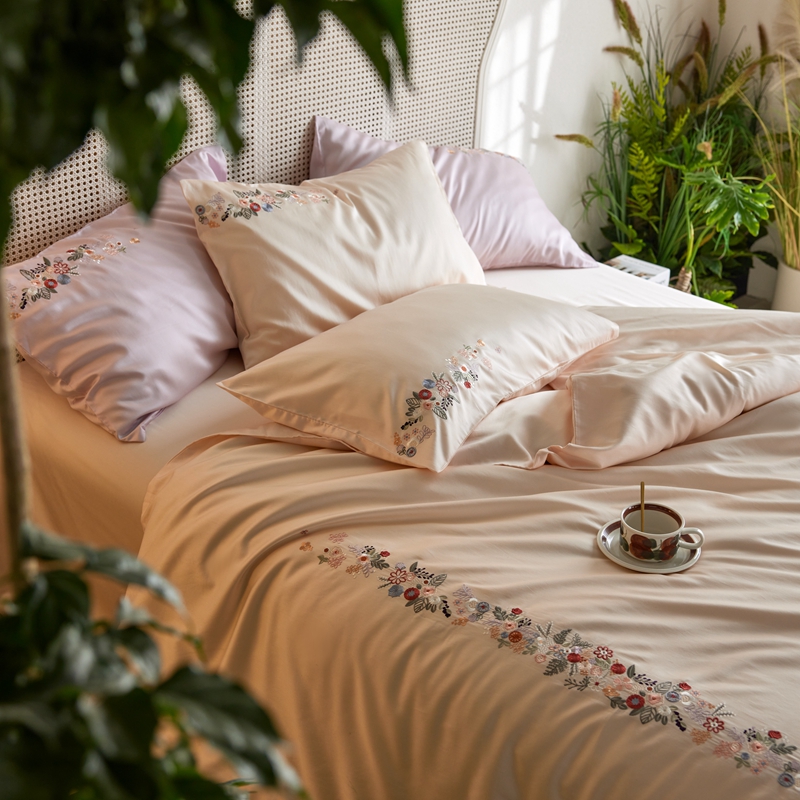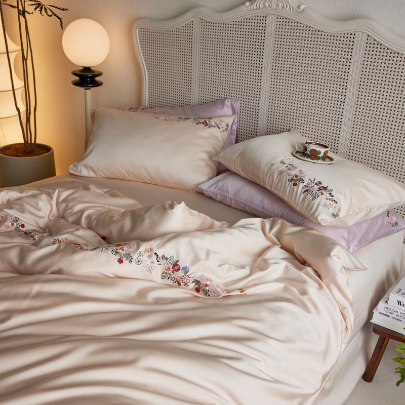 云胡 2024新款进口莱赛尔纤维棉四件套-四月 泡芙粉