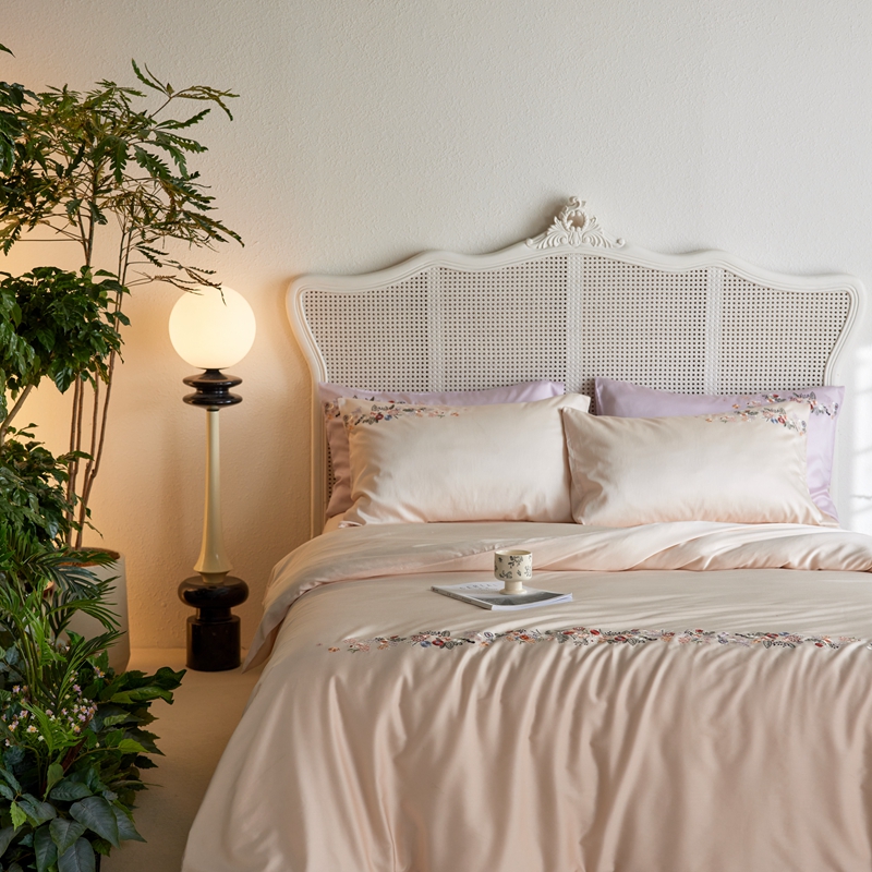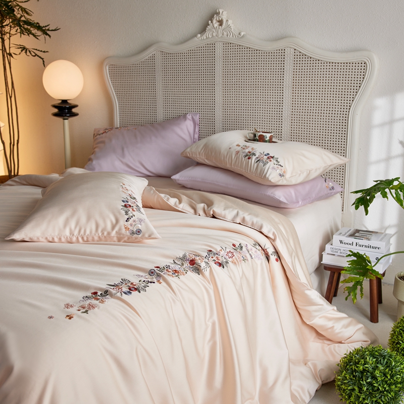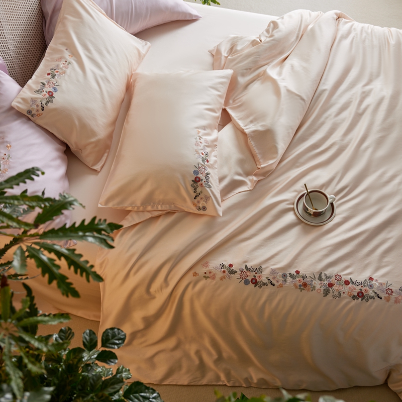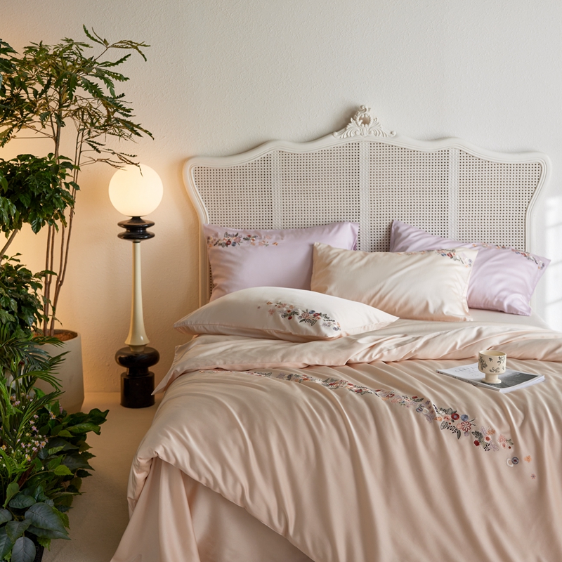 商品名称:云胡 2024新款进口莱赛尔纤维棉四件套-四月 泡芙粉