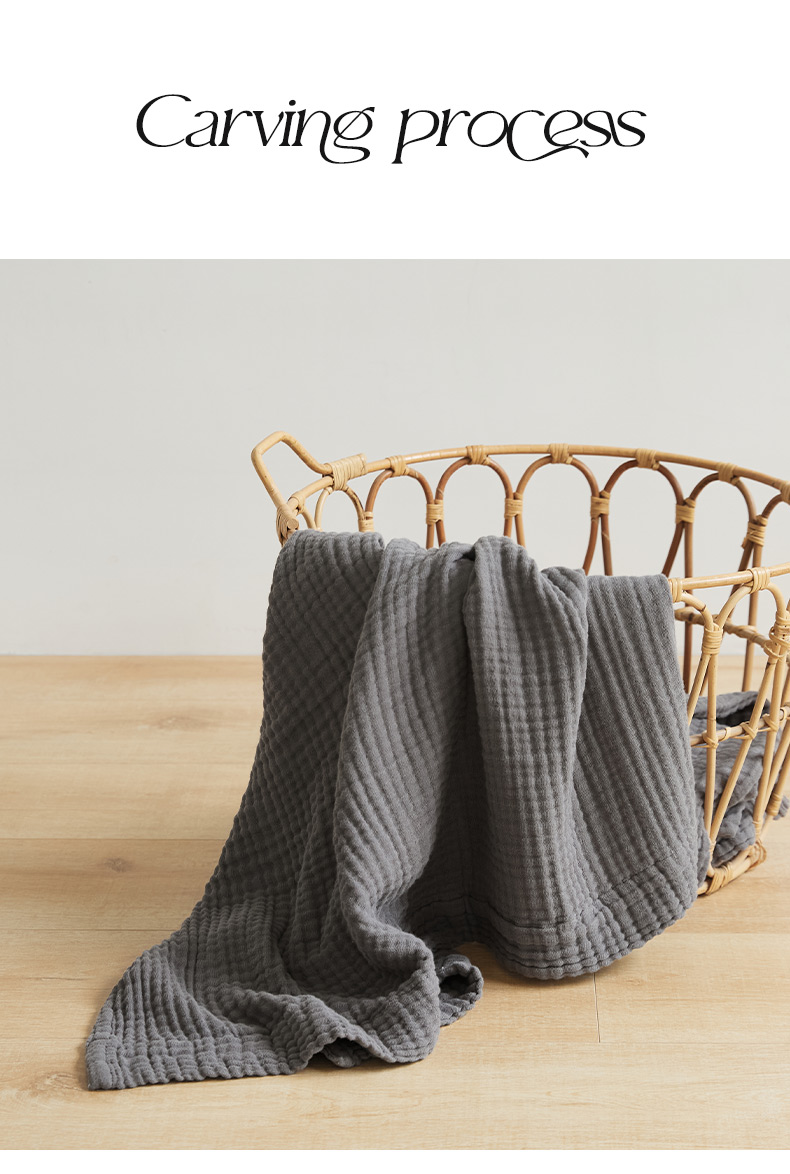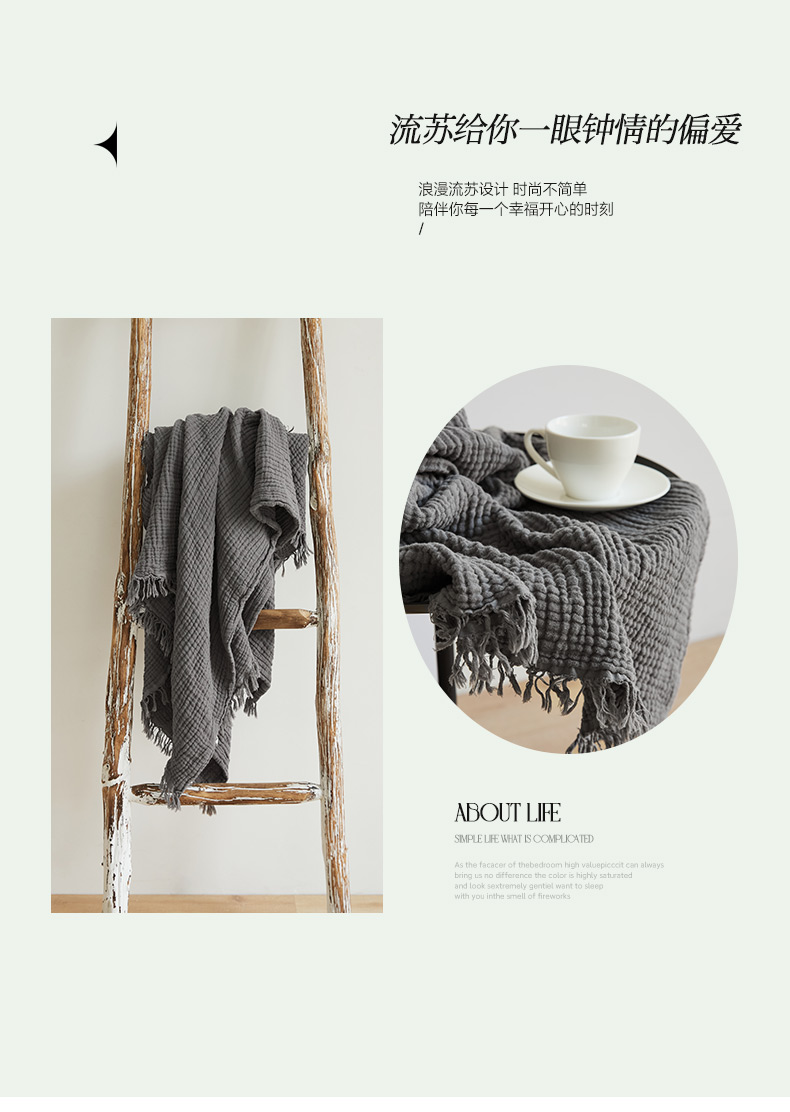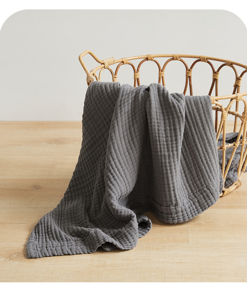 商品名称:EH家居 2024新款纯棉四层皱皱纱毯盖毯休闲毯 包边款-深灰