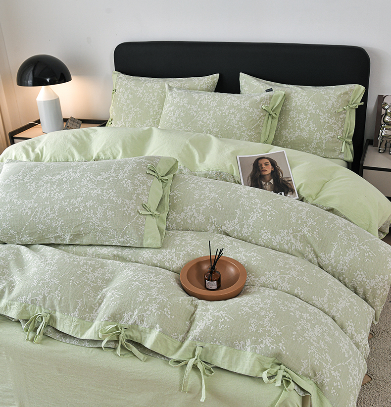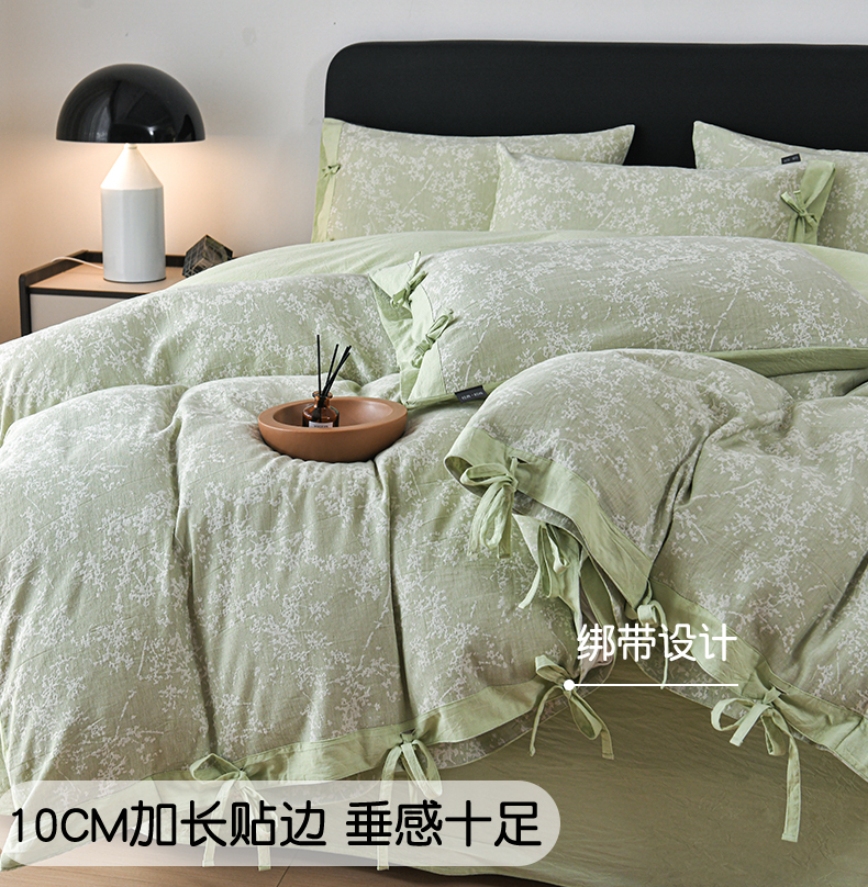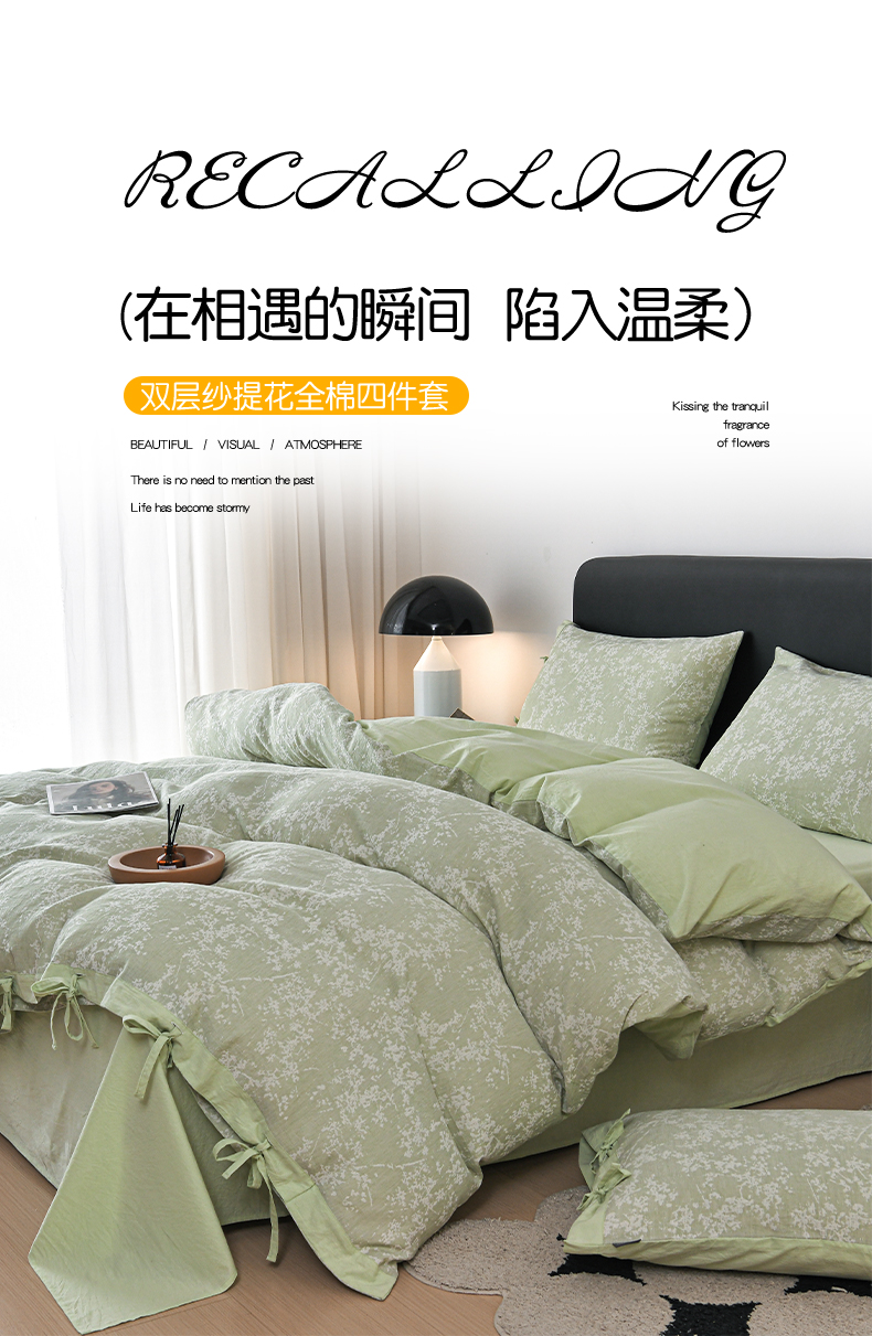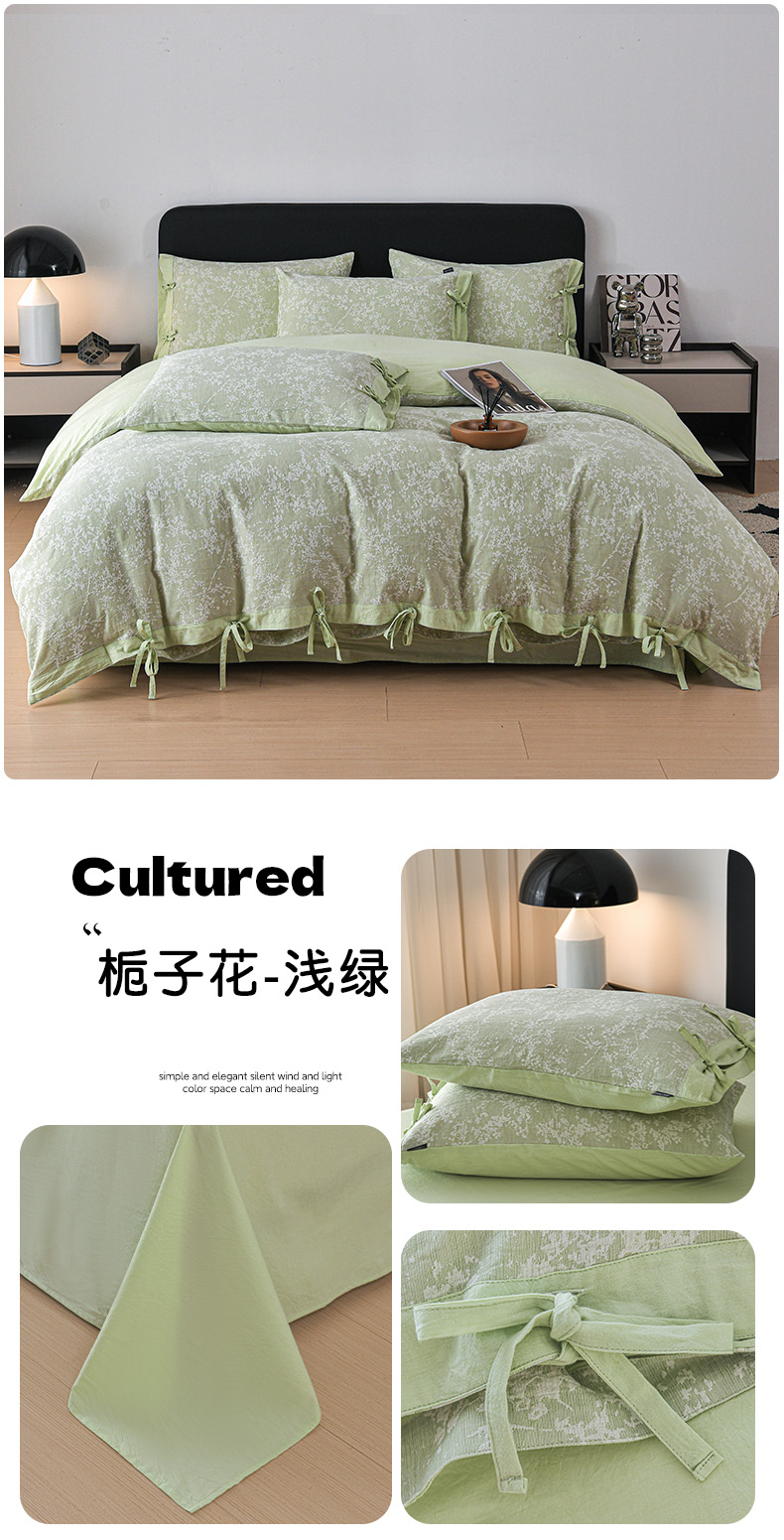 商品名称:娜娜 2024新款全棉双层纱大提花四件套 栀子花-浅绿