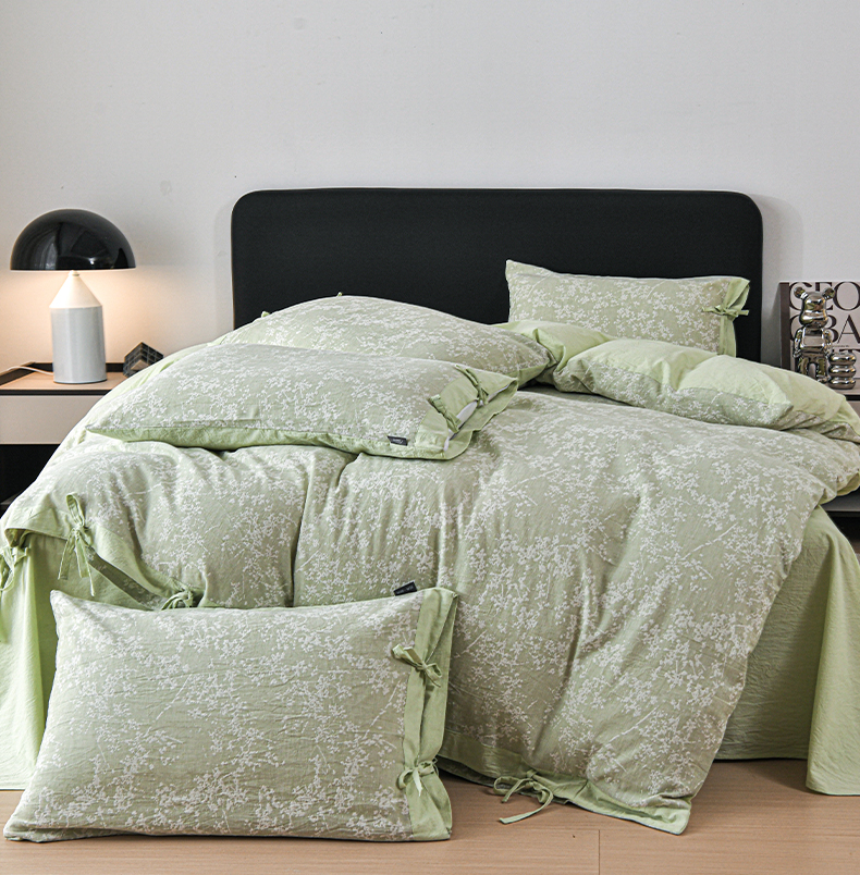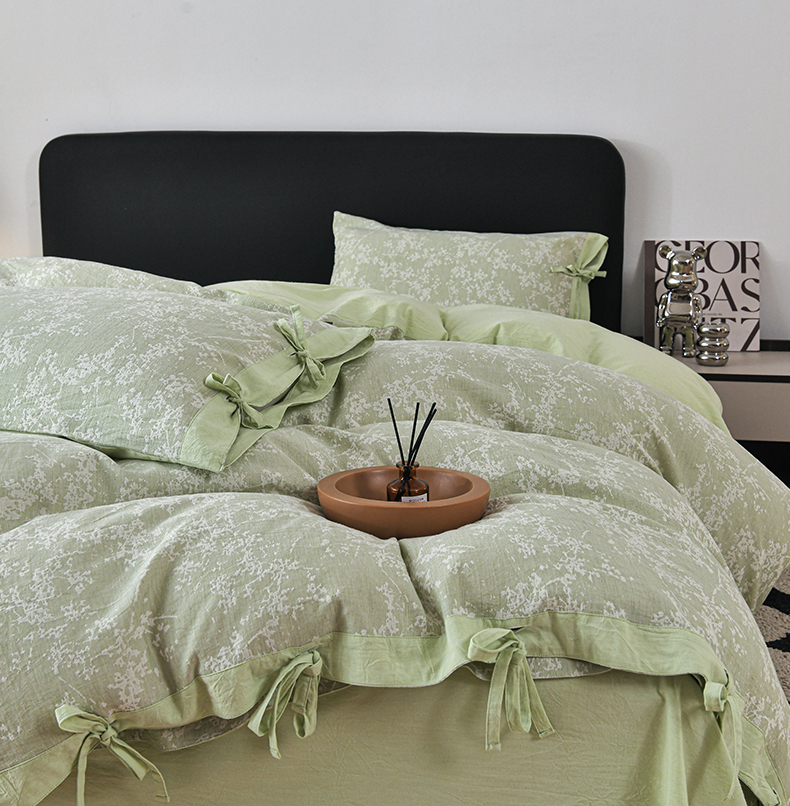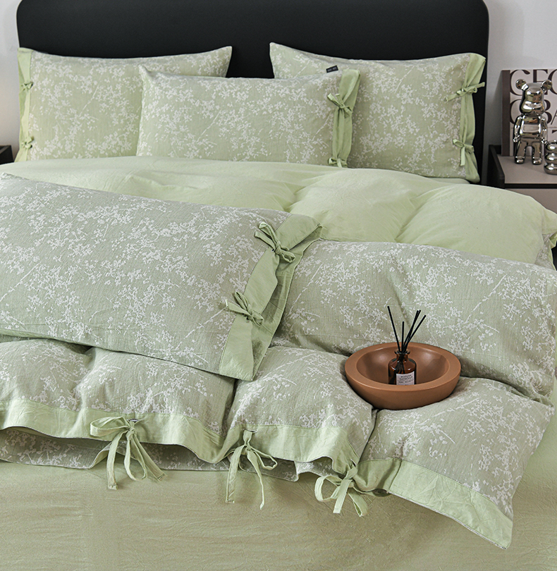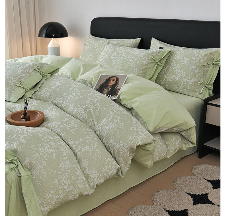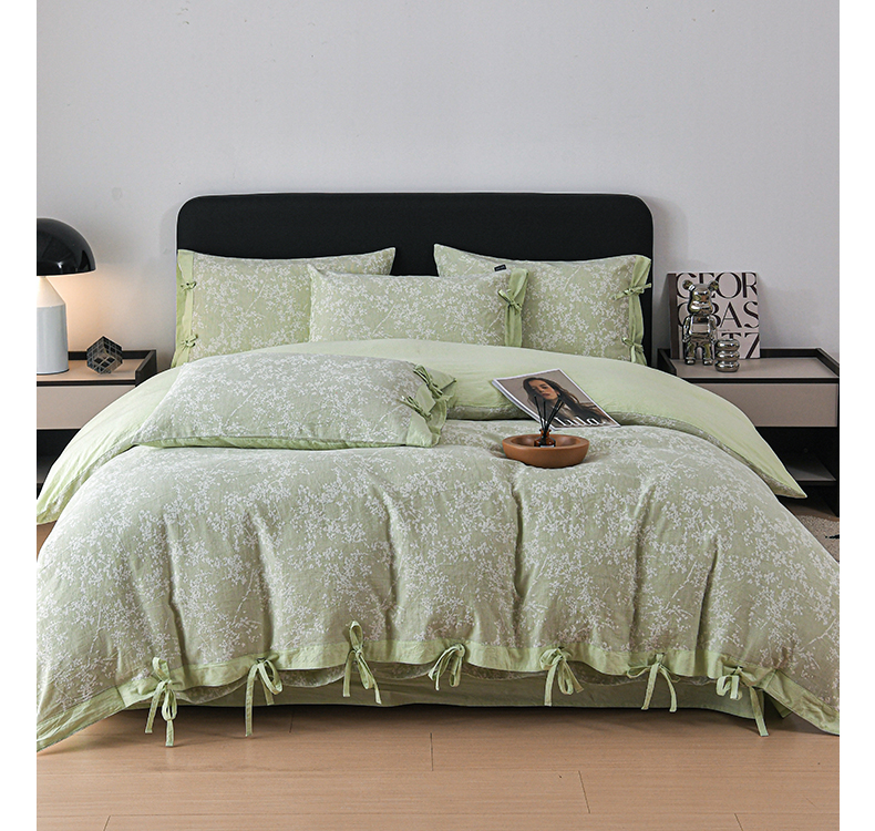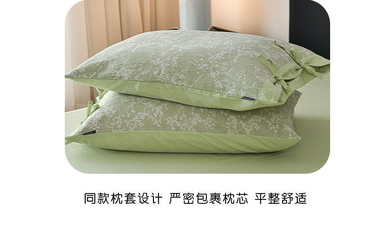 商品名称:娜娜 2024新款全棉双层纱大提花四件套 栀子花-浅绿