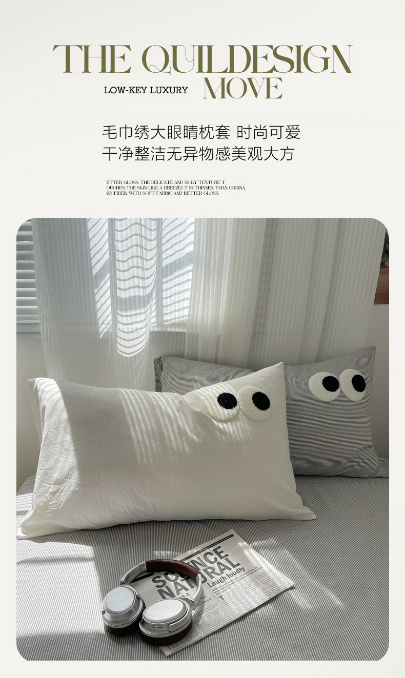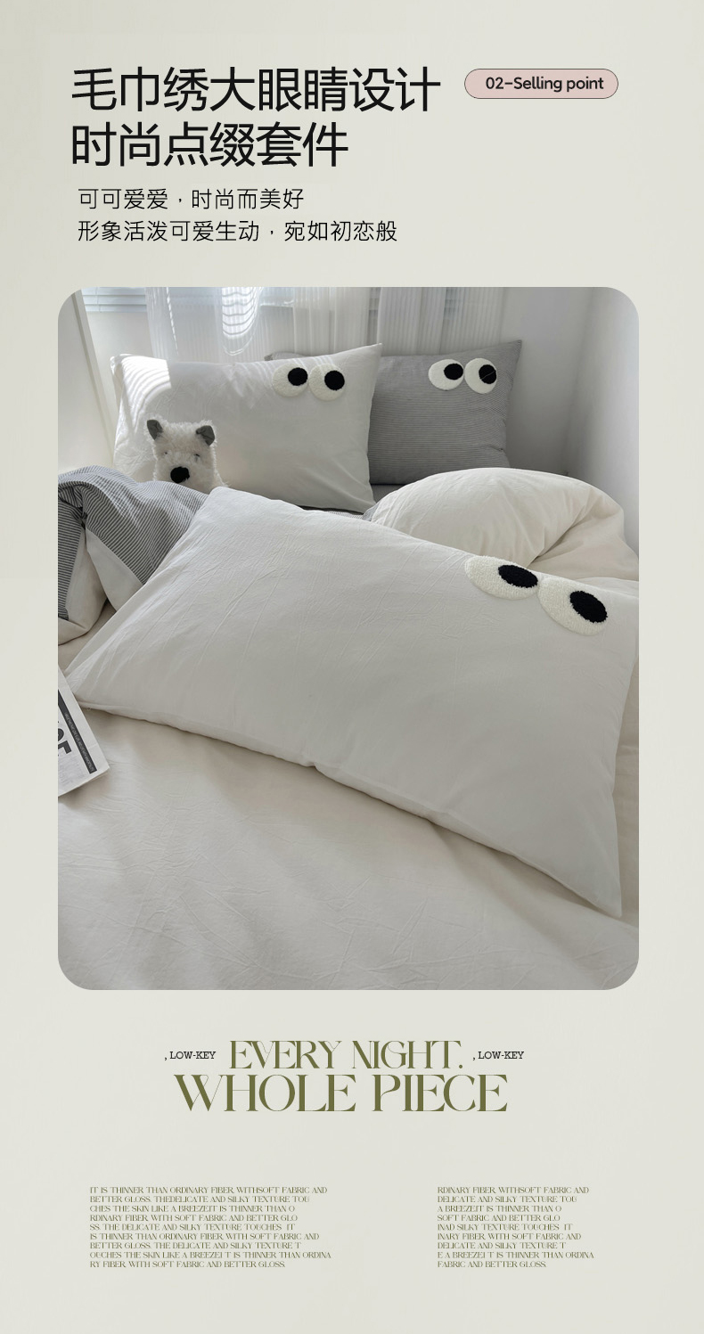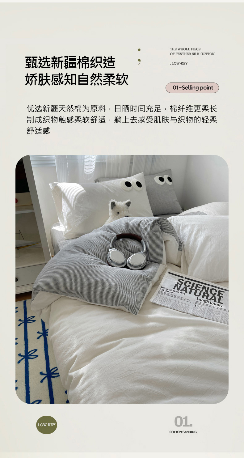 商品名称:丽涵家纺 2024新款全棉混搭色织水洗棉大眼学生四件套纯棉三件套 大眼密条黑2