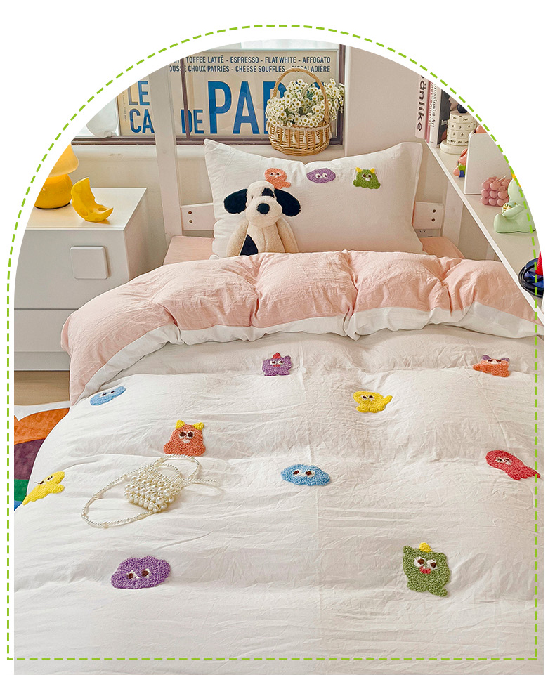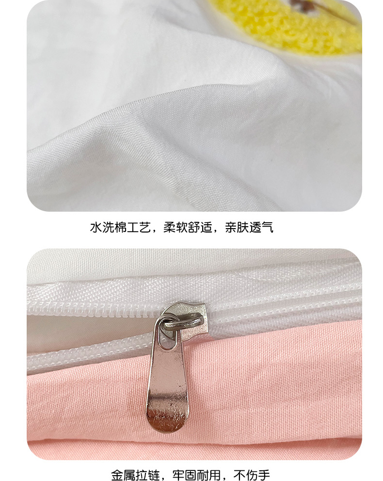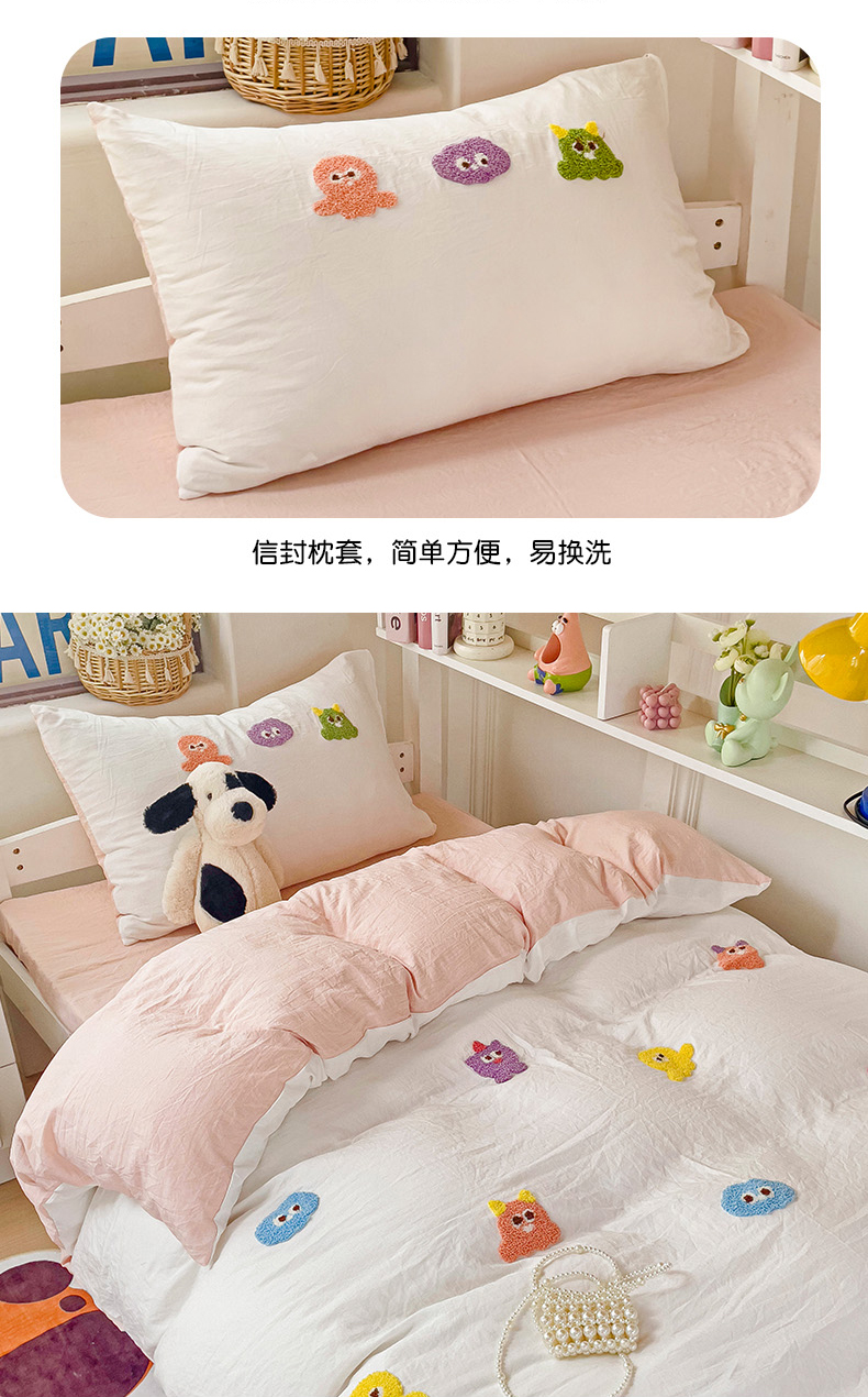 商品名称:韩巢家纺 2024新款超柔水洗棉毛巾绣学生宿舍上下铺单件被套-小精灵系列 小精灵白浅粉
