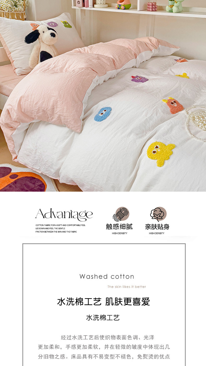 (总)韩巢家纺 2025新款水洗棉大花边被套四件套直播热销款学生宿舍被罩床单三件套(提供卖家秀),春日与玫瑰【大花边款】,繁花似梦【大花边款】,花时宇间【大花边款】,灰蒙小狗【大花边款】,久期诗朵-黄【大花边款】,可可腊肠犬【大花边款】,奶油樱桃【大花边款】,软糖猫【大花边款】,甜樱恋曲【大花边款】,温暖粉心【大花边款】,小花野-紫【大花边款】,小熊冰淇淋【大花边款】,星梦蝶结【大花边款】,幸运可爱兔【大花边款】,摘樱桃的小熊【大花边款】