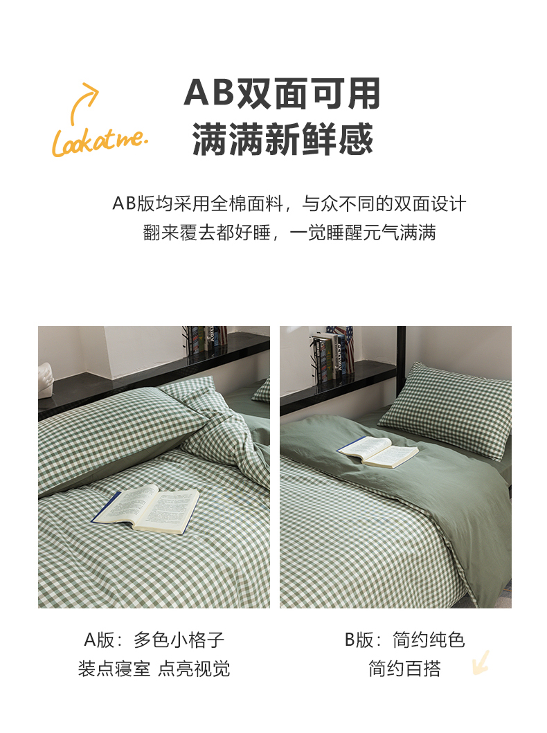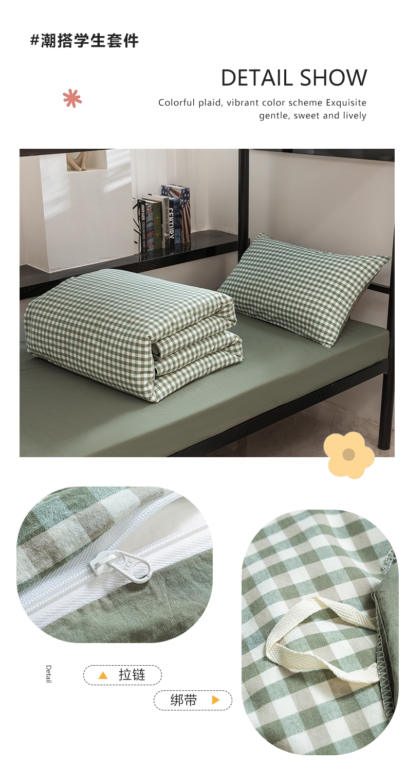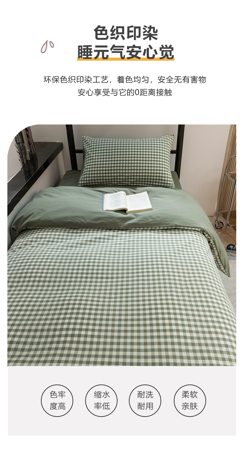 当前位置: 91家纺网 > 商品网购 > 床品套件 > 三件套 > 柠萌家居 2025新款无印良品风色织水洗棉A类学生宿舍三件套 小格绿