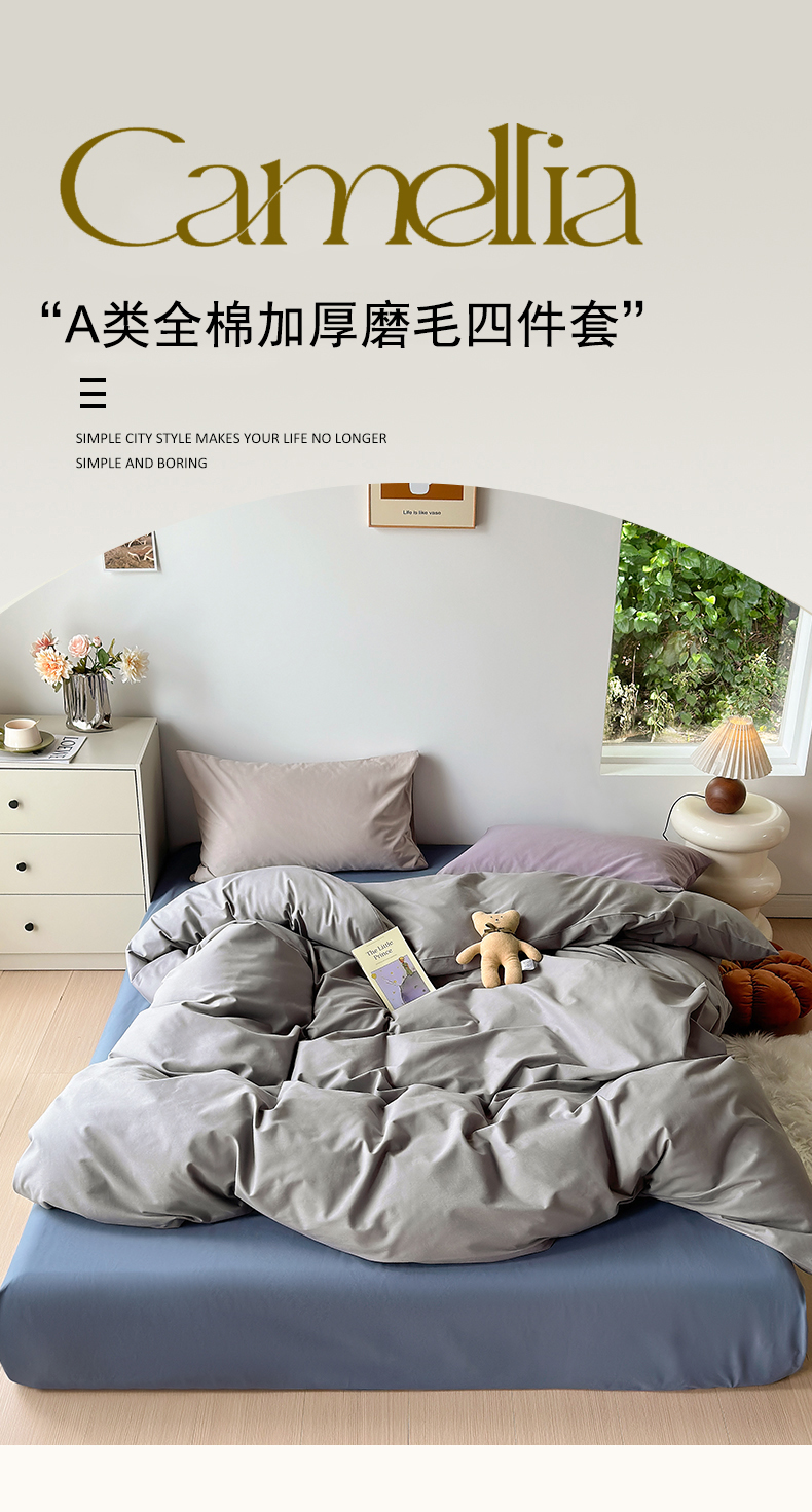 当前位置: 91家纺网 > 商品网购 > 床品套件 > 四件套 > 普通磨毛四件套 > 绫韵家纺 2024秋冬新款A类全棉加厚磨毛混搭纯棉磨毛四件套 青灰·青黛·灰咖·风信紫