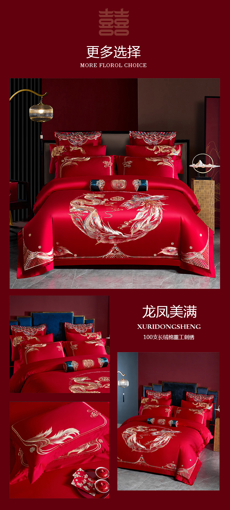 甜咪咪婚庆 2024新品全棉长绒棉100支婚庆结婚四件套多件套小红书推荐热款6.26 龙凤美满