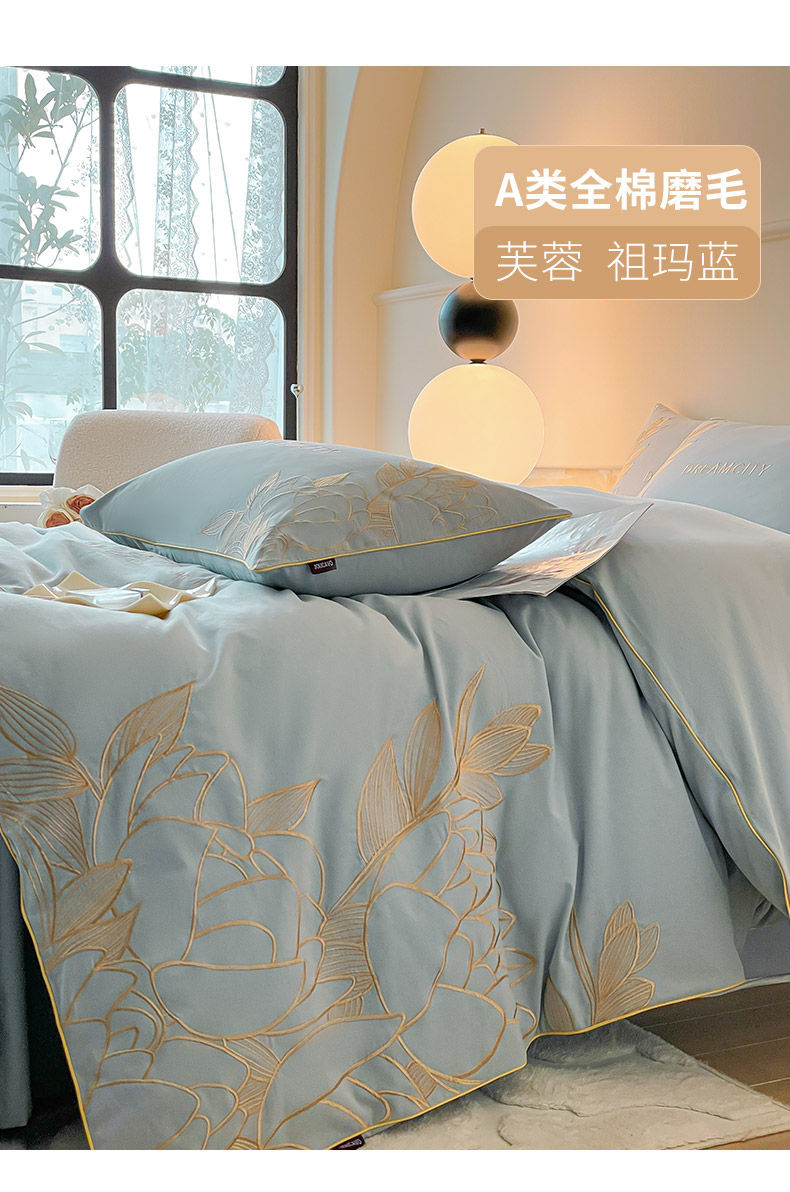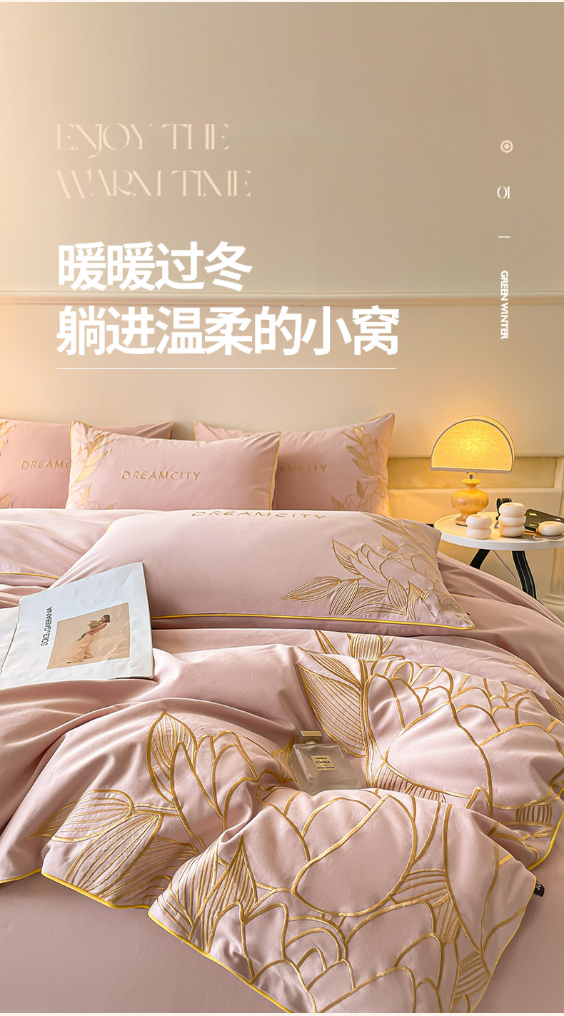 (总)乔利卡沃 2025新款直播爆款A类加厚保暖全棉纯棉磨毛四件套纯棉重工刺绣被套冬季床上用品,绮影-冰清绿,绮影-初恋粉,绮影-美人杏,绮影-时尚灰,绮影-天空蓝,绮影-香芋紫