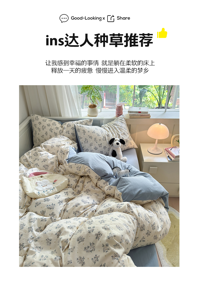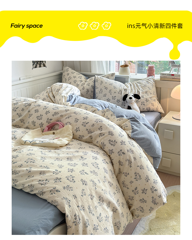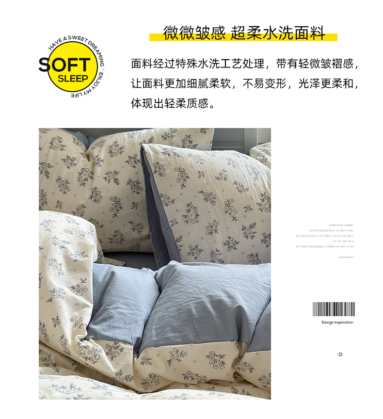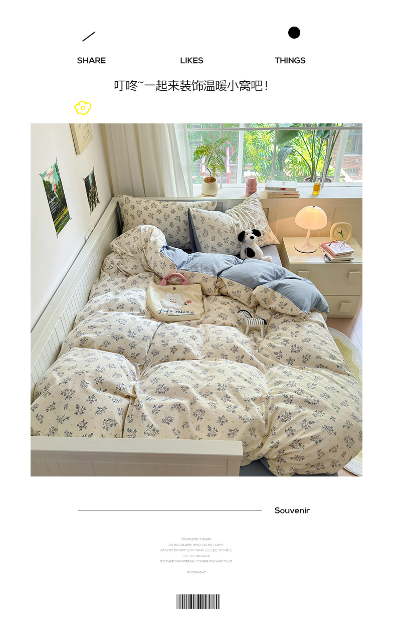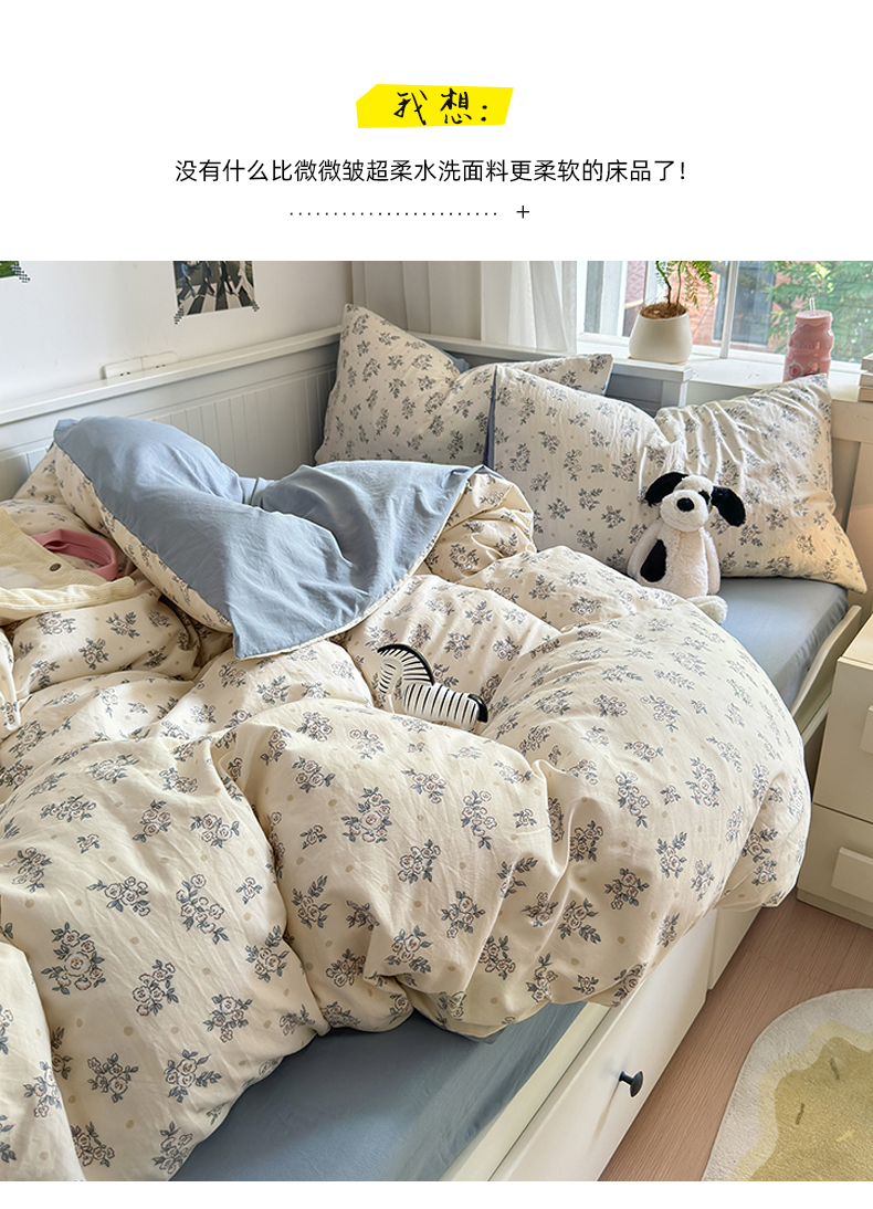 当前位置: 91家纺网 > 商品网购 > 床品套件 > 四件套 > 其它四件套 > 沐芷 2024微皱超柔手感105g印花水洗棉四件套床上宿舍三件套床单被套 风与爱