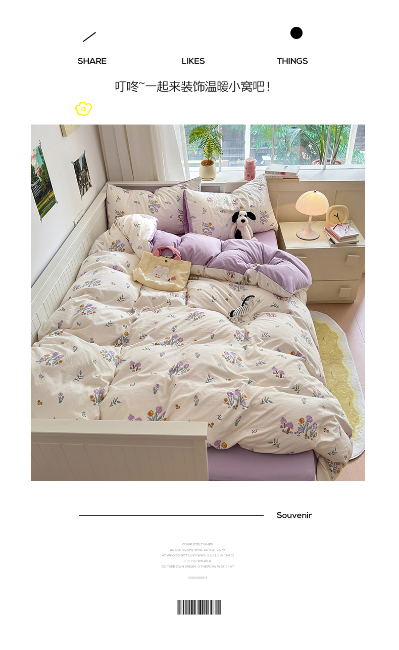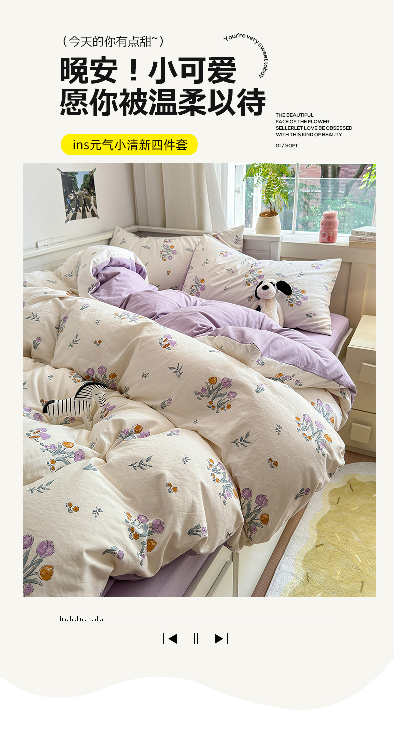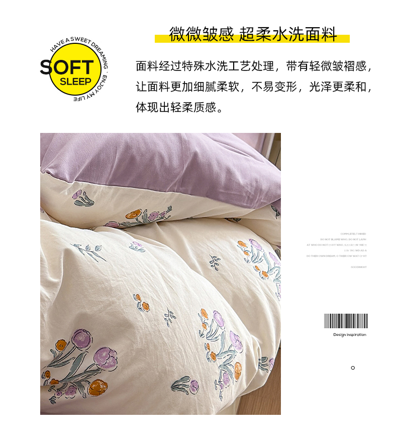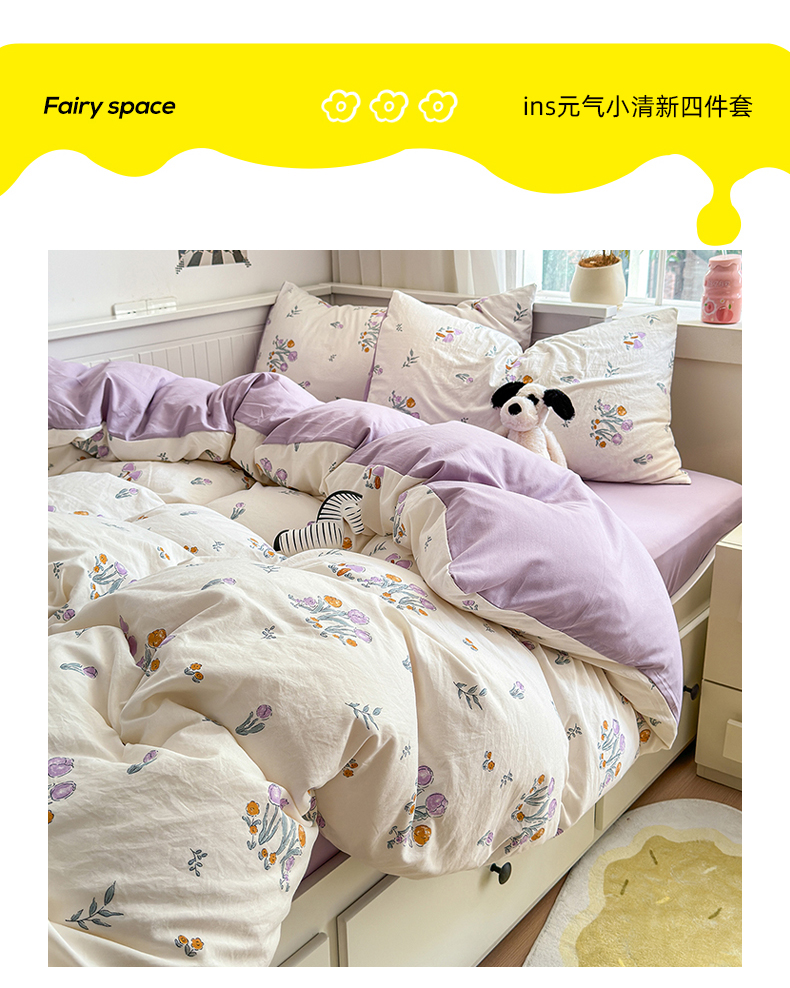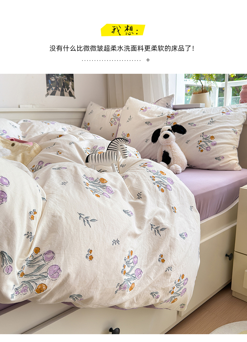 当前位置: 91家纺网 > 商品网购 > 床品套件 > 四件套 > 其它四件套 > 沐芷 2024微皱超柔手感105g印花水洗棉四件套床上宿舍三件套床单被套 小花园