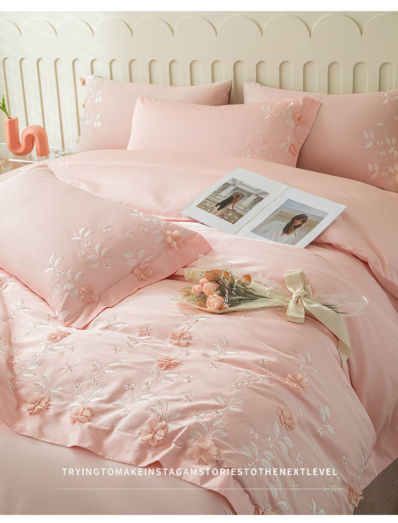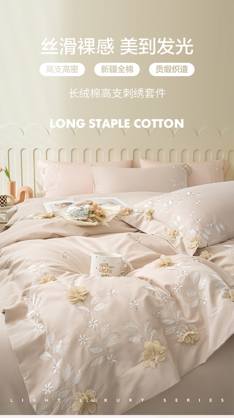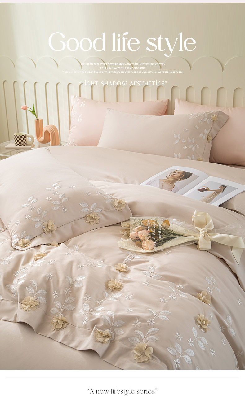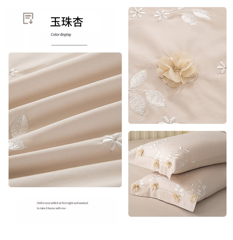 当前位置: 91家纺网 > 商品网购 > 床品套件 > 四件套 > 全棉普通四件套 > 【立体绣花】100支贡缎长绒棉四件套全棉纯棉粉色公主风床单被套简约纯色床上用品 玛琪朵-玉珠杏