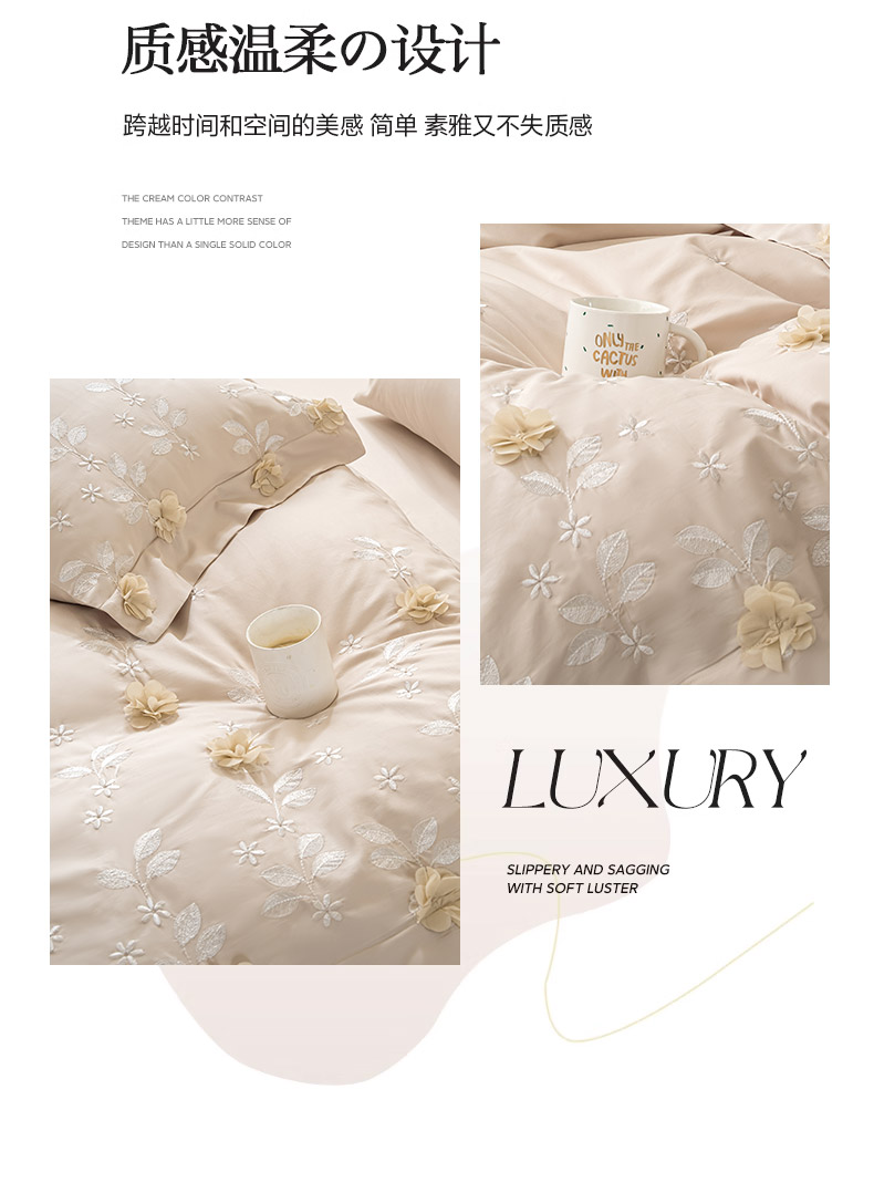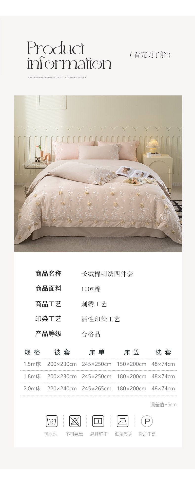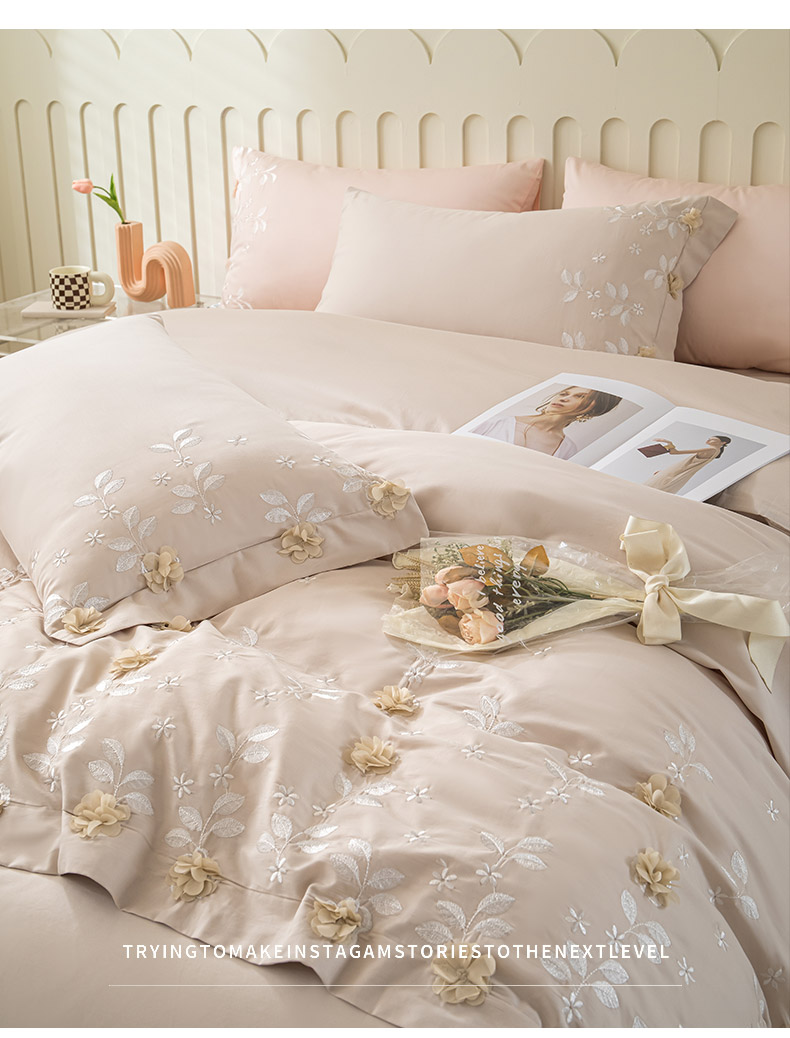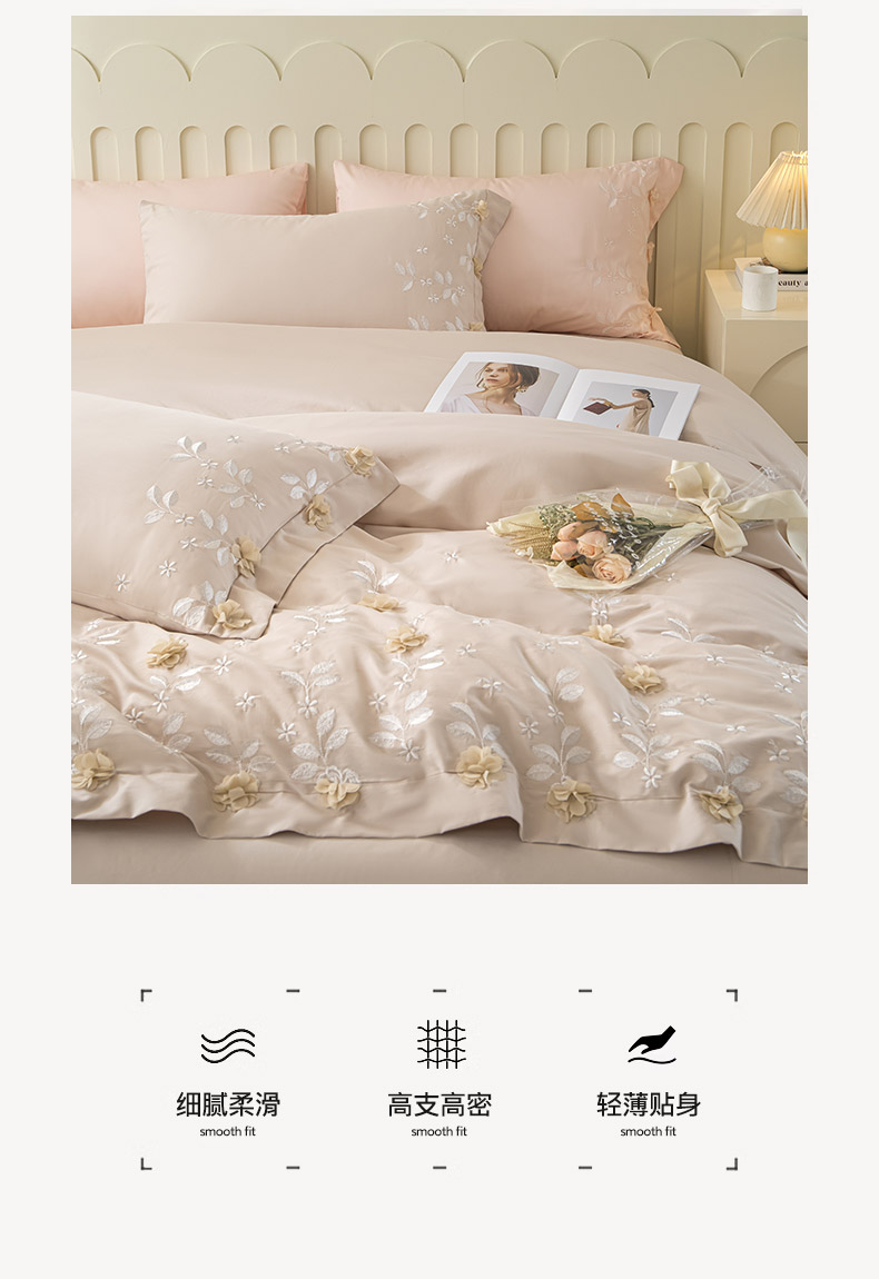 当前位置: 91家纺网 > 商品网购 > 床品套件 > 四件套 > 全棉普通四件套 > 【立体绣花】100支贡缎长绒棉四件套全棉纯棉粉色公主风床单被套简约纯色床上用品 玛琪朵-玉珠杏