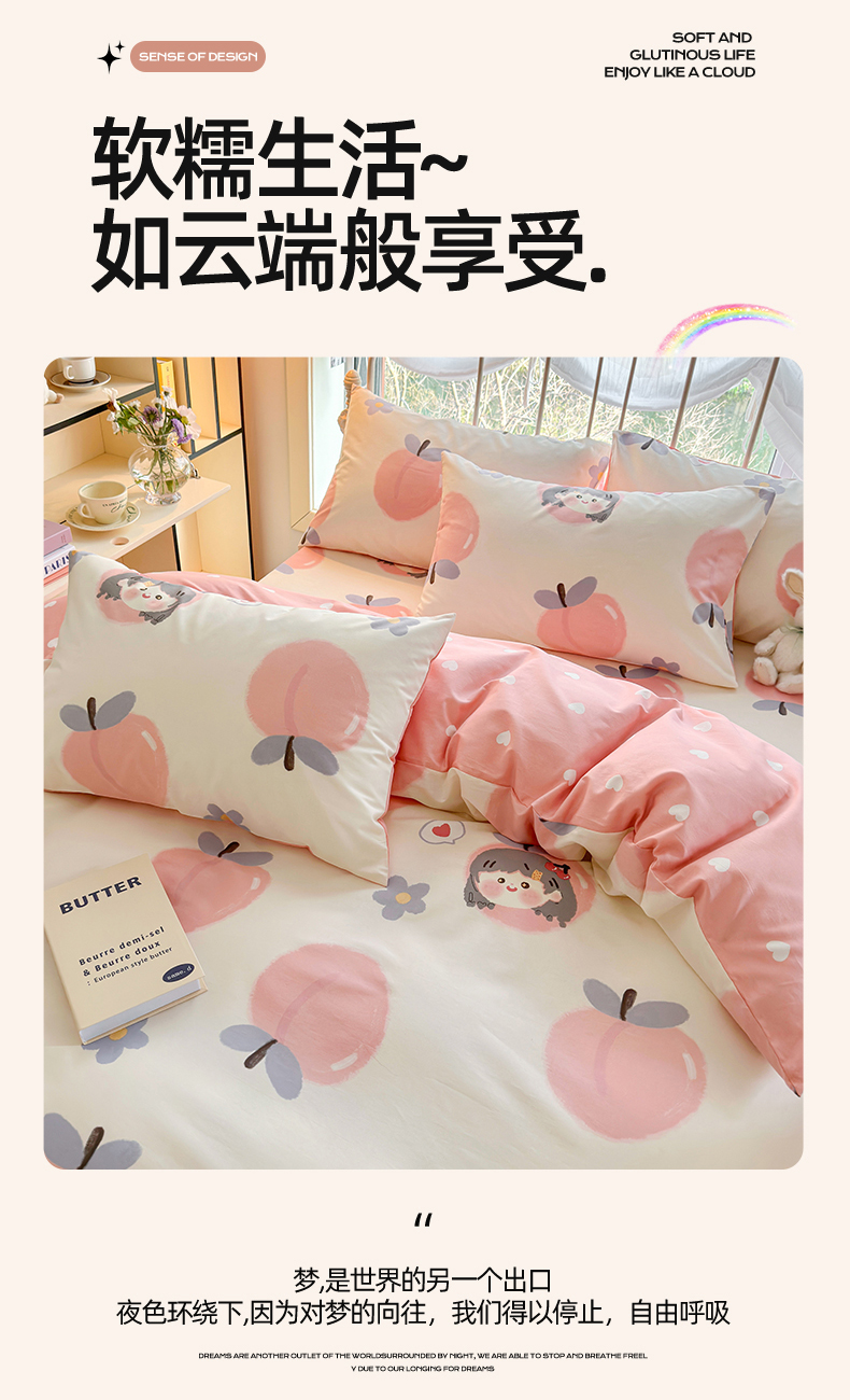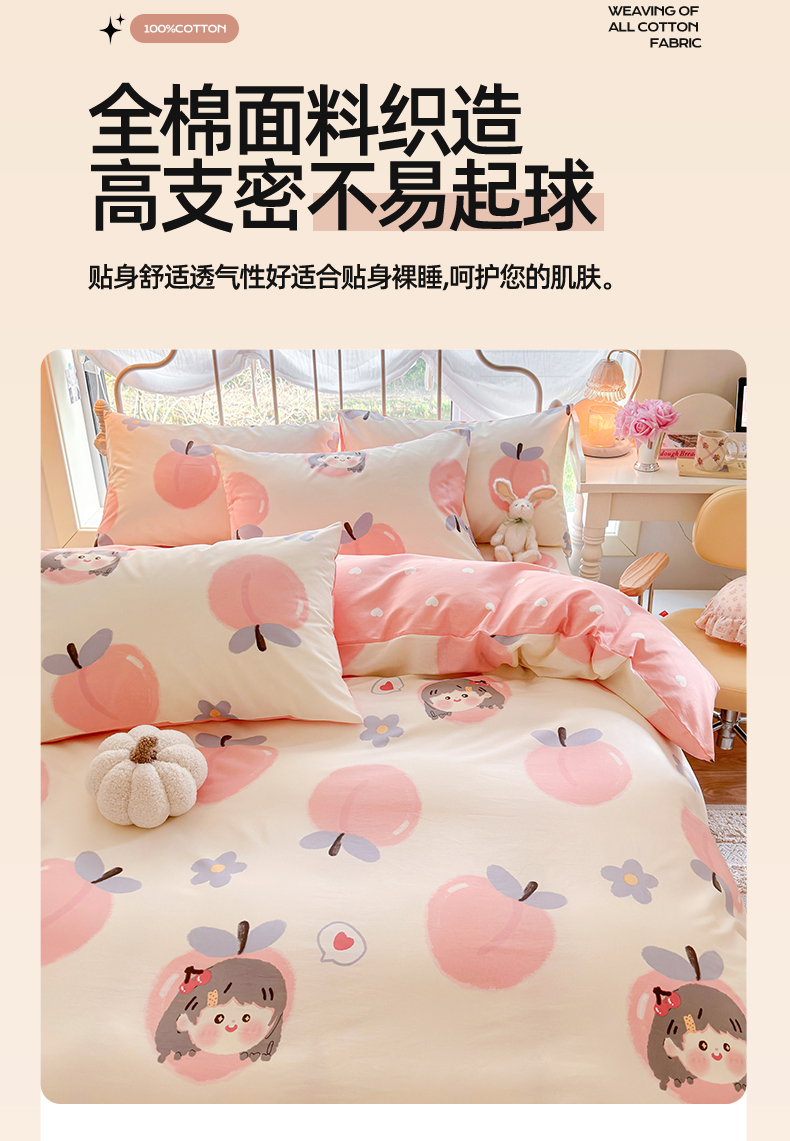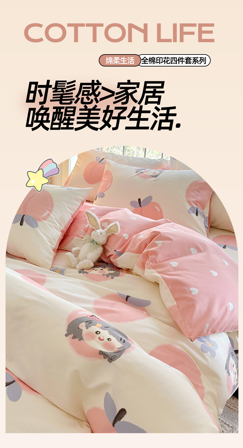 当前位置: 91家纺网 > 商品网购 > 床品套件 > 四件套 > 全棉普通四件套 > 名兮 2024新款全棉亲肤印花四件套 蜜桃女孩