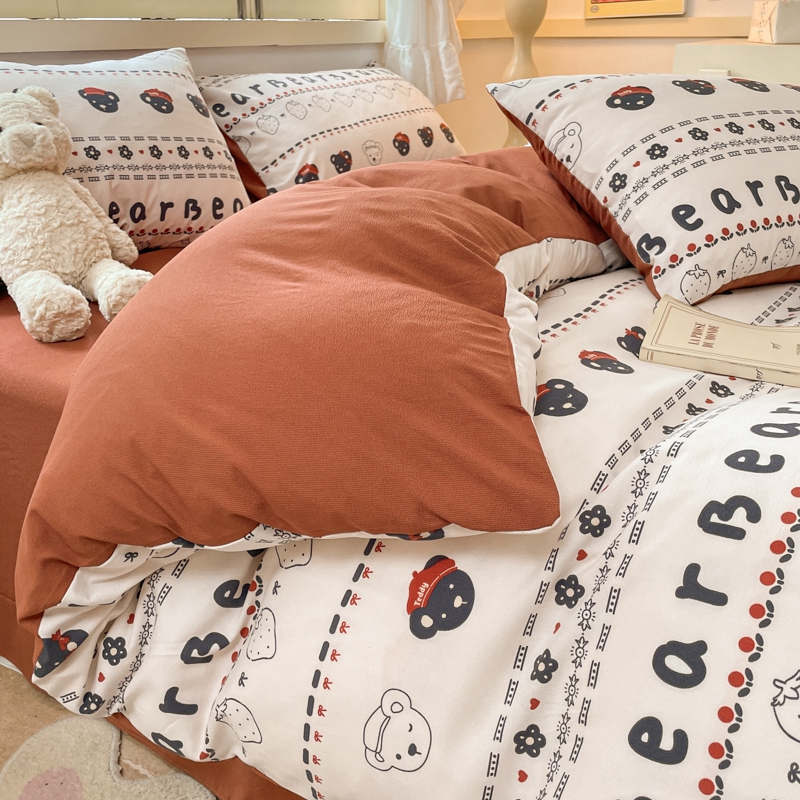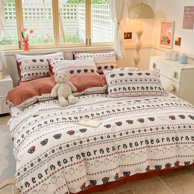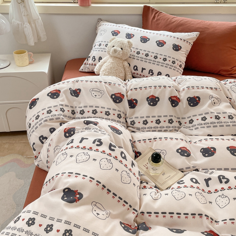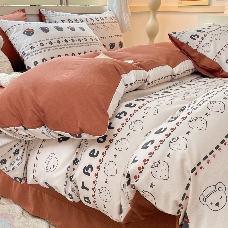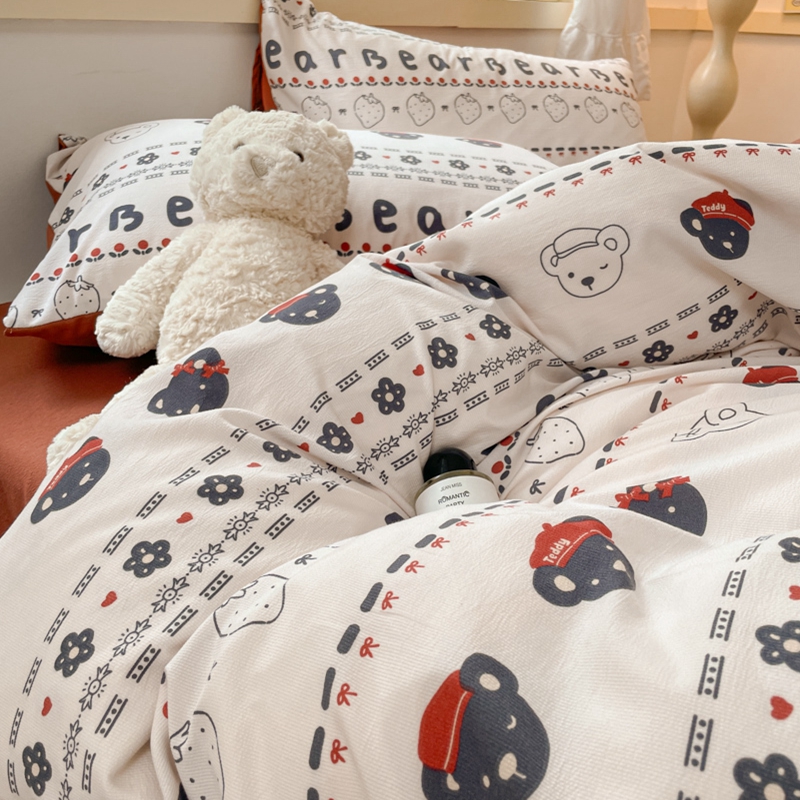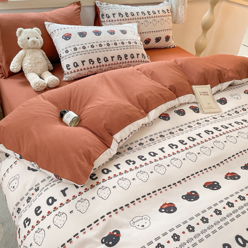当前位置: 91家纺网 > 商品网购 > 床品套件 > 四件套 > 全棉普通四件套 > 玉海棠 2024新款AB版软糯针织棉印花四件套 草莓熊-