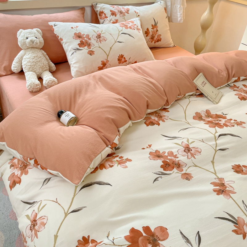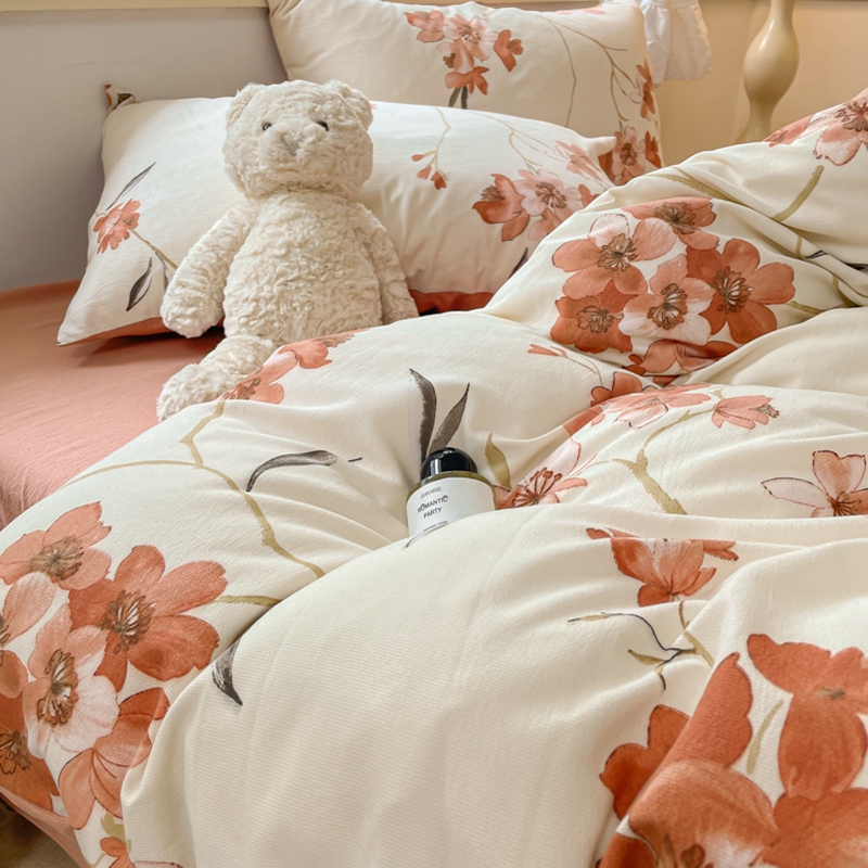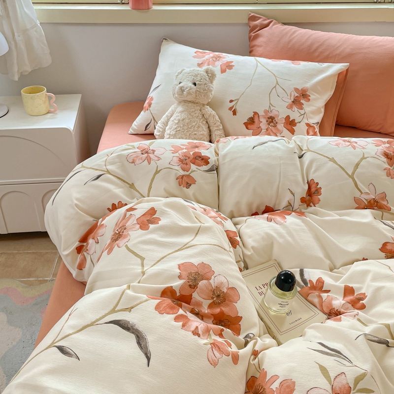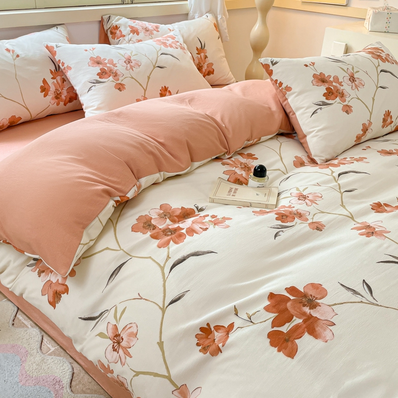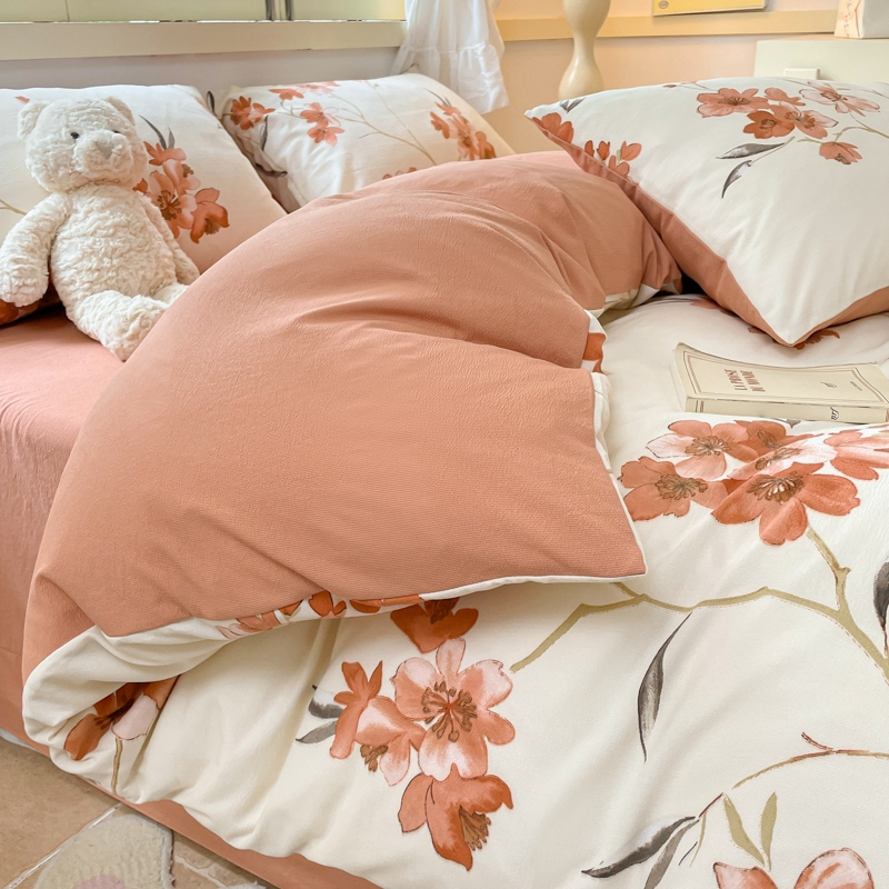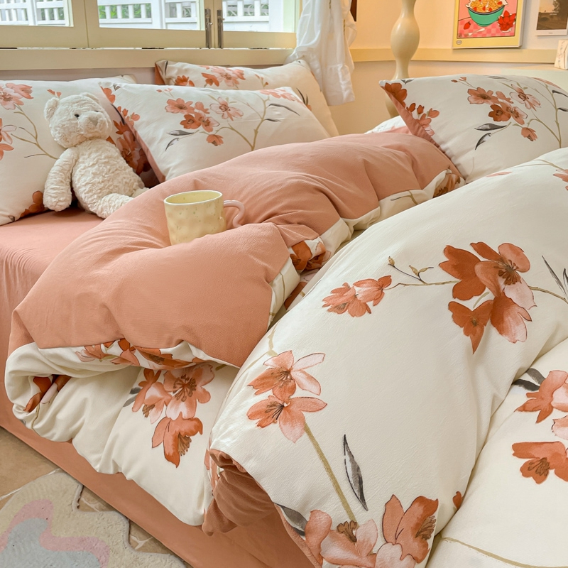 当前位置: 91家纺网 > 商品网购 > 床品套件 > 四件套 > 全棉普通四件套 > 玉海棠 2024新款AB版软糯针织棉印花四件套 花影-