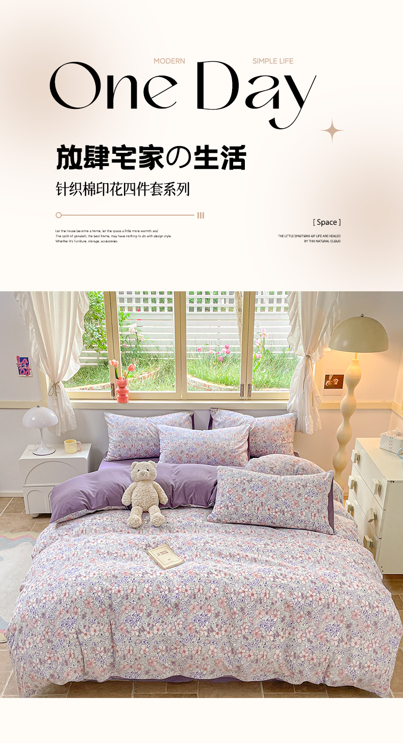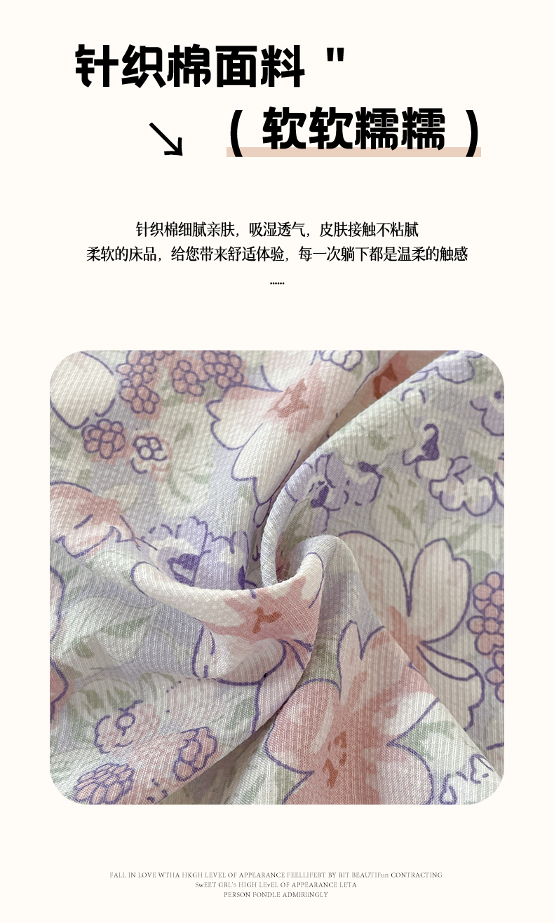 当前位置: 91家纺网 > 商品网购 > 床品套件 > 四件套 > 全棉普通四件套 > 玉海棠 2024新款AB版软糯针织棉印花四件套 童话-