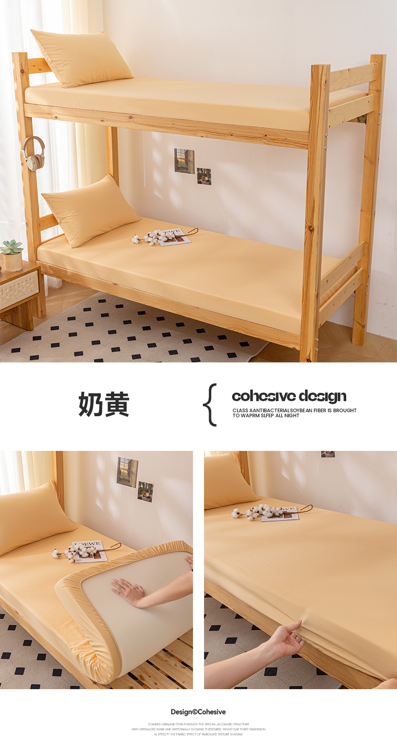 商品名称:寐眠 2024新款A类全棉水洗棉学生床笠系列 奶黄